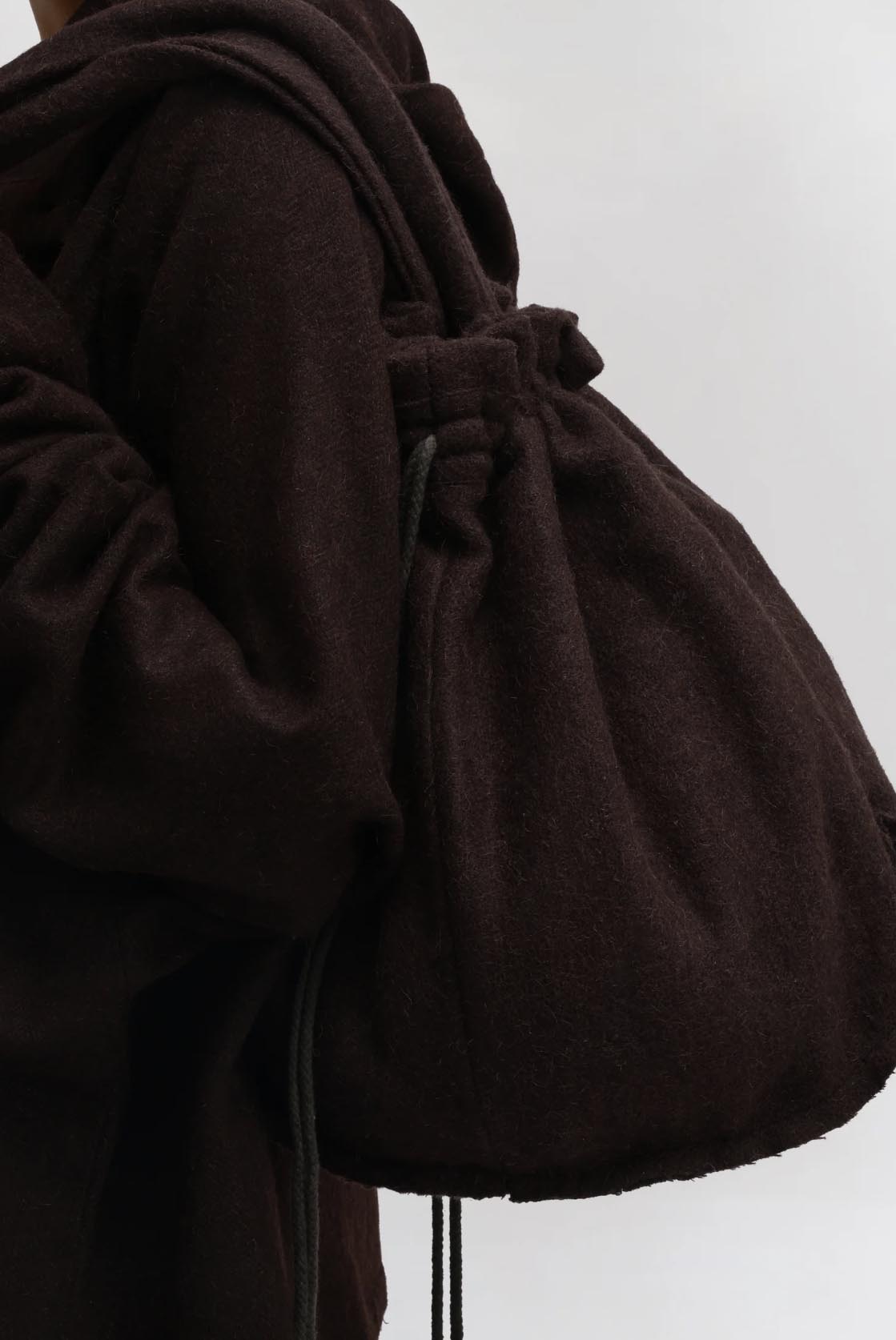 The Peardrop Bag is a unique, pear-shaped sack bag that blends artisanal craftsmanship with practical design. Its adjustable strap allows for versatile wear, while the structured yet supple silhouette makes it ideal for everyday use. The natural texture of the wool adds an earthy, sophisticated touch, perfect for carrying essentials in style.