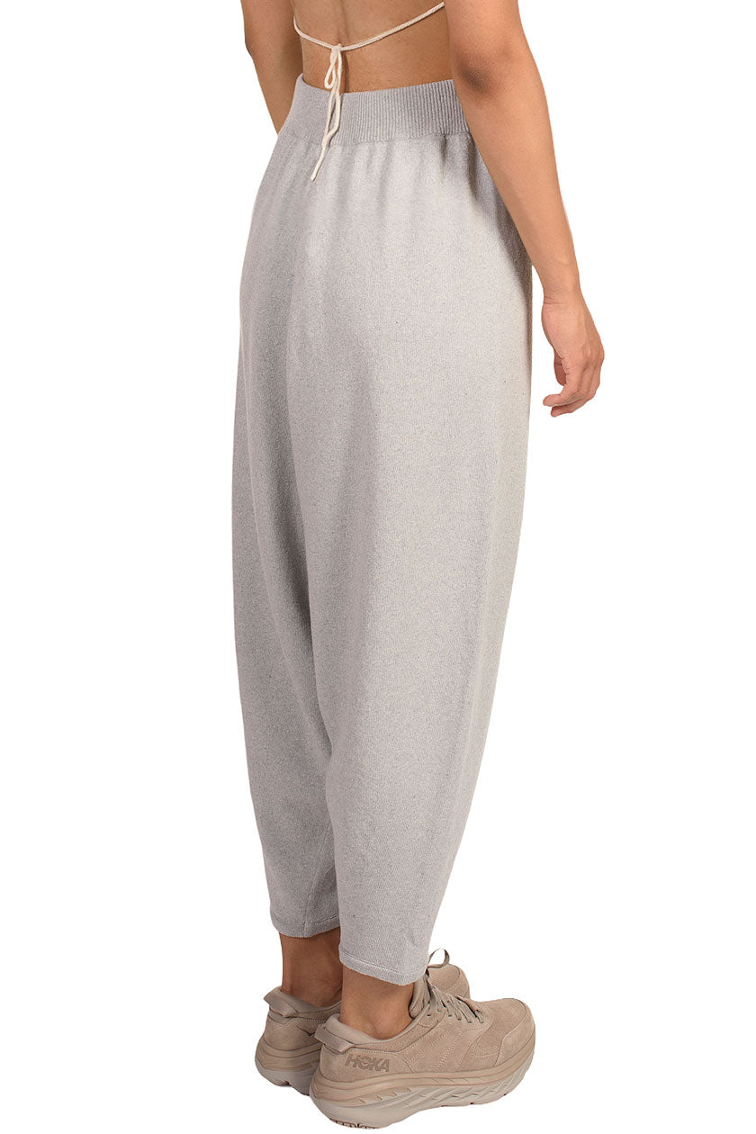 Monica Cordera’s collections are composed of limited edition garments with minimalist designs that seek purity and simplicity, timeless earthy tones in recycled linen and cotton as seen with the Pearl Blue Knit Pants.