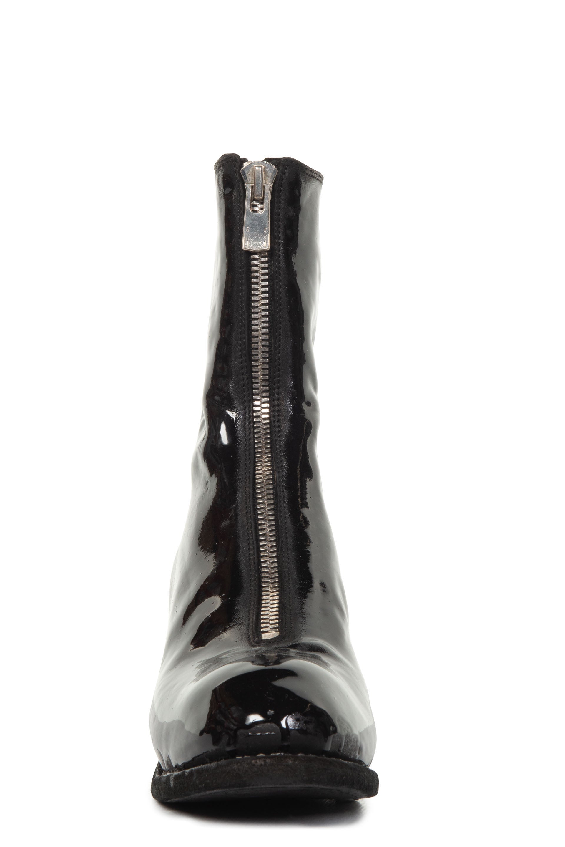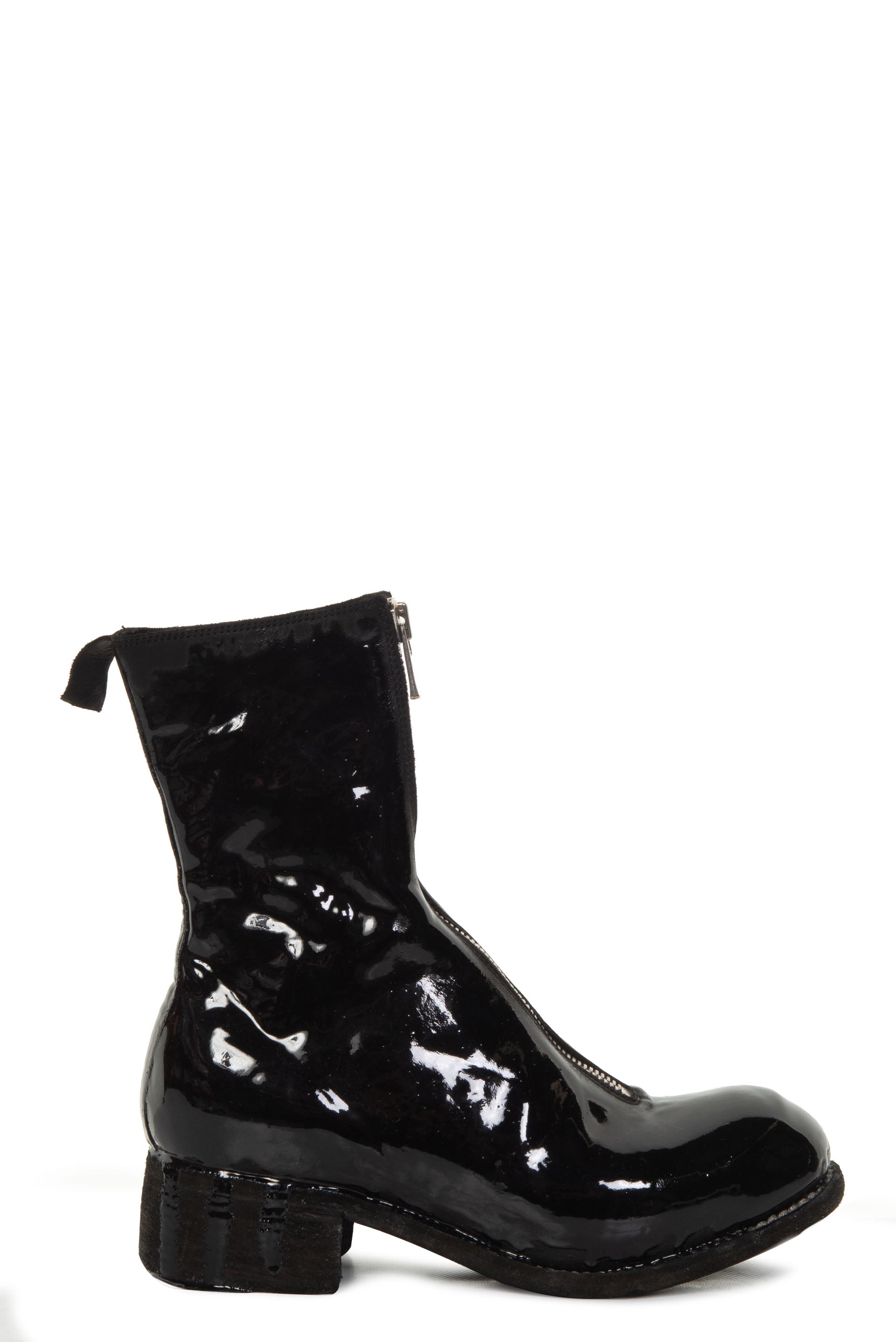 Guidi PL2 LTXB Black Zipped Boot. Latex coated genuine horse leather. Mid height. Front zip. Stacked leather heel. Guidi authenticity code. Additional rubber sole included. Tonal stitching