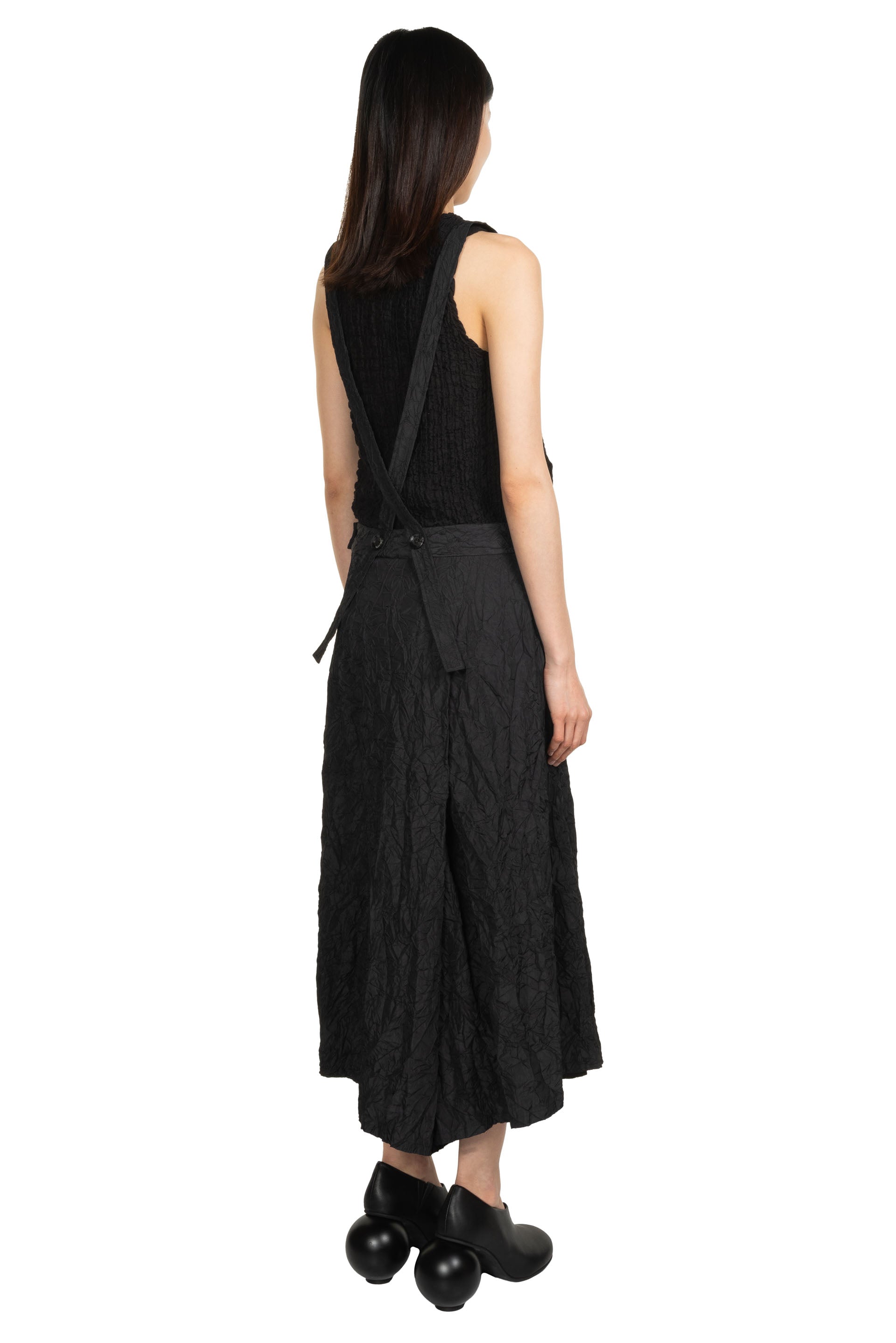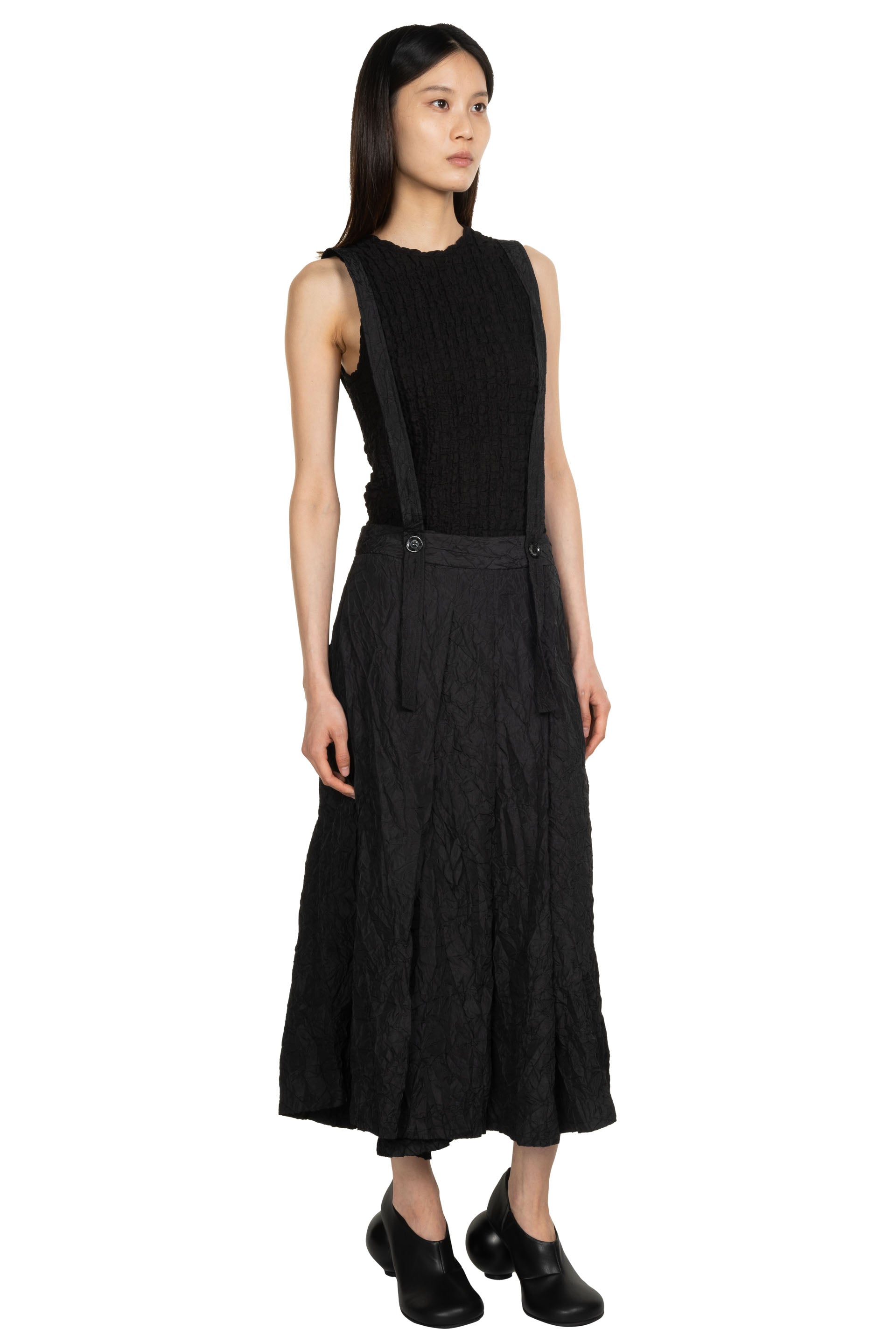 Song for the Mute Pleated long skirt in a textured crushed taffeta. Featuring detachable suspender straps, raw hem finishing, and pleats throughout waist.