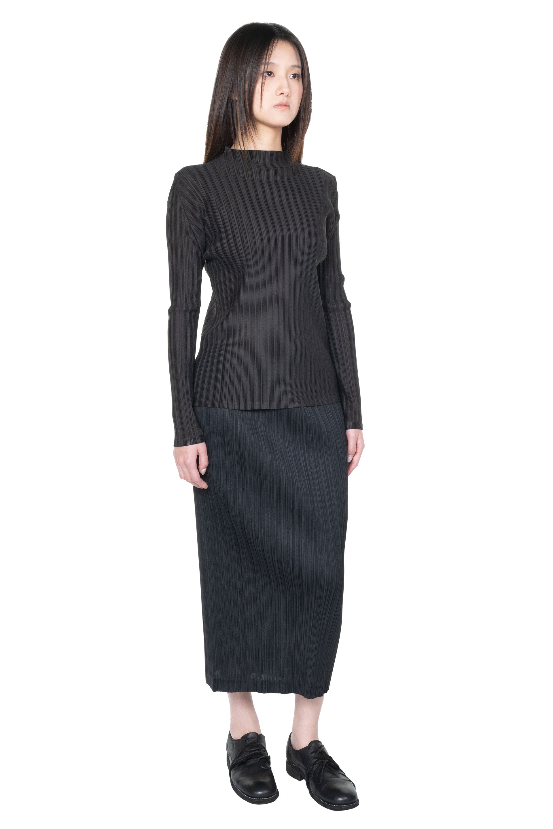 Long sleeves. Mock neckline. Slim-fit. Rib pleats January is a finely pleated top in a soft, fluid fabric. They can be easily coordinated with many other styles.