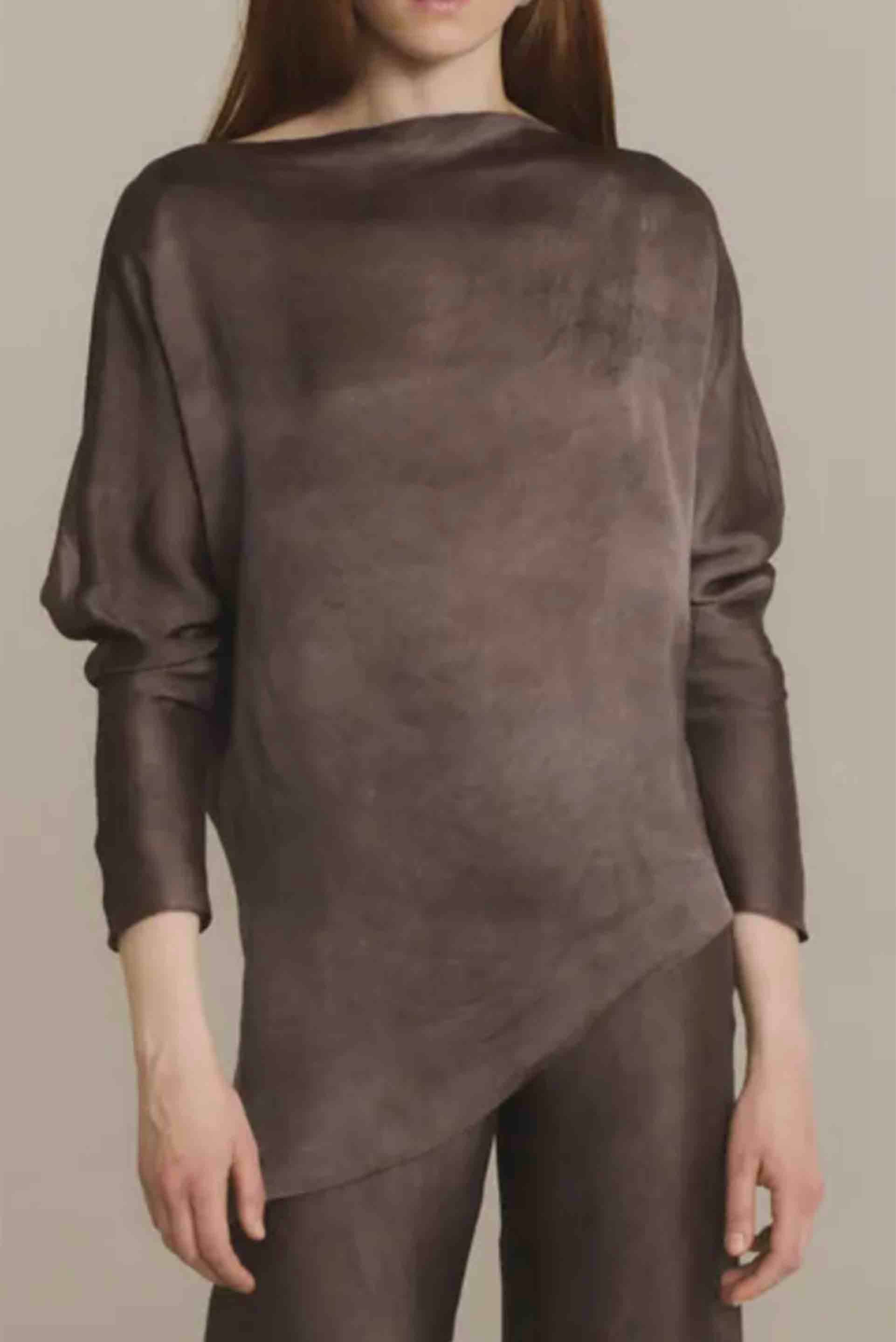 This piece embraces the body with ease, thanks to its dolman sleeves and relaxed fit, gently skimming your silhouette without constriction. Layer it with a sleek turtleneck or let it flow freely for a statement on its own. Its lightweight fabric transitions seamlessly from day to night, accommodating anything from wide-leg trousers to a sleek midi skirt. The Pola Top creates visual interest without overwhelming, elevating any look with its thoughtful design.