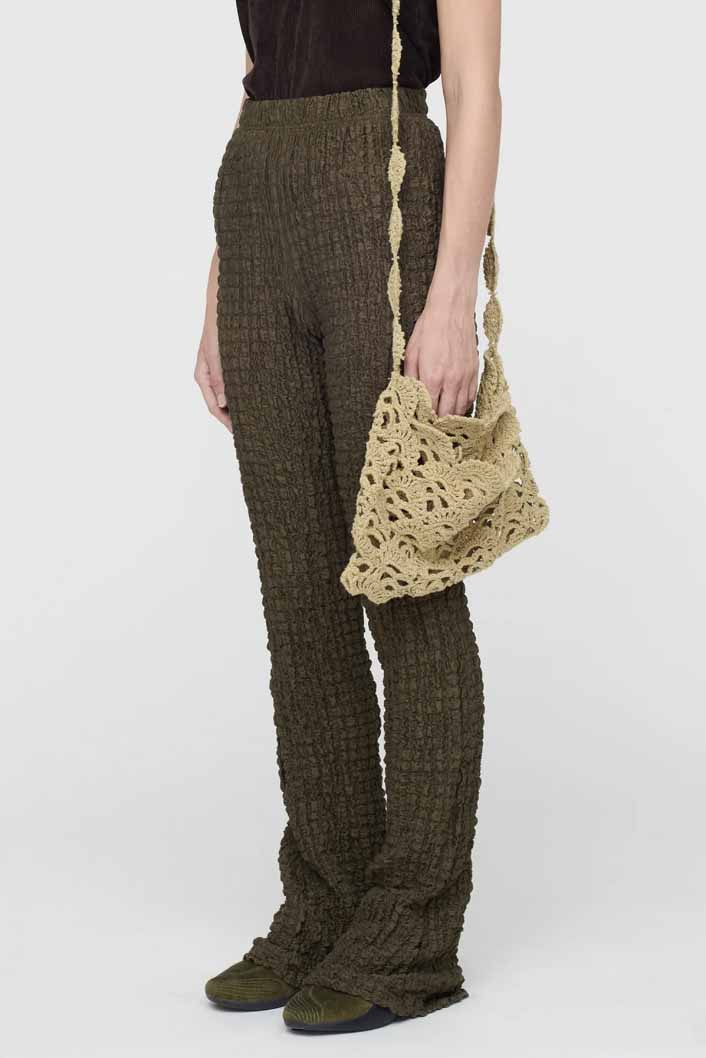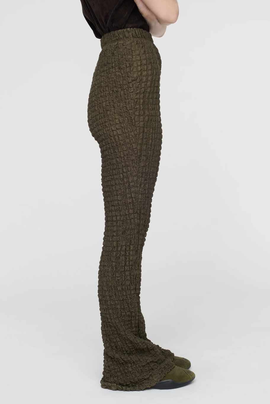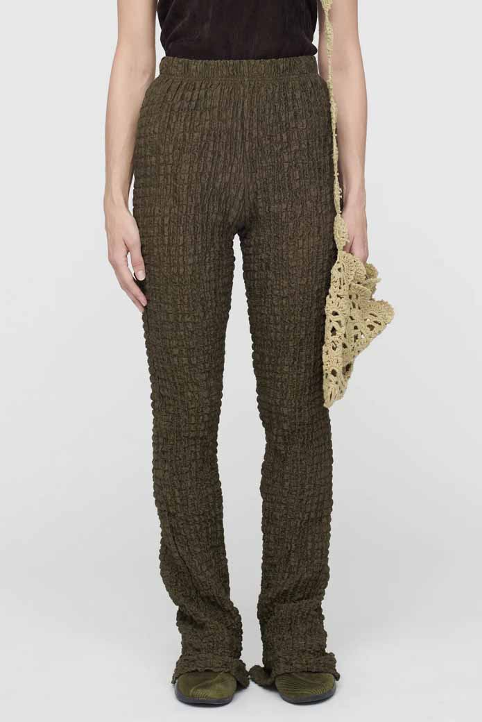 Song for the Mute Popcorn Jersey Leggings Green. Sleeveless. Elongated drawstrings and flared bell bottom hem. stretch popcorn-textured fabric