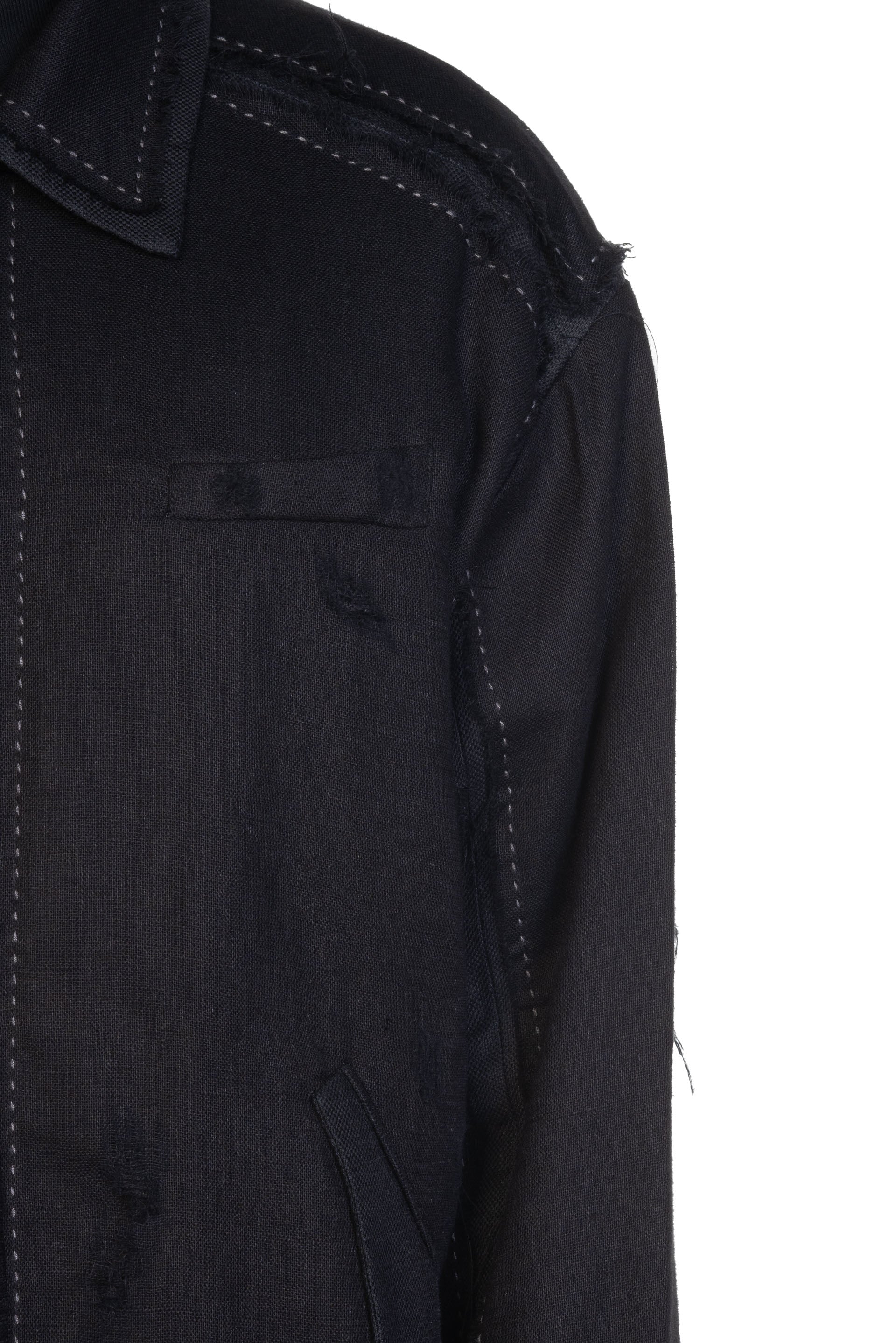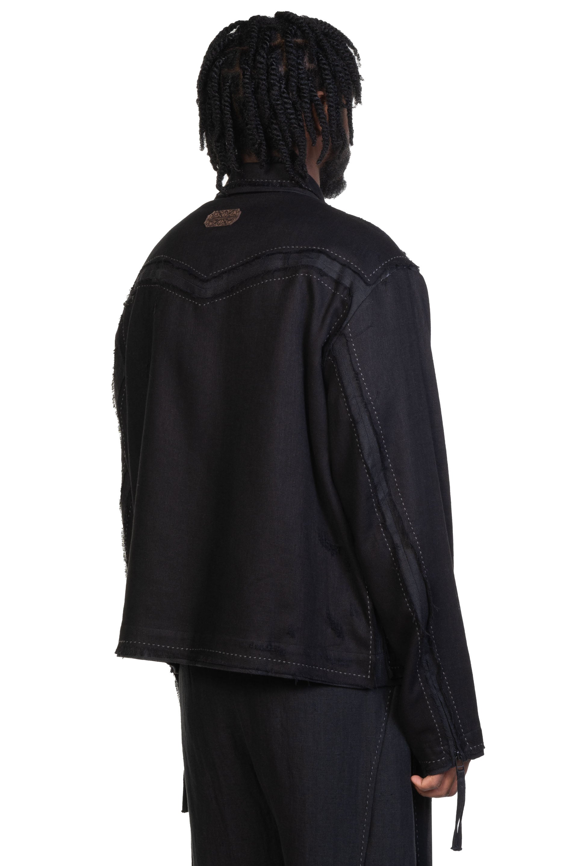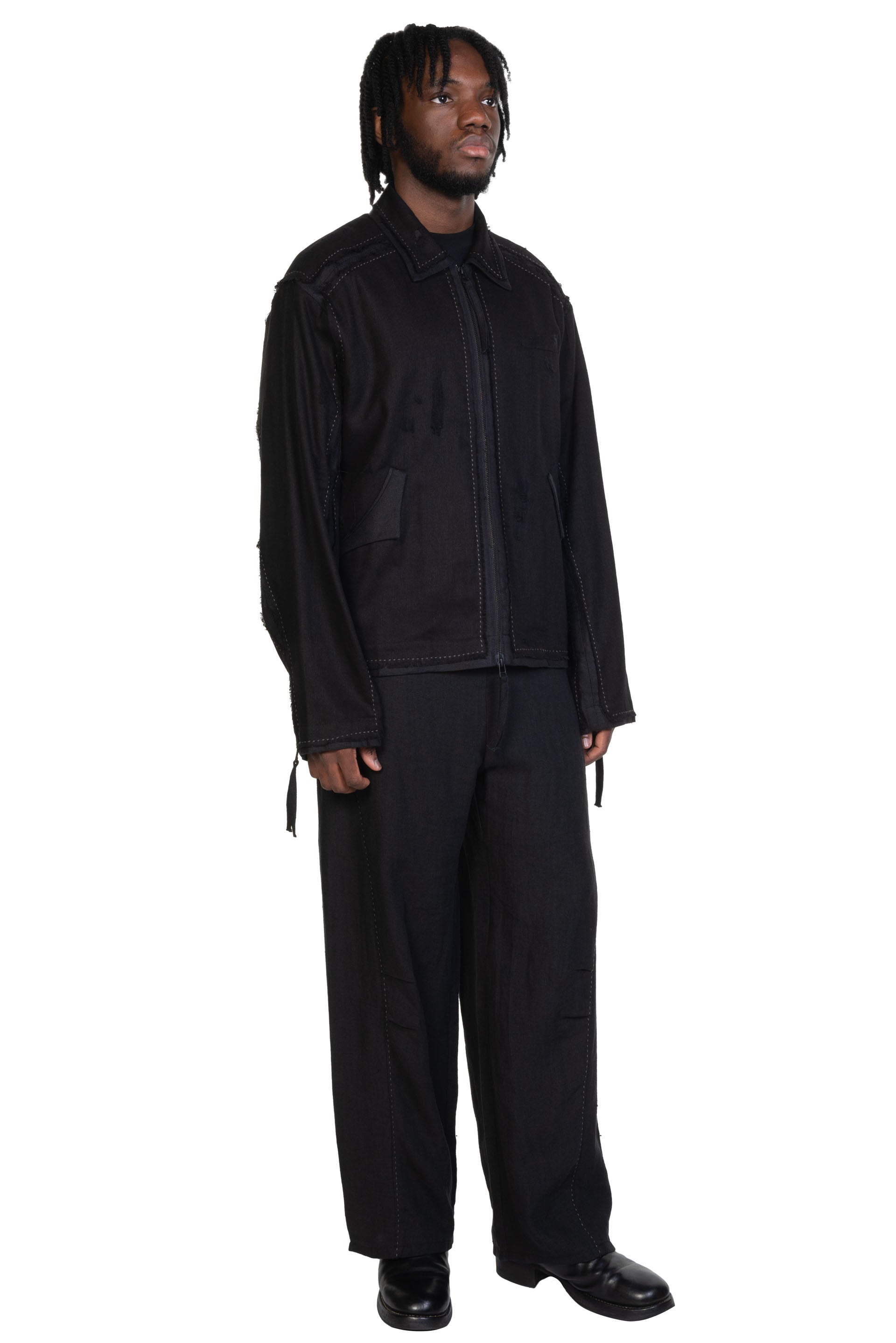 Professor. E understands the time of aesthetics from the use of cotton, hemp and wool. Fabric stitching, patching, designs without edge trimming, deconstruction, and reproduction are all Professor. E's signature elements creating classic immortal designs that can be viewed with the Prick Stitch Layered Jacket Black.