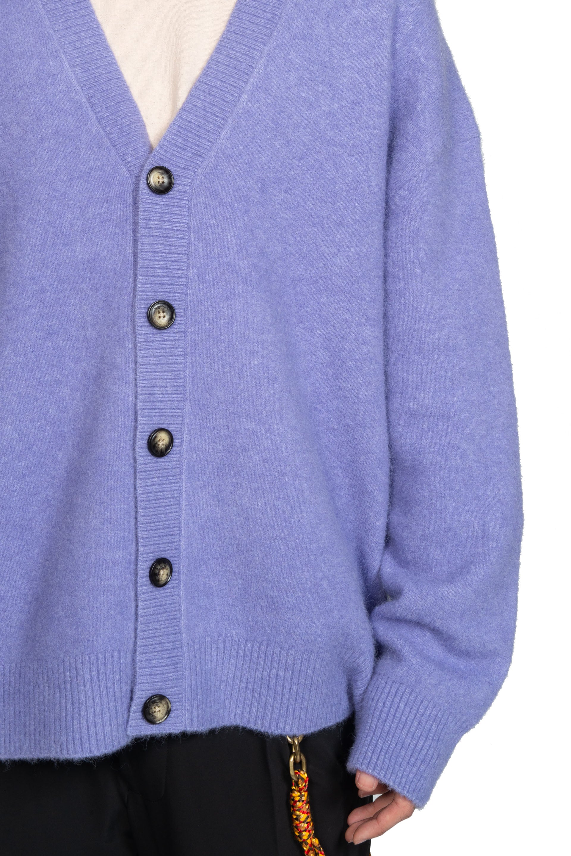 Long sleeves. Button Closure at front. V Neck. Fluffy soft touch. Ribbed hems adding a contemporary edge. Dropped Shoulders.