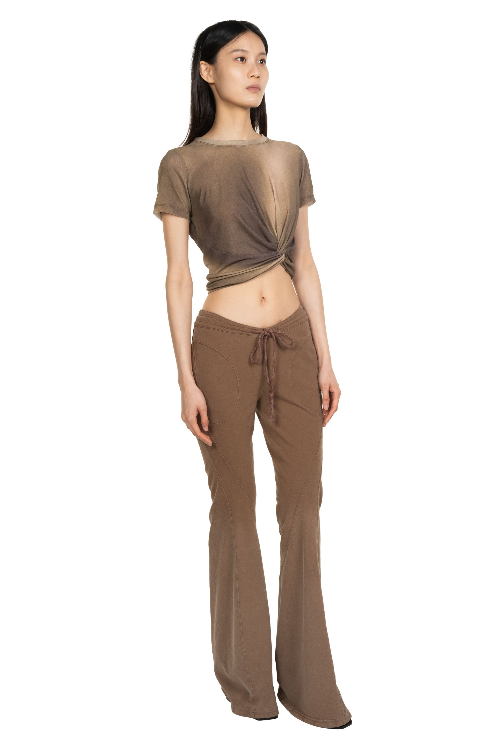 OUDE WAAG strikes a balance between Asian aesthetics and Western cutting. It is at the heart of designer’s philosophy: celebrating the power of women, yet simultaneously critiquing the ongoing objectification and idealisation of the body as you can see in the Oude Waag "Paramount Soul" collection with the Printed Twisted Crew Neck Cropped Top.