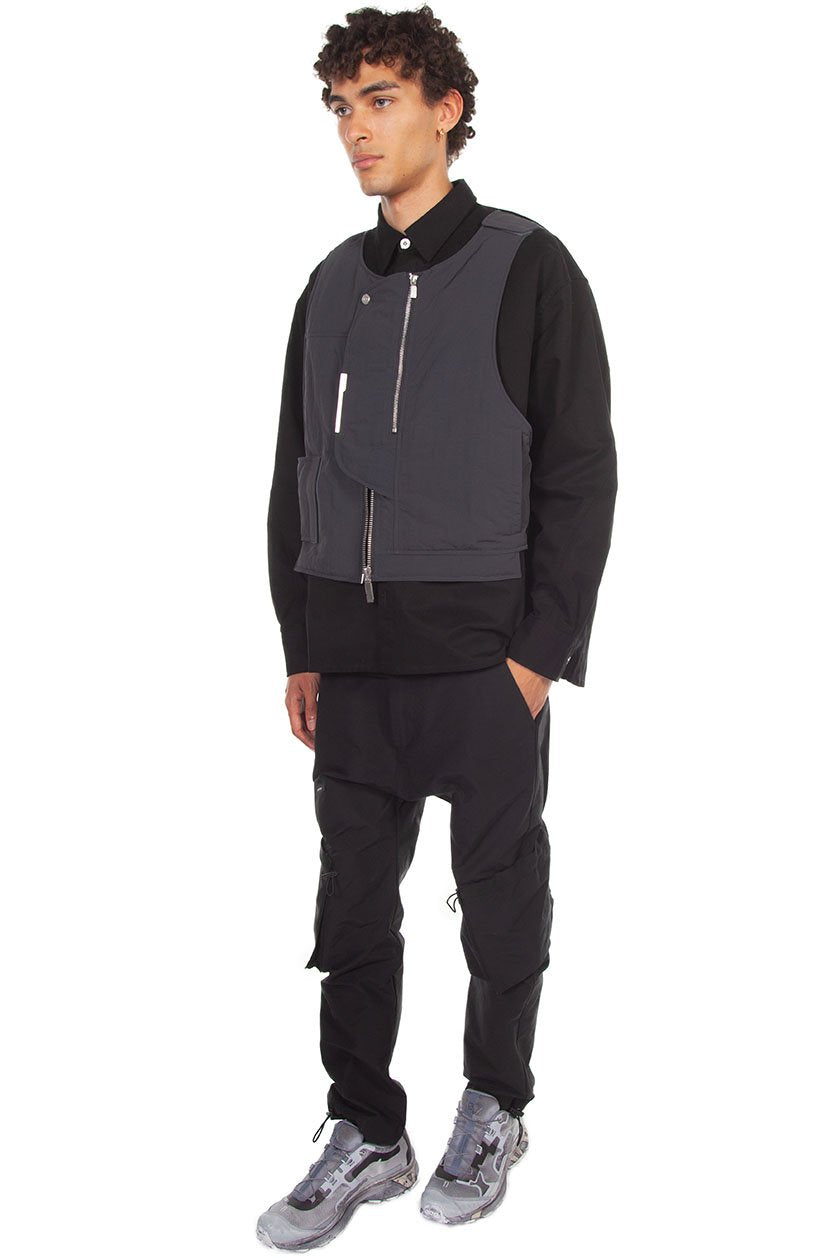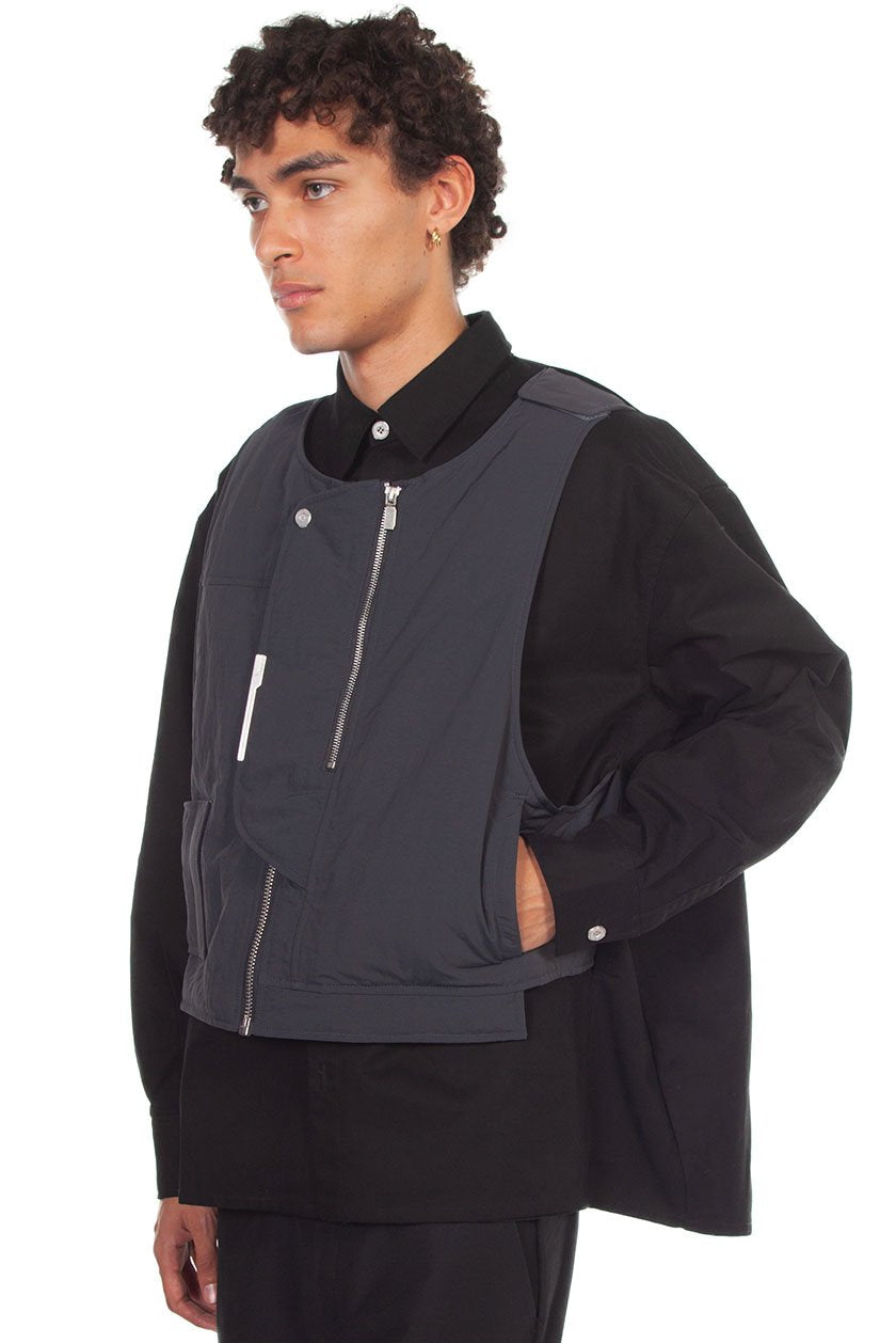C2H4 concept ranges from hypothetical space scientists producing sport and streetwear-inspired designs creating an intergalactic underground culture. Using her studio as a laboratory, Chen’s meticulously elevates wardrobe cornerstones as seen with the Quilted Vest Layered Shirt Jacket.