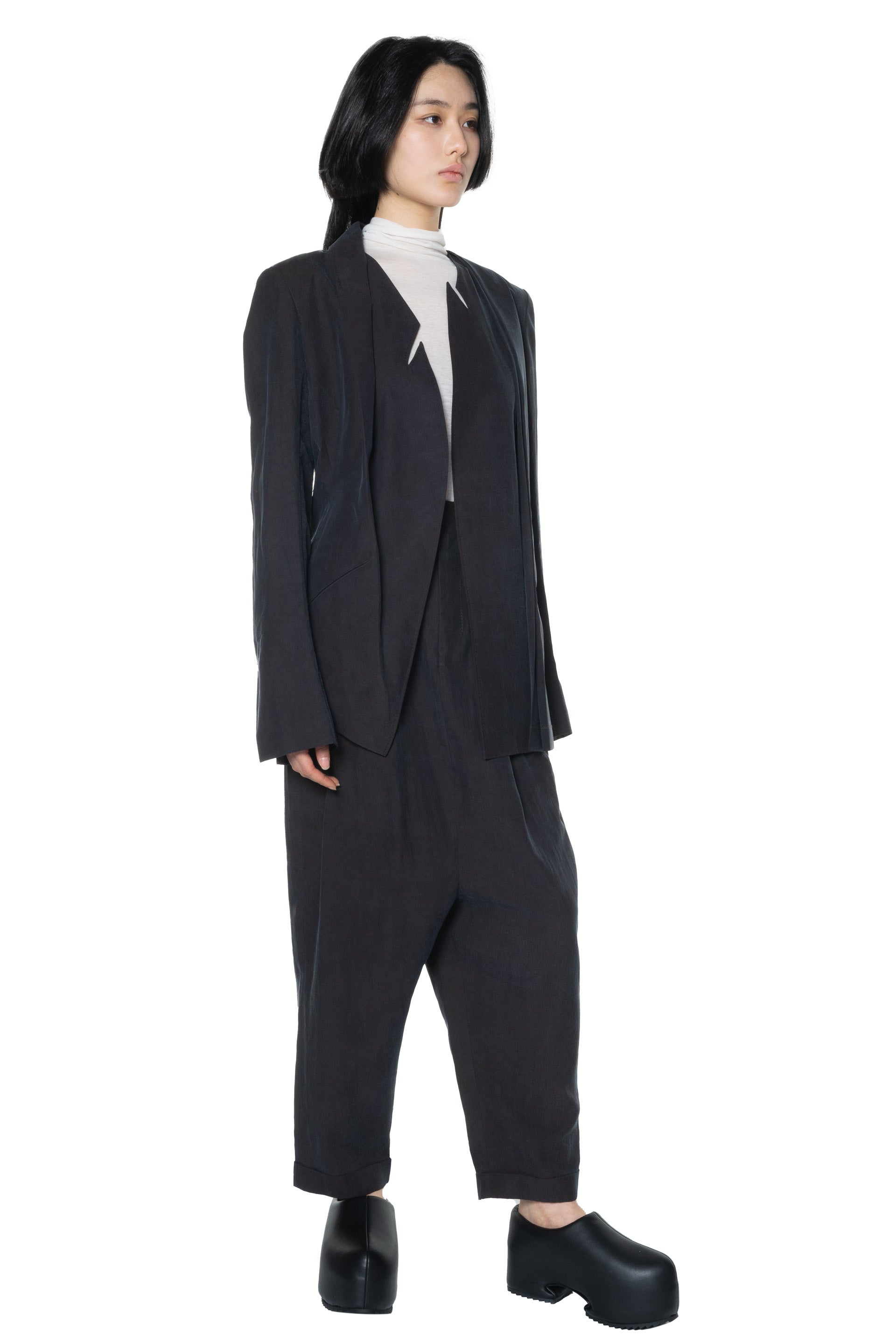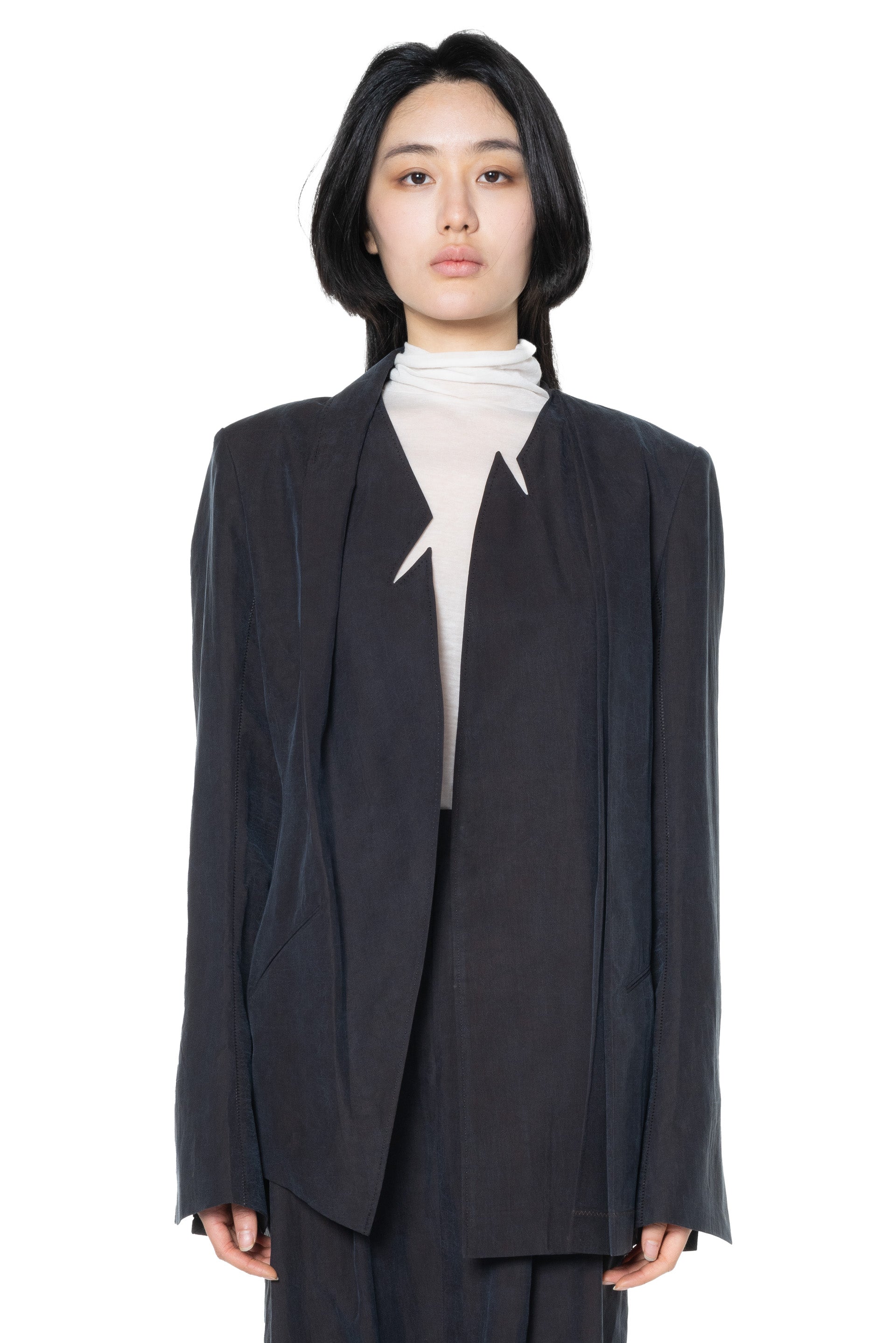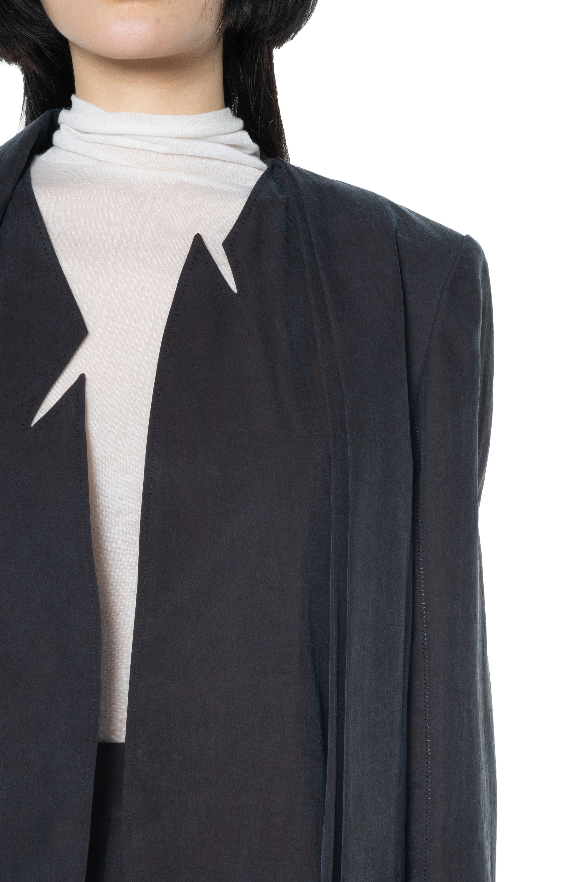 Yehuafan believes in feminine beauty with his own way to explain the smooth curve to compliment women’s body. He specialised in asymmetrical cutting and deconstructed silhouette as seen with the Raisin Jacket.