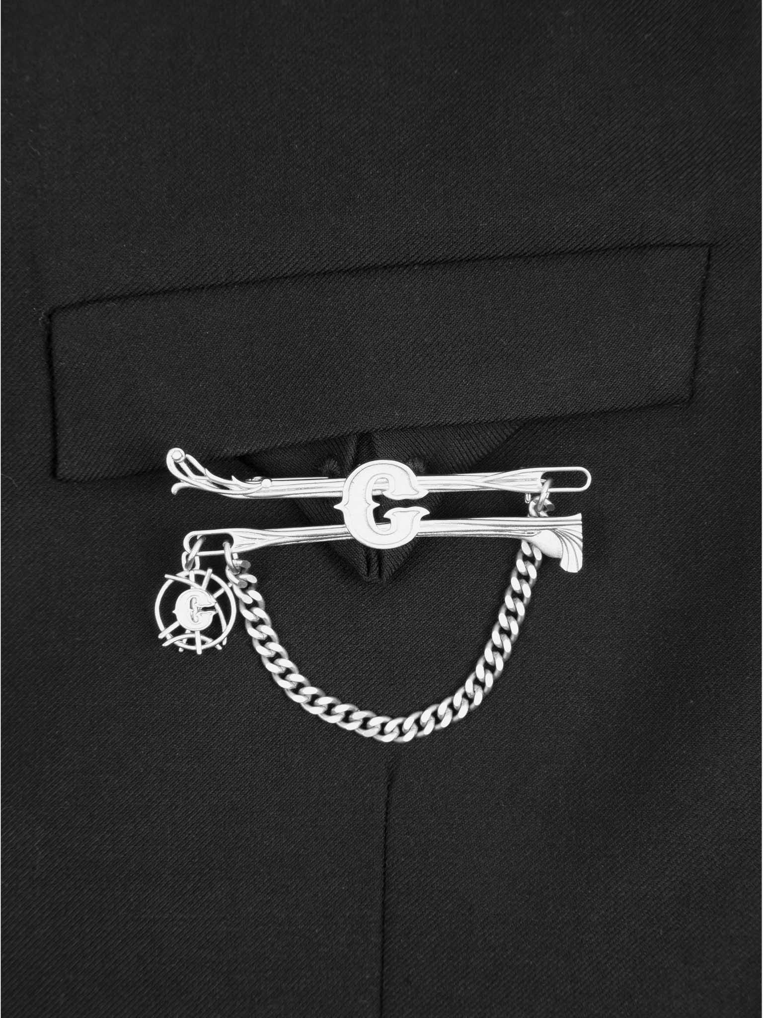 Rounded Neck. Hidden Button Closure At Front. Detailing Raw Edge Seam Line Finishing. Welt Pocket At Chest. Welt Pockets At Waist. Comes With White Gold Coated Brass Safety Pin Set. Collection Button Set At Surgeon’s Cuffs. Central Vent At Back Hem. Comes With Garment Bag Set.