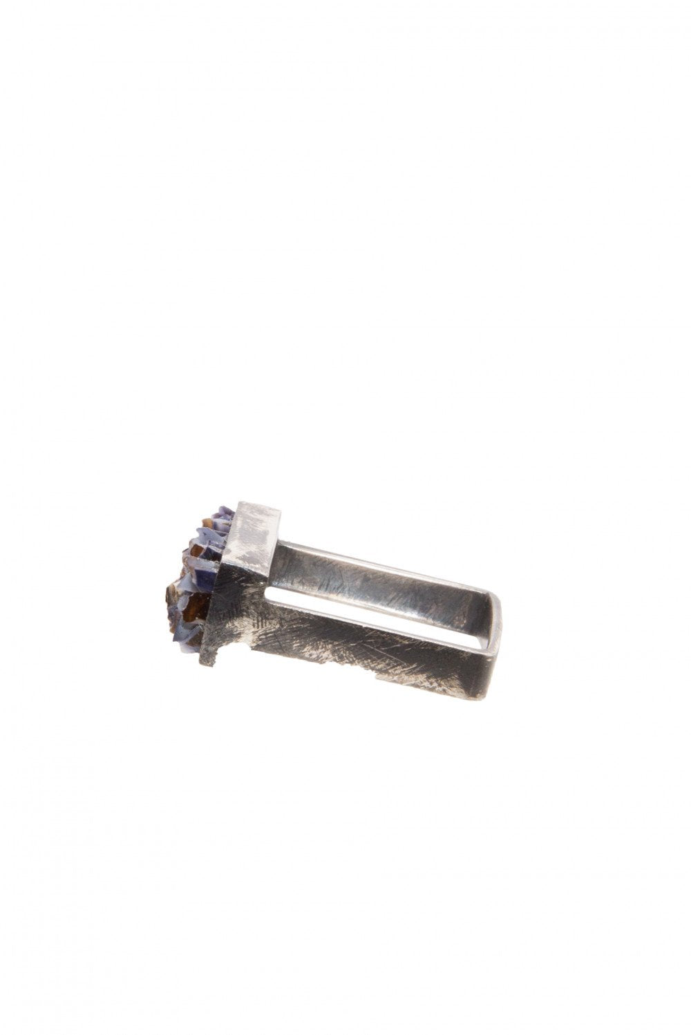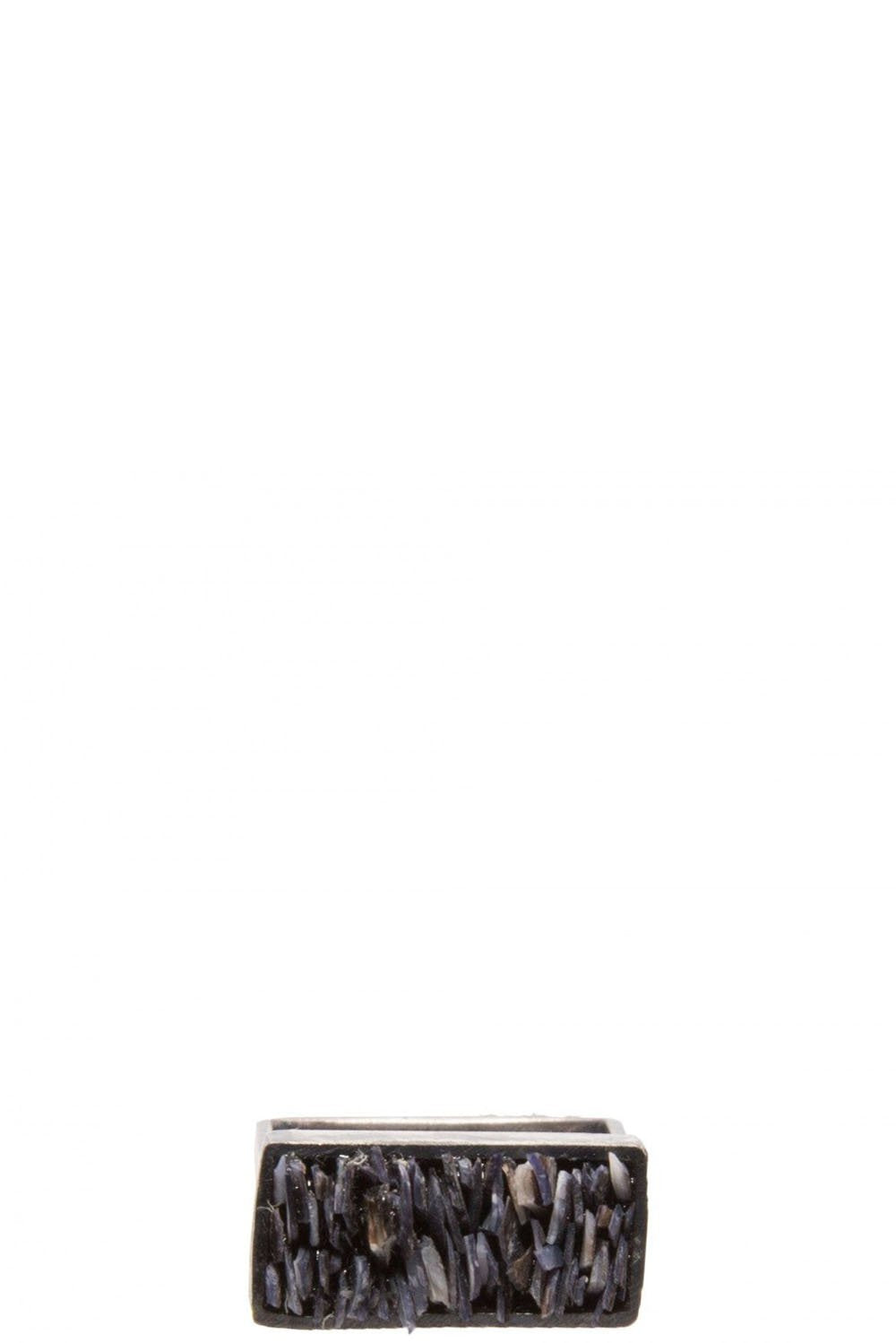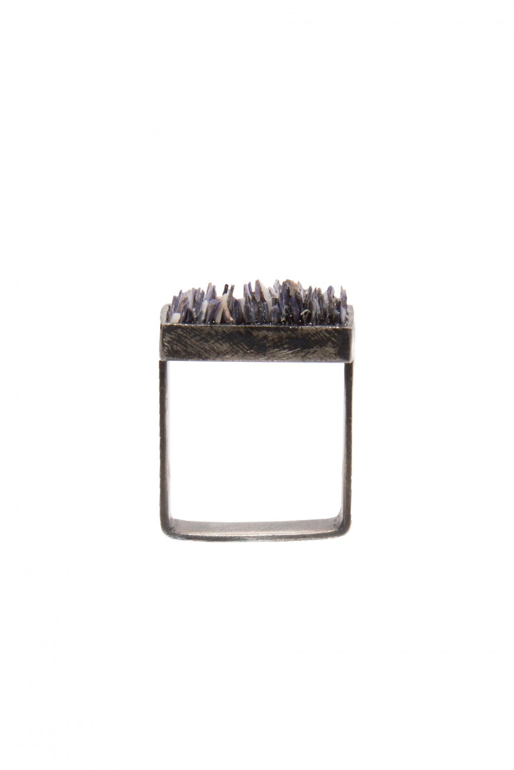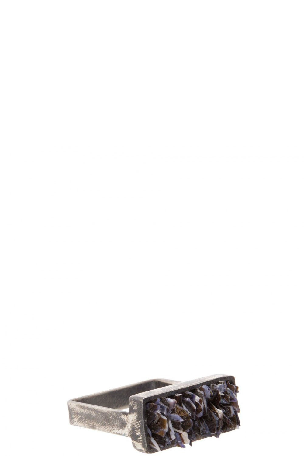 Yen Rectangle Mussel Ring. The design idea is based on the destruction of living area and rebuild to a decoration objects. The designer smashed the mussels’ home and use it as jewels. The screw is for adjusting the ring sizes.
