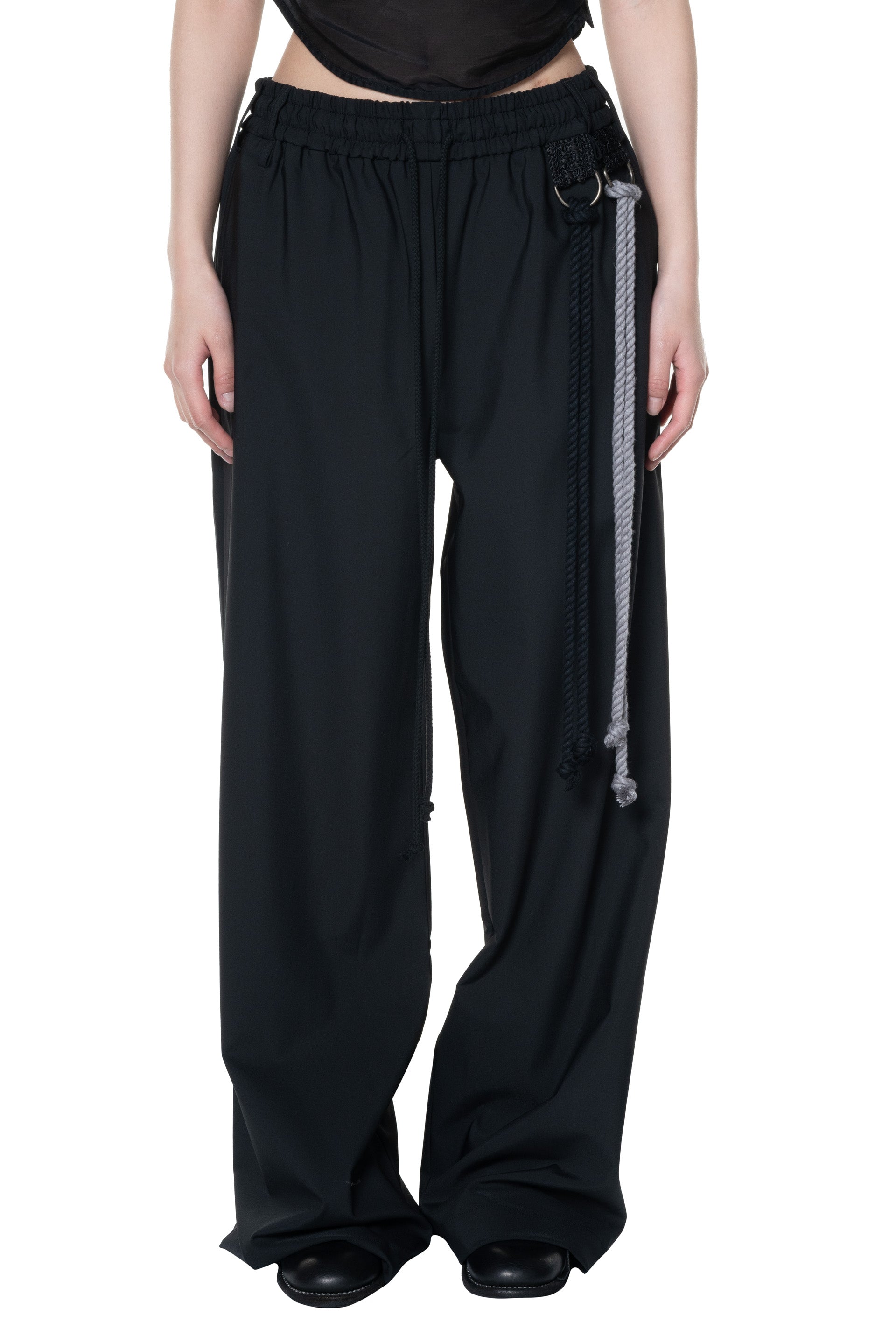 Song for the Mute lounge pants. Elastic waist. Drawstring closure at waist. Two side pockets. Two pockets at back. Tussle detailing at waist.