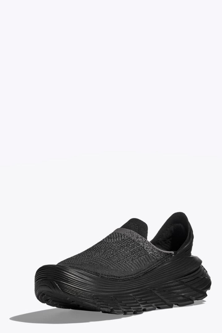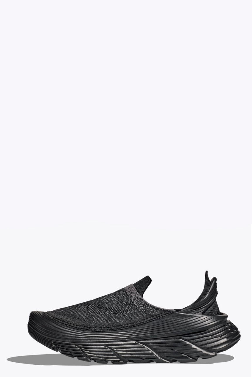 Restore TC Black / Black has a dope dyed polyester upper. Barefoot friendly full-knit sock. Engineered stretch zones for comfort. Removable 30% sugarcane-based EVA insole. 20% sugarcane-based EVA outsole. Protective EVA toe cap. Outer jacquard knit made with 73% dope-dyed polyester. Inner bootie textile made with 83% dope-dyed polyester.