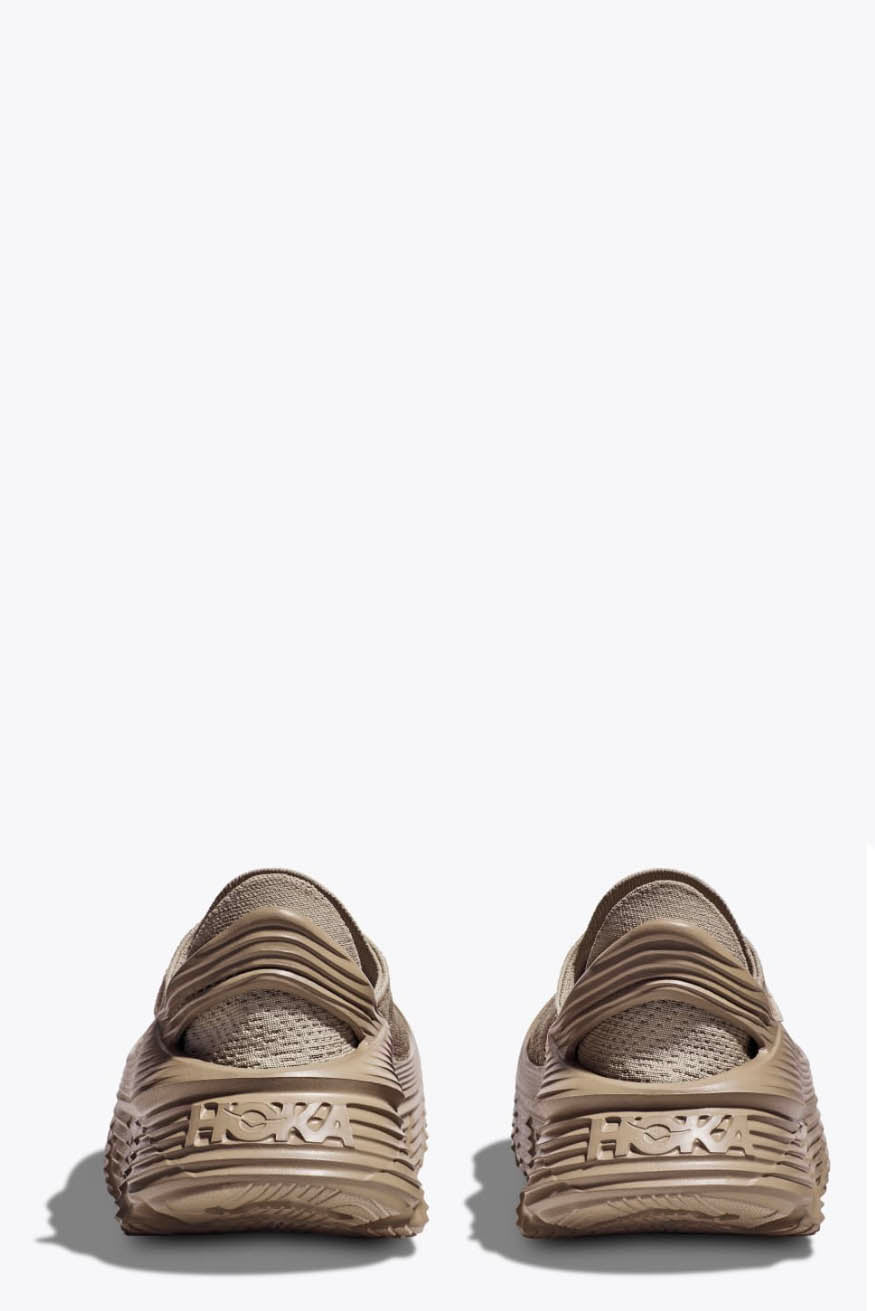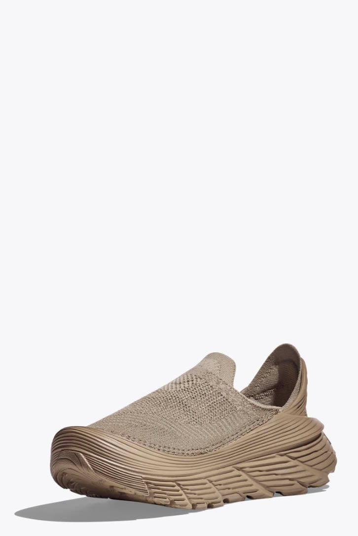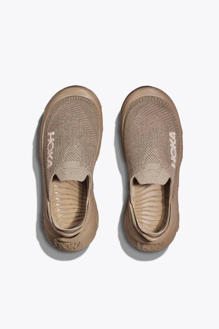 Maximal comfort. Minimal materials. A progressive slip-on designed with the circular economy in mind, Restore TC is engineered from minimal materials and employs a simple, three-part construction. Pairing a stretchy, sock-like upper with a 30% sugarcane-based EVA insole and 20% sugarcane-based EVA outsole. Hoka have enlisted a protective EVA toe cap and targeted stretch zones for the ultimate in all-day comfort.