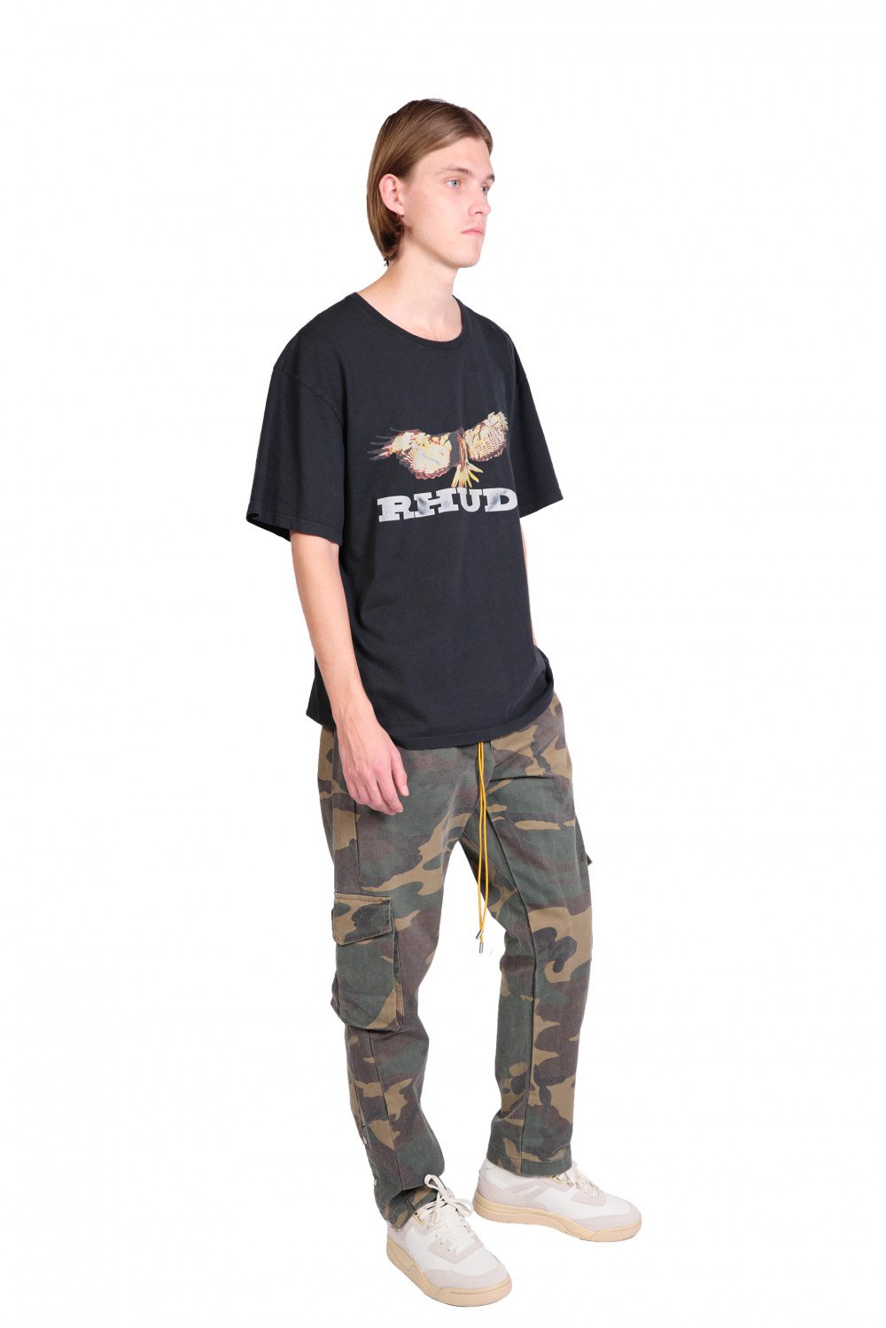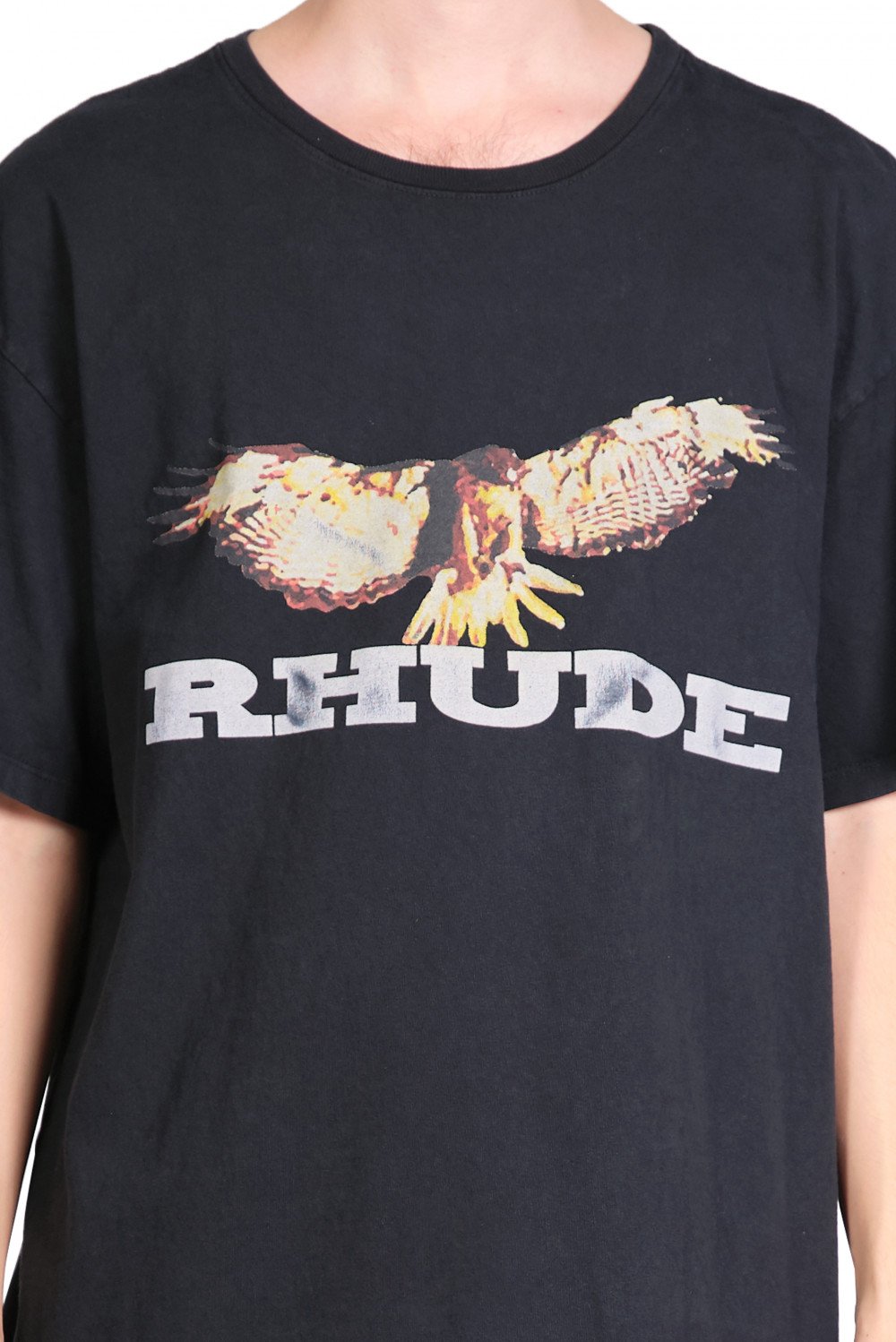 Rhude design merge disparate cultural influences, which combine streetwear style with British punk and high fashion sensibilities. With youthful energy, U.S. based production, and culture-clashed appeal, Rhude acts as a keen reflection of new inroads in men's fashion as seen in the Rhude Black Eagle T-shirt.