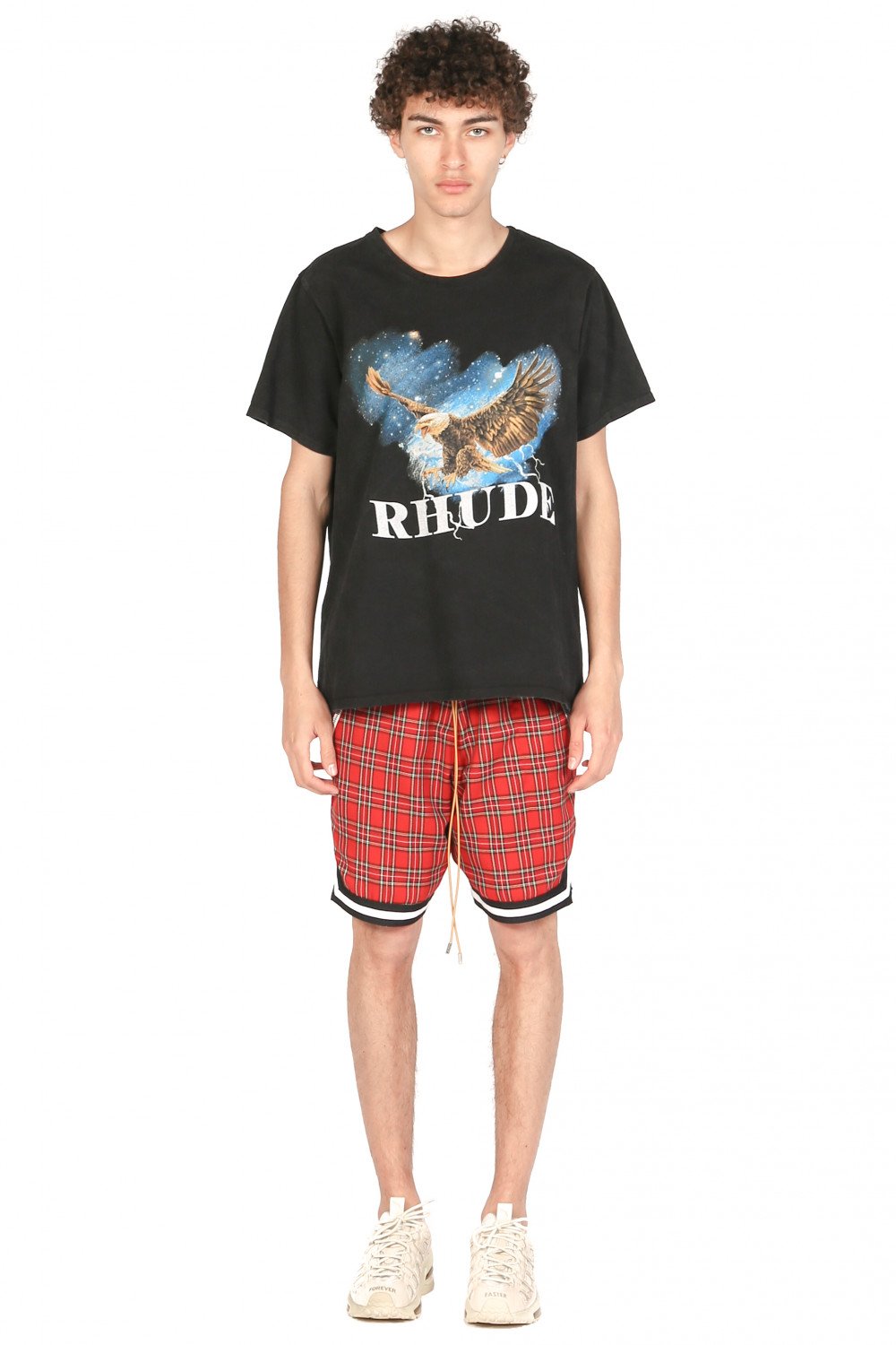 Rhude design merge disparate cultural influences, which combine streetwear style with British punk and high fashion sensibilities. With youthful energy, U.S. based production, and culture-clashed appeal, Rhude acts as a keen reflection of new inroads in men's fashion as seen in the Rhude Red Plaid Shorts.