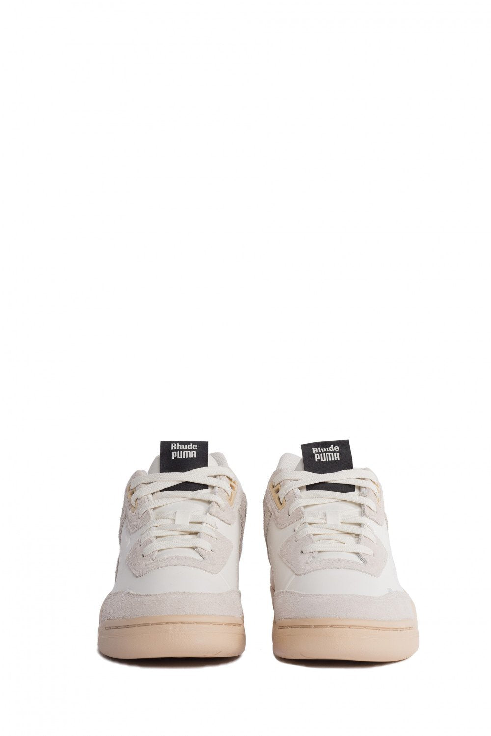 Veteran sportswear brand meets LA streetstyle up-and-comer in the PUMA x Rhude collaboration. Taking an archival basketball sneaker – the Palace Guard – and giving it a deconstructed aesthetic accompanied by luxe materials, the duo offer a slick, latte-tone take on an old classic. Contrasting textures combine to form the uppers – luxe suede, matte leather and high tech nylon mesh – while the sole is cut from coffee coloured rubber which repeats at the eyelets. A perforated Formstrip punctuates the sidewall and the sneaker is finished with high impact dual branded tongue pulls and intermittent hits of haphazardly placed white stitching for a subtle handmade look.