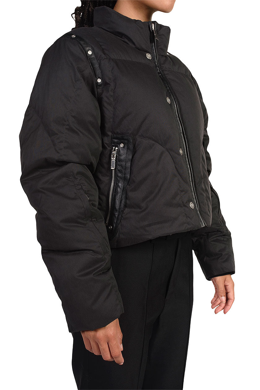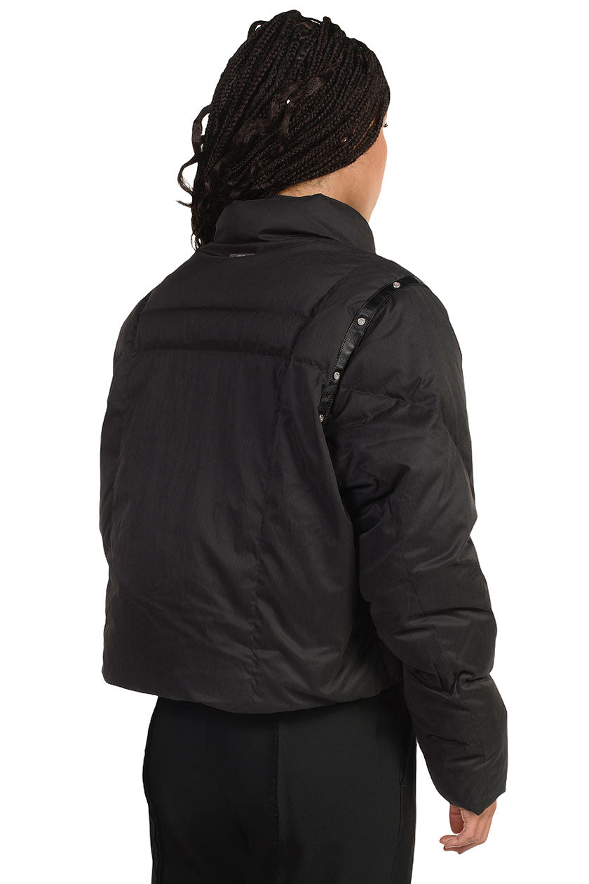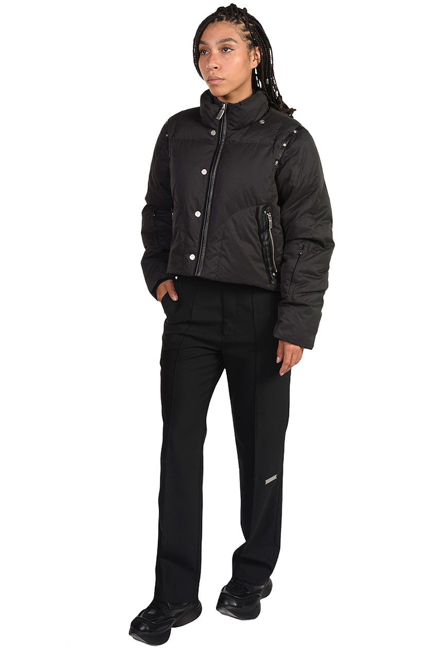 C2H4 concept ranges from hypothetical space scientists producing sport and streetwear-inspired designs creating an intergalactic underground culture. Using her studio as a laboratory, Chen’s meticulously elevates wardrobe cornerstones as seen with the Rivet Leather Panelled Down Jacket.