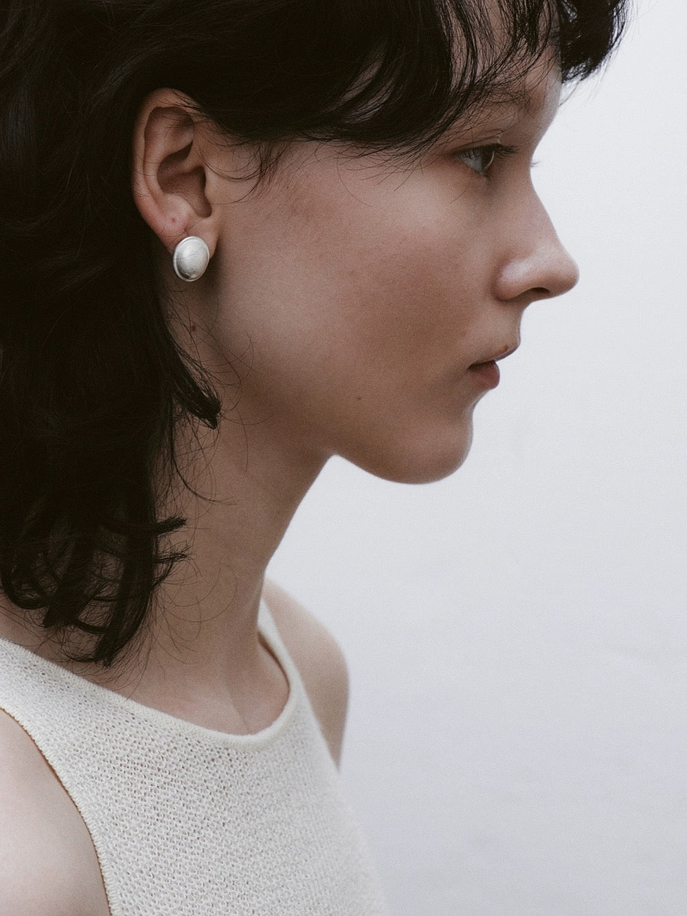 OLIO E ACETO is raw and authentic. It is about the companionship between people, and objects like the matte white surface becoming a blank canvas to be filled by the wearer as seen with the Round Ear Studs.