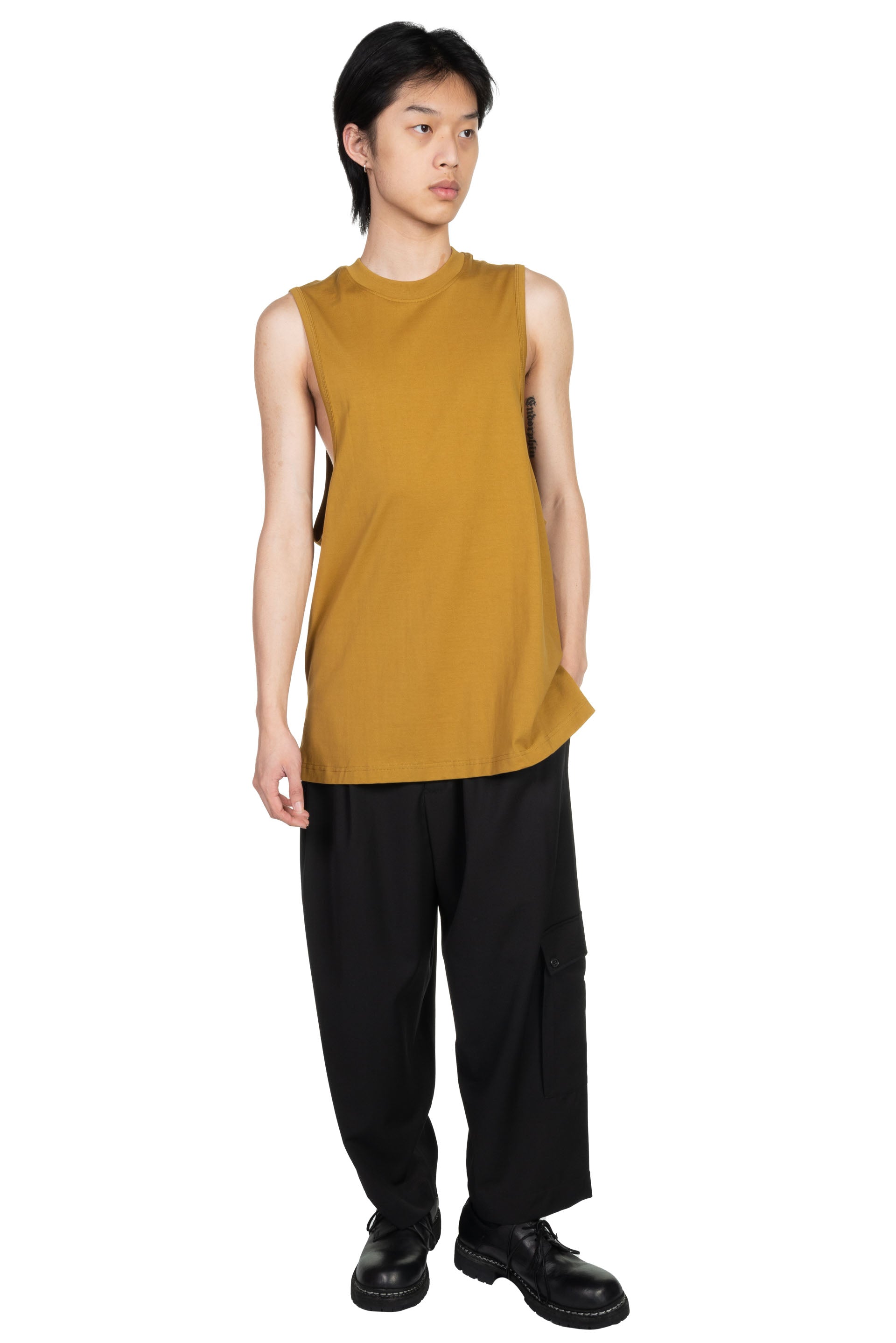 Joe chia is built immensely around exceptional construction, fine fabrications and precise tailoring, entwining classicism with contemporary references that stand the test of time, challenging and reimagining duality with innovation and a sense of audacity as you can see in the Rove Sleeveless T-Shirt Sulphur.