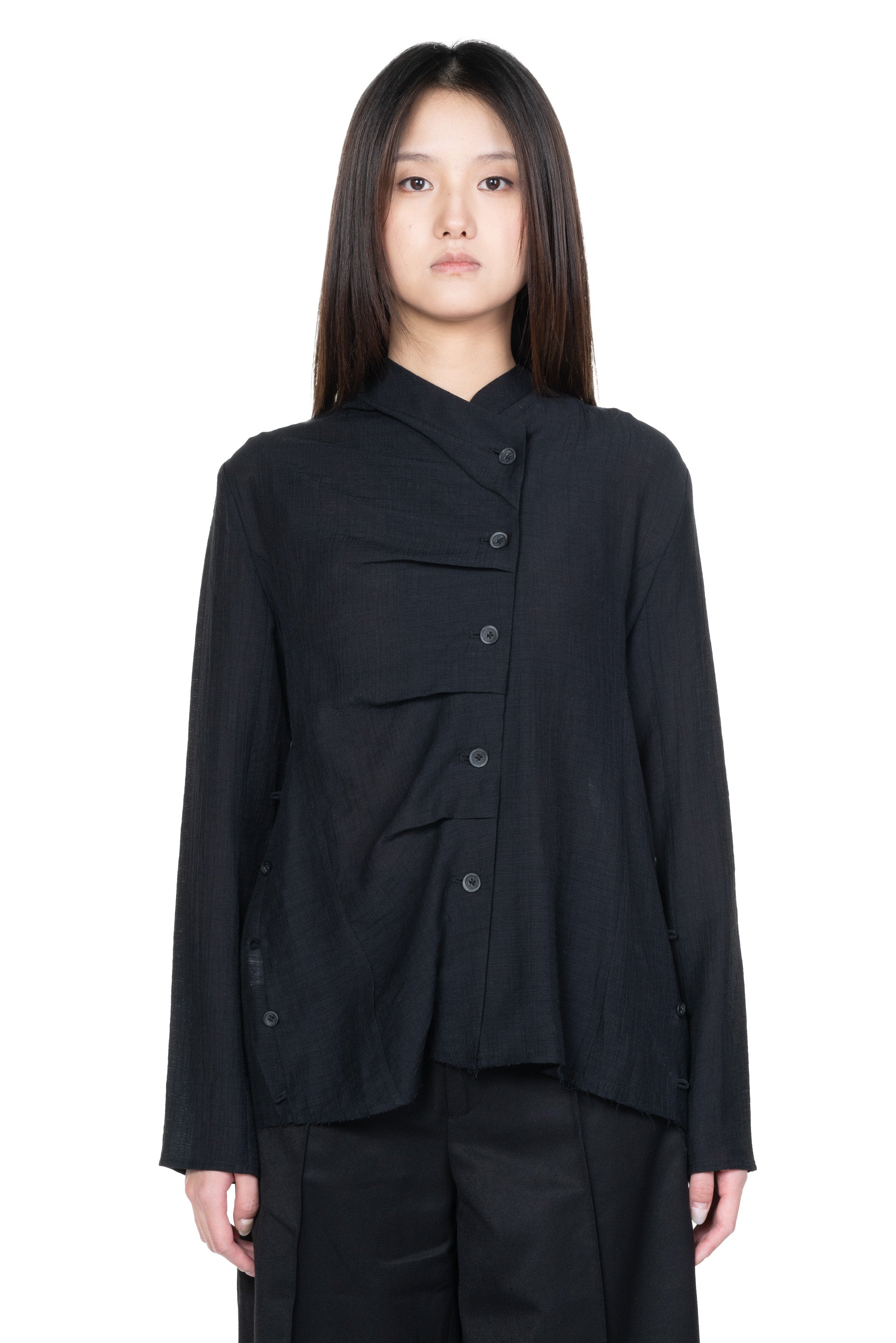 Professor. E understands the time of aesthetics from the use of cotton, hemp and wool. Fabric stitching, patching, designs without edge trimming, deconstruction, and reproduction are all Professor. E's signature elements creating classic immortal designs that can be viewed with the Ruffled Shirt Black.