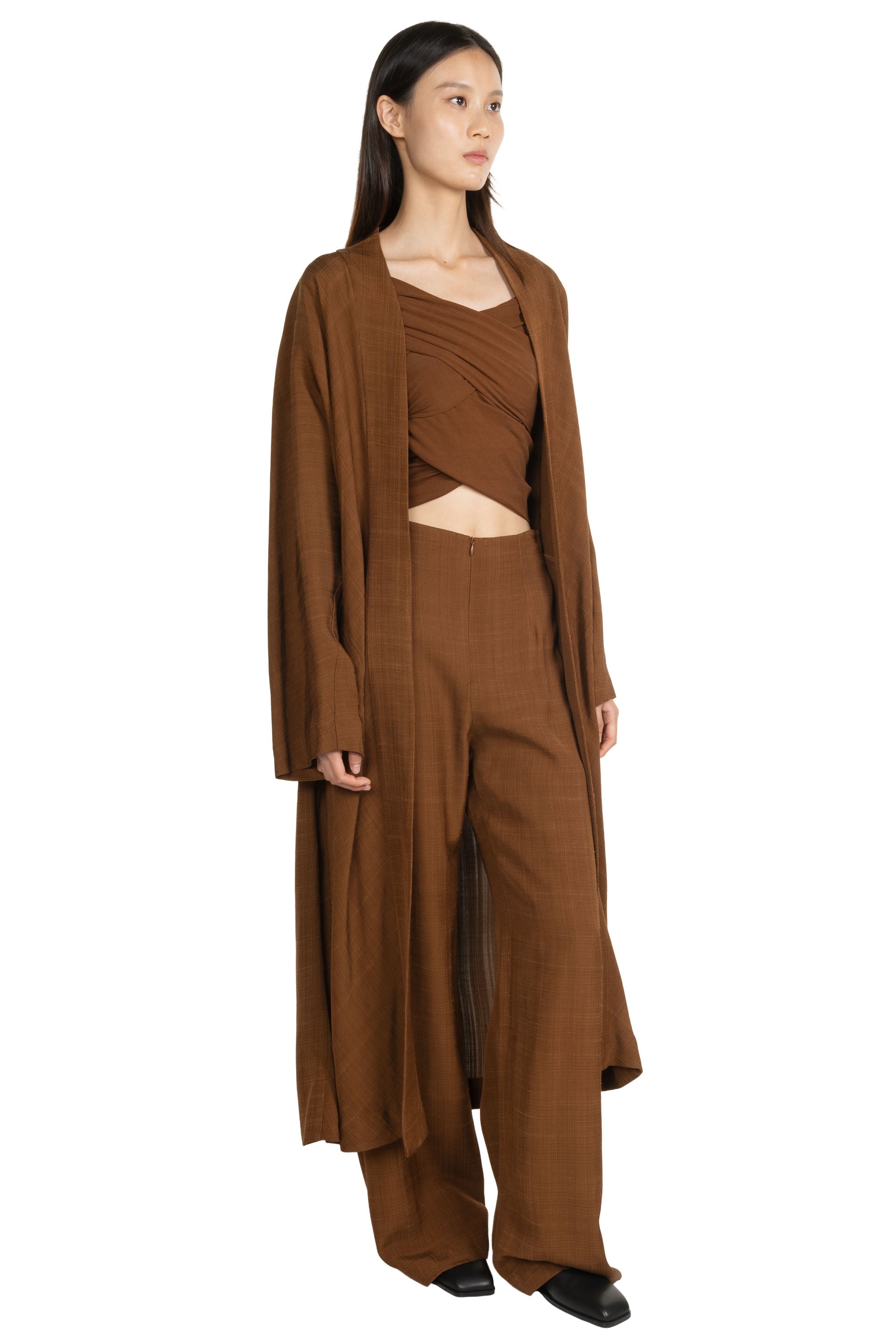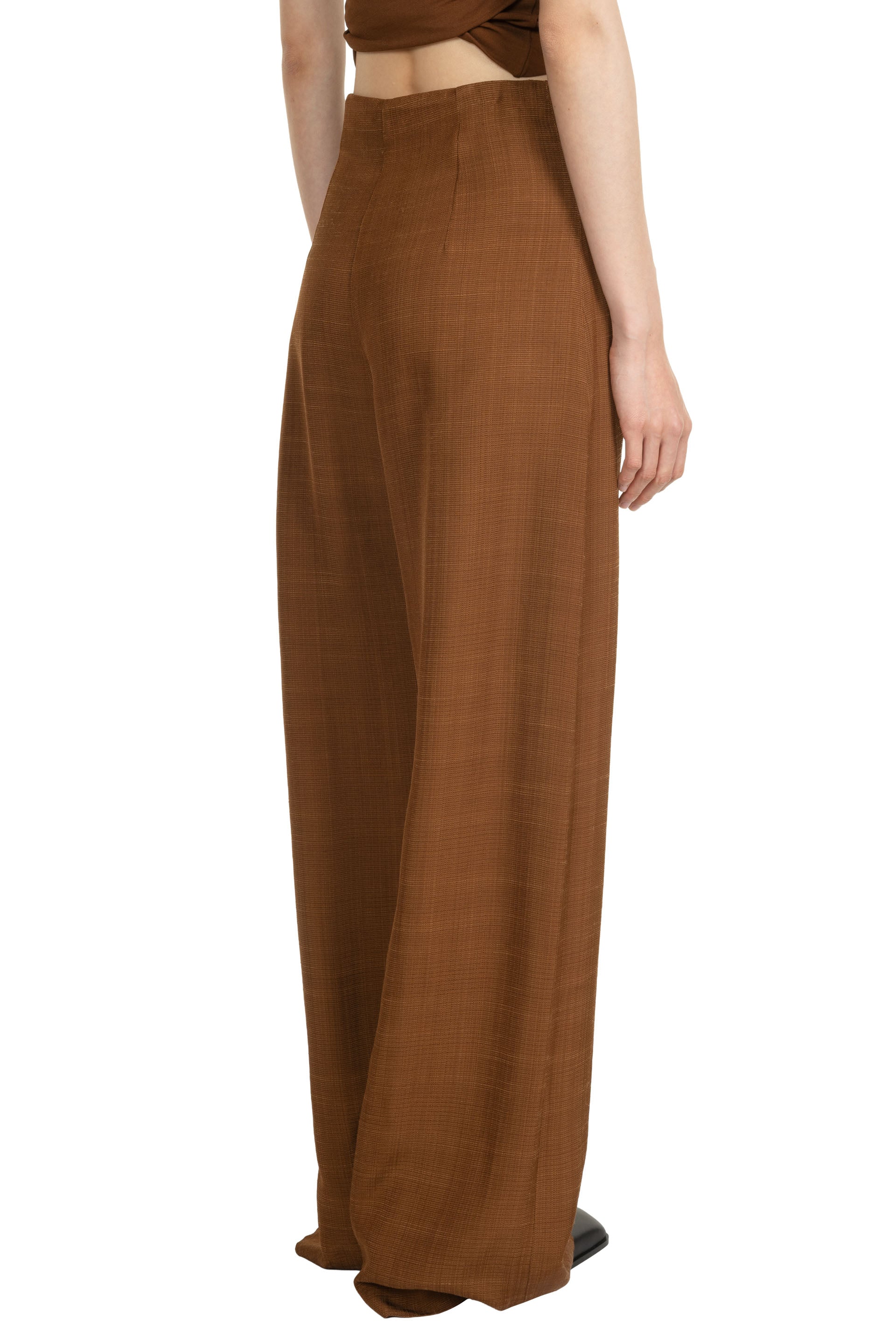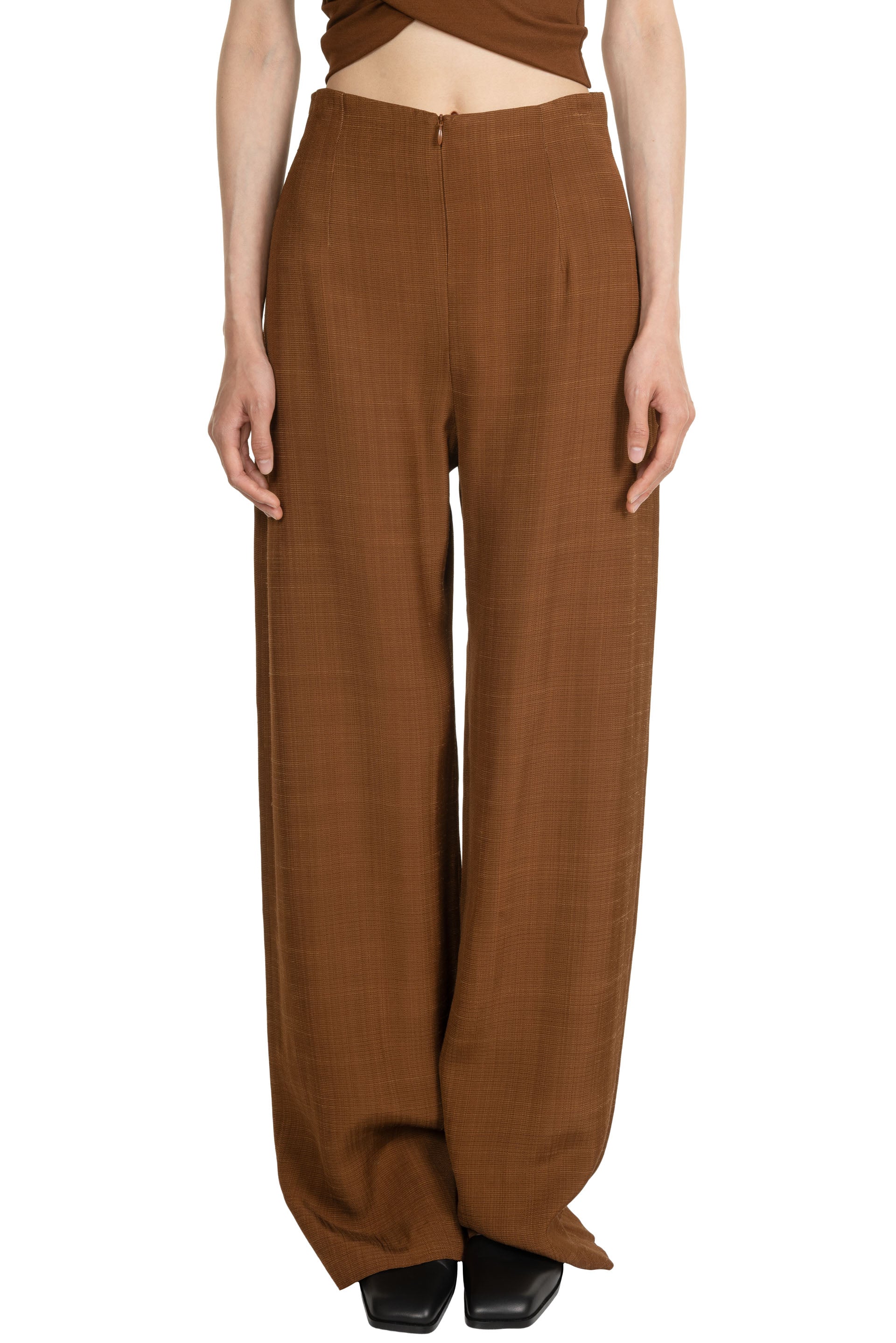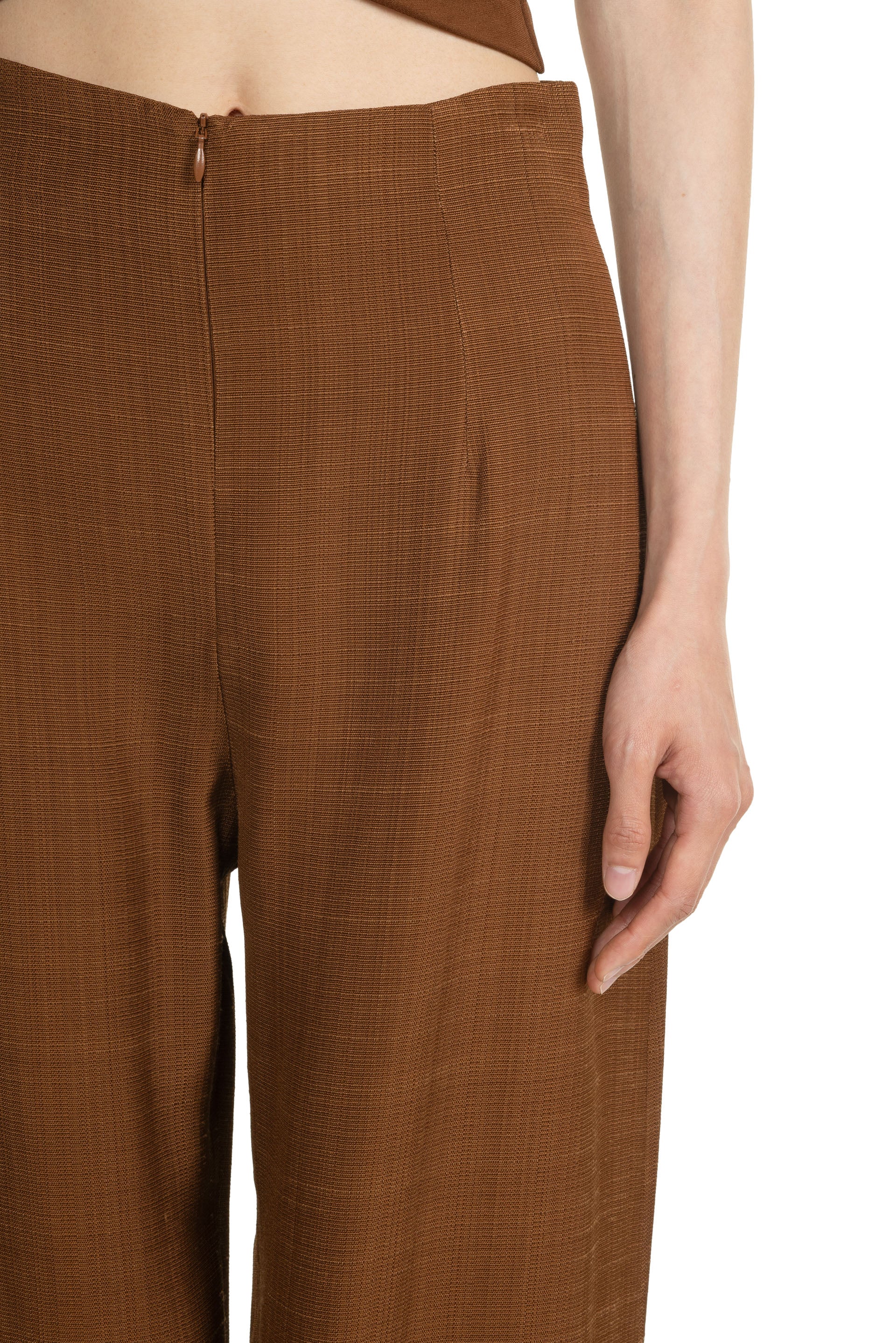 Cortana Saga Pants in Cinnamon. Straight-cut. High-waisted pants made from viscose jacquard fabric that stands out for its texture.
