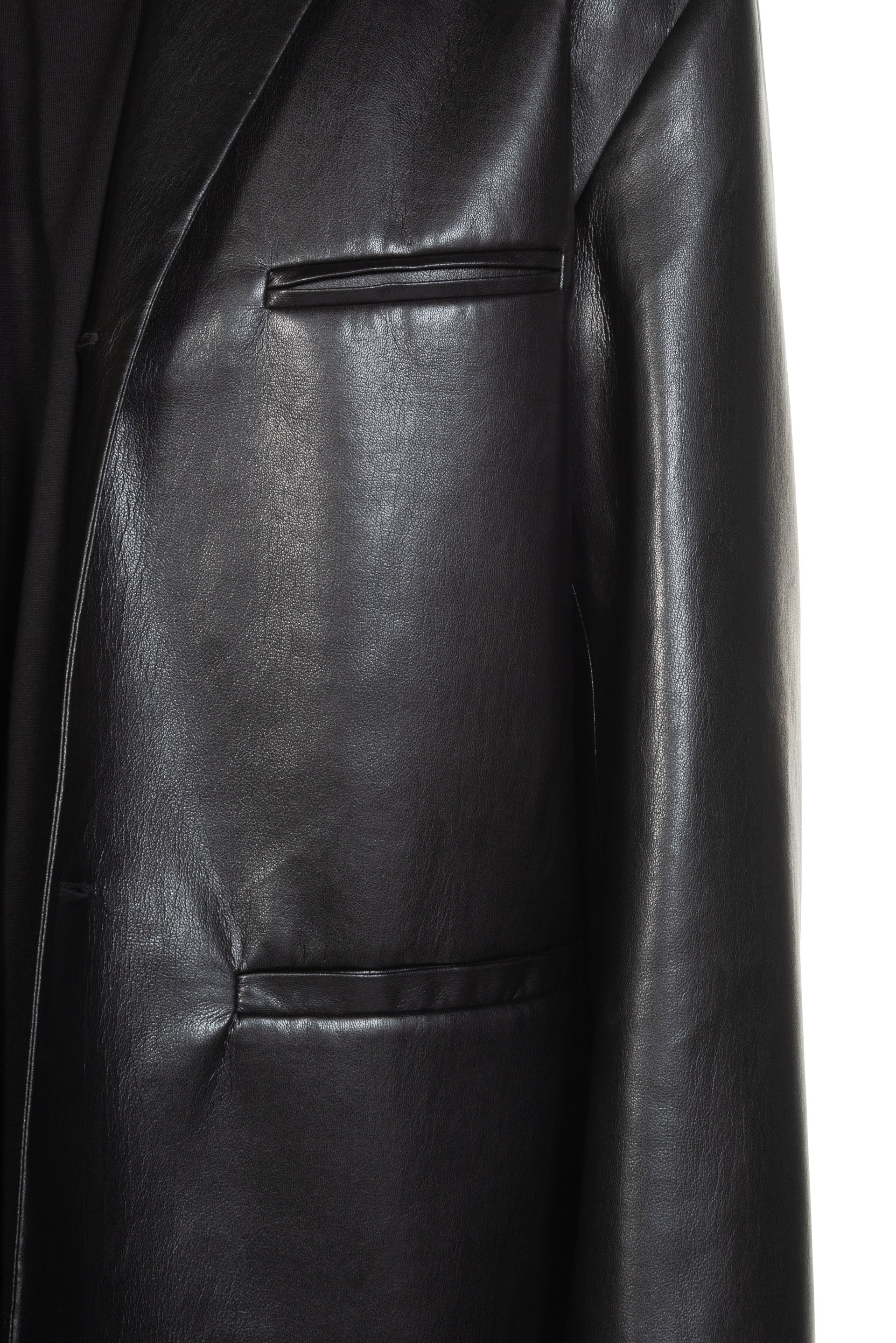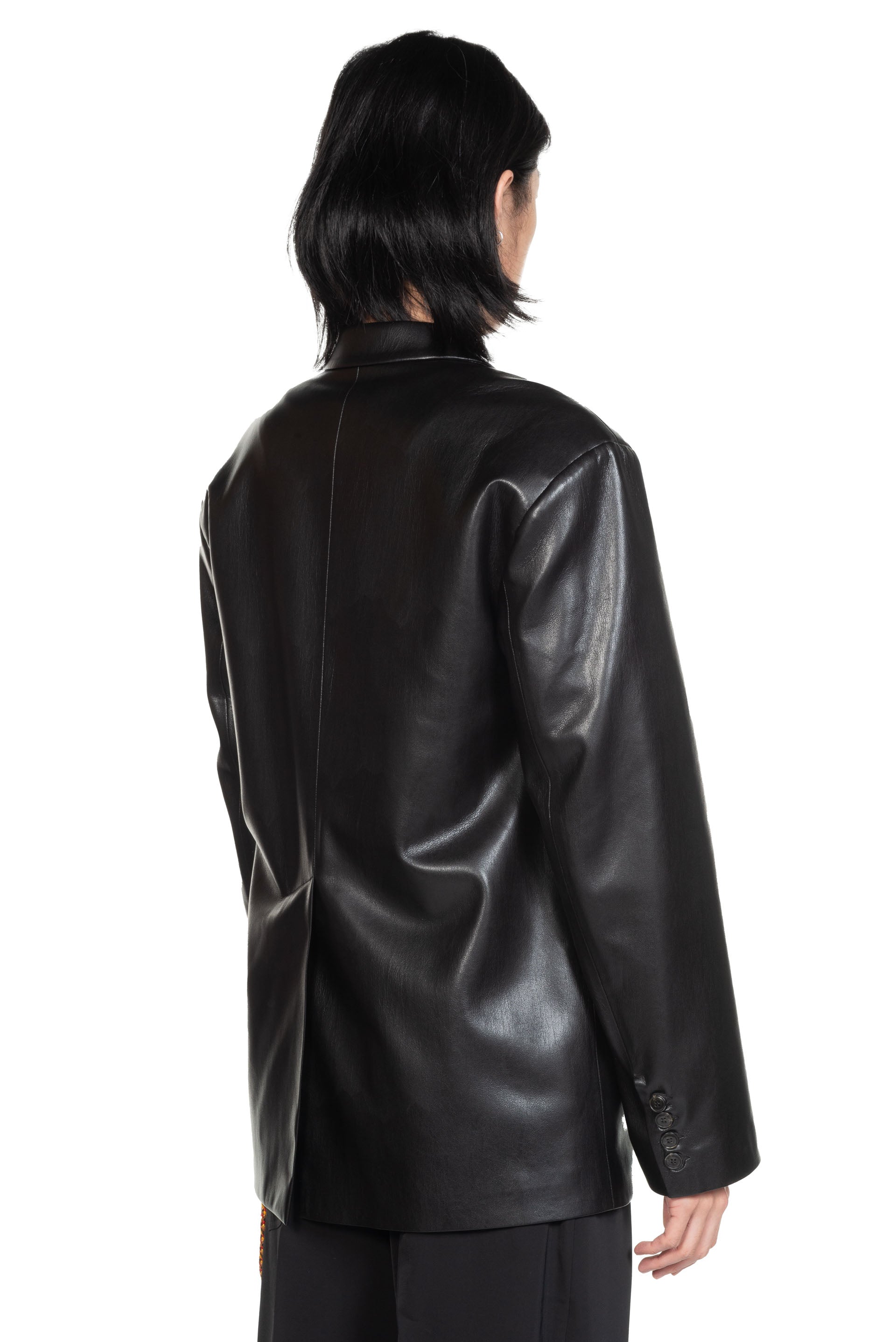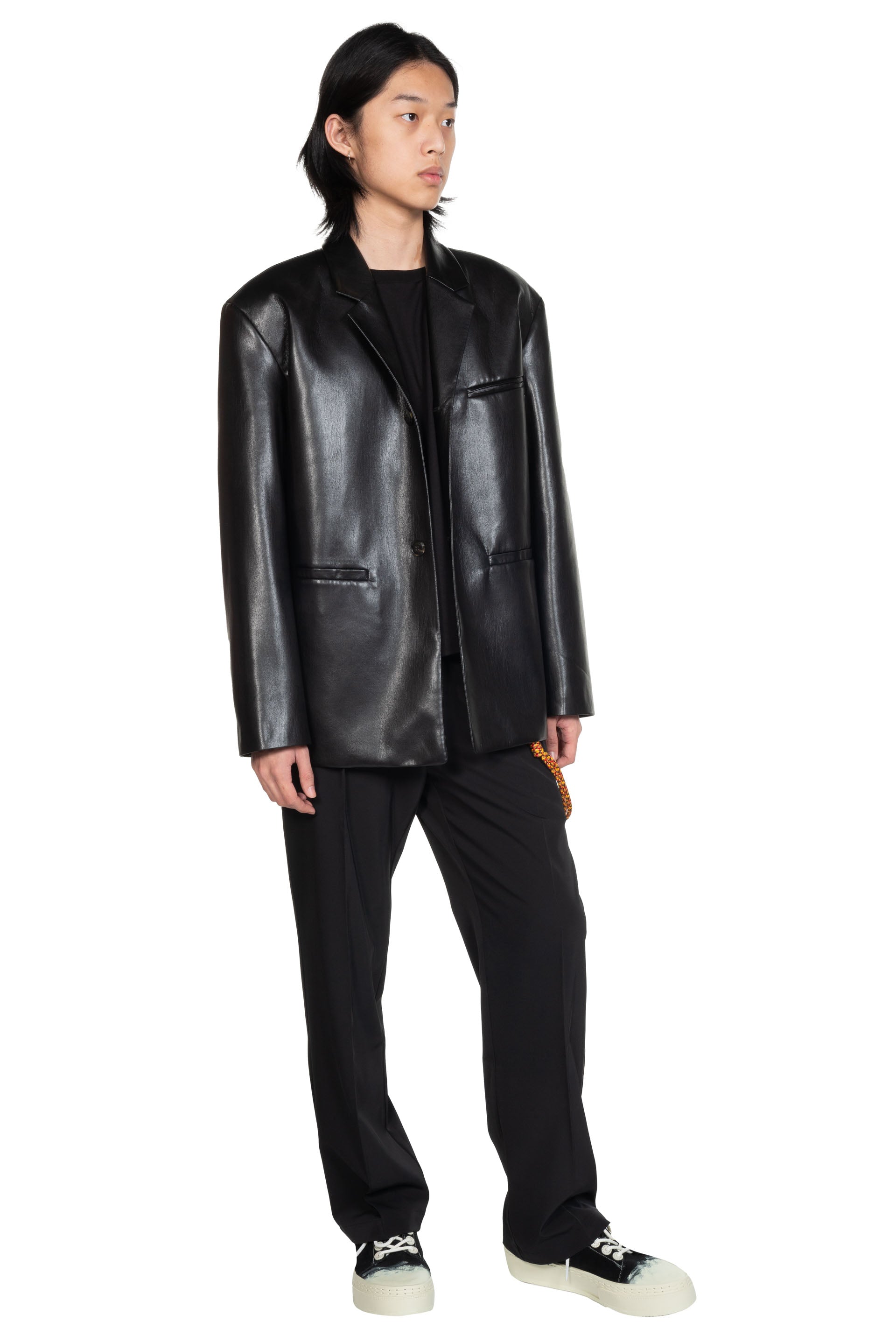 Sanco OKOBOR Alt-Leather Jacket Black. Long sleeves. Button closure at front. Two pockets at front. Classic silhouette. Smart notched collar. One inside pocket.