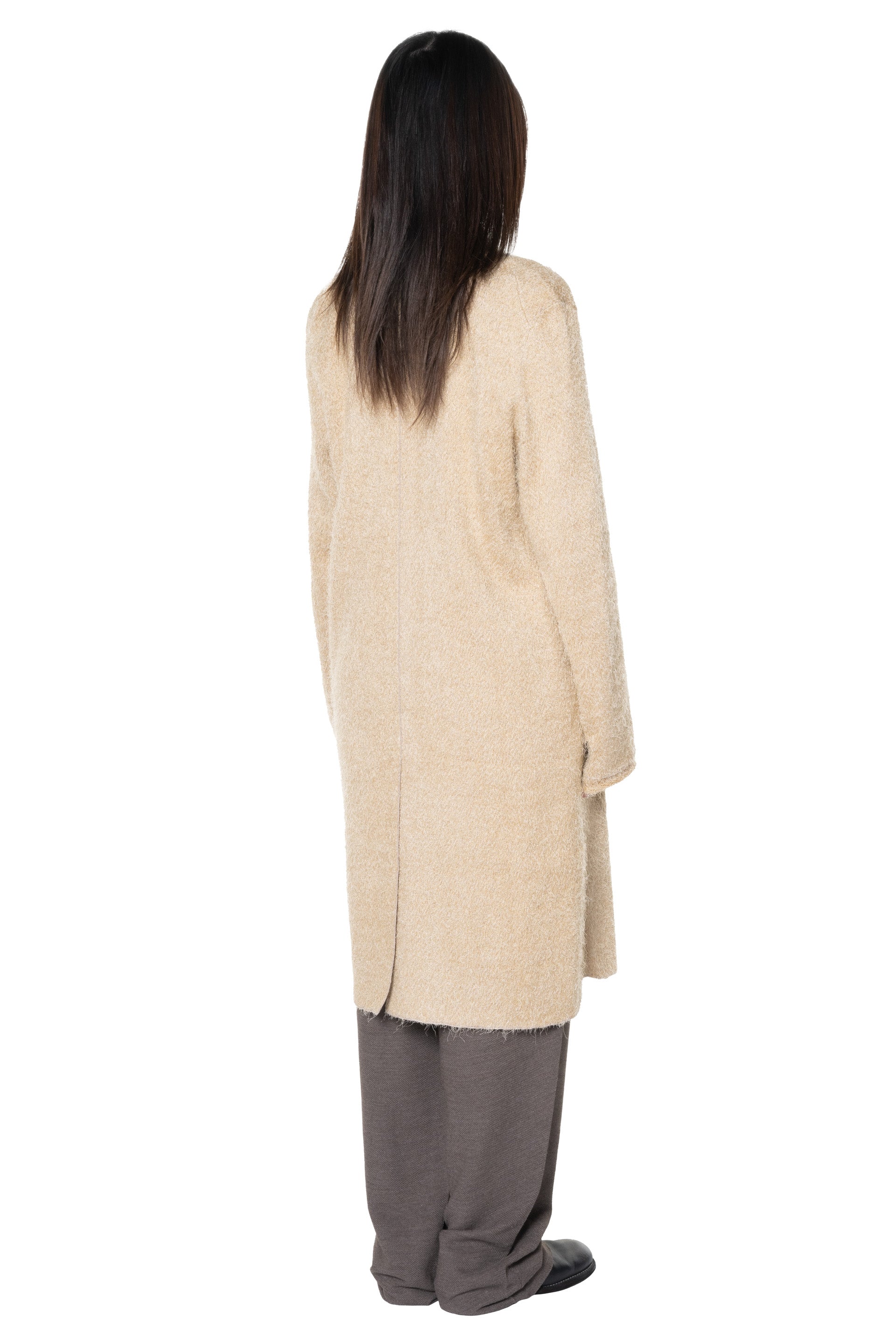 Boboutic consider knits an ideal medium, since its versatility allows conceiving unique surfaces and unexpected shapes. The approach to knitwear is unpredictable, aiming at creating a product where materials and structures compensate each other as seen with the Sand Coat.
