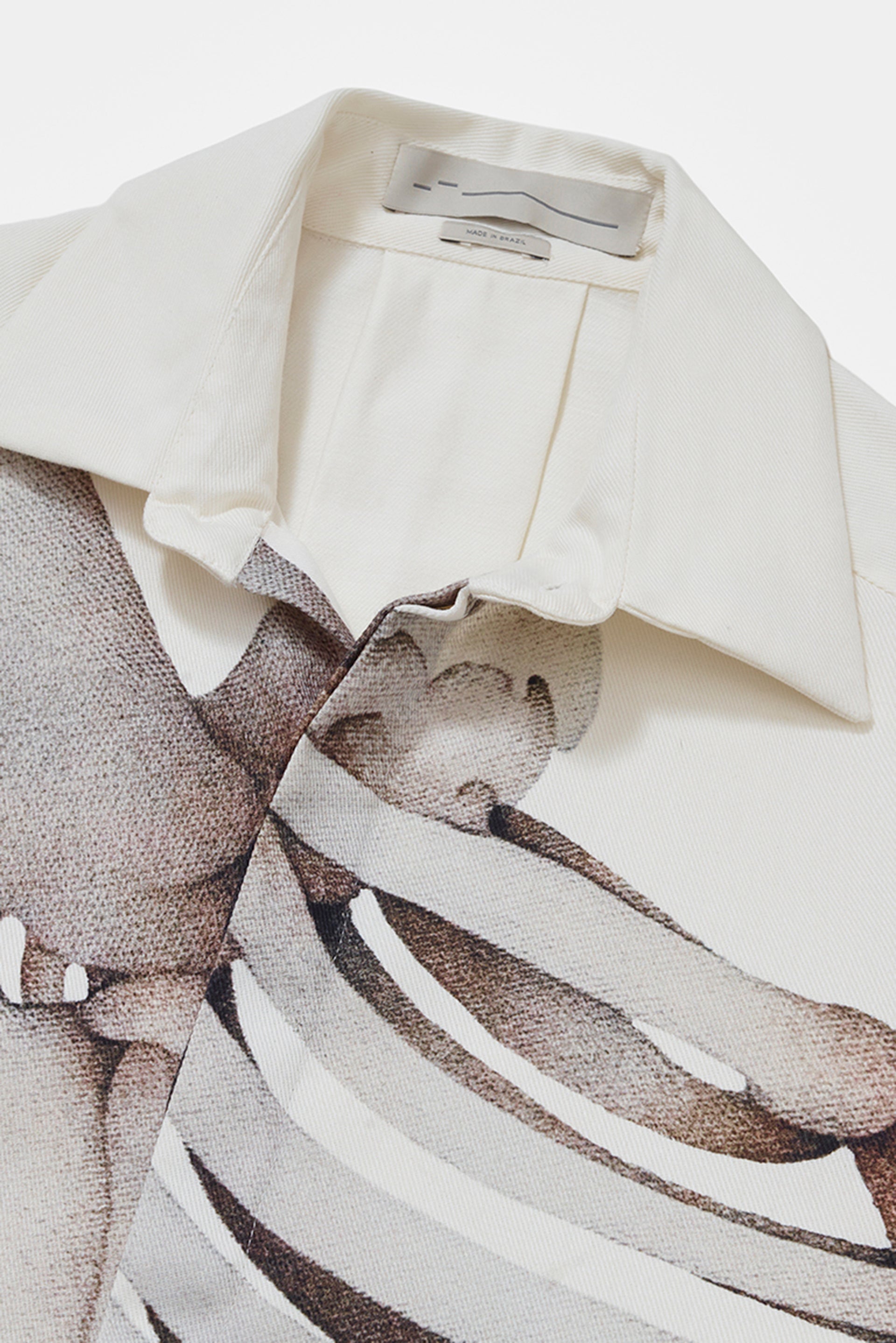P. Andrade Schnabelafe Shirt made of premium 100% cotton twill. Long sleeves. Walmor Correa Print at chest. Button closure at front. Back details at collar. Raglan Sleeves. Slit at back. Oversized fit. The Schnabelaffe shirt has an exclusive print developed in partnership with the Brazilian artist Walmor Corrêa.