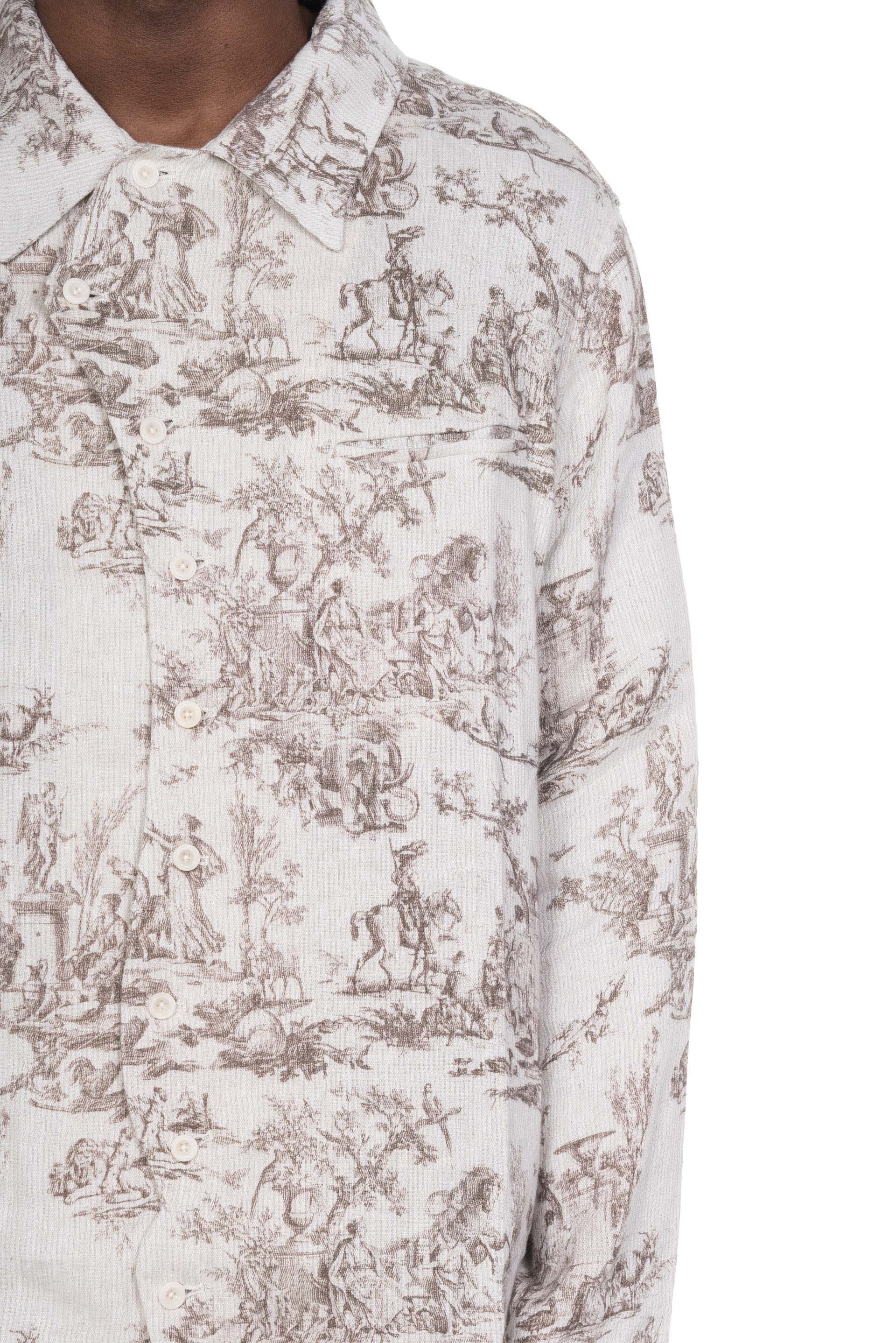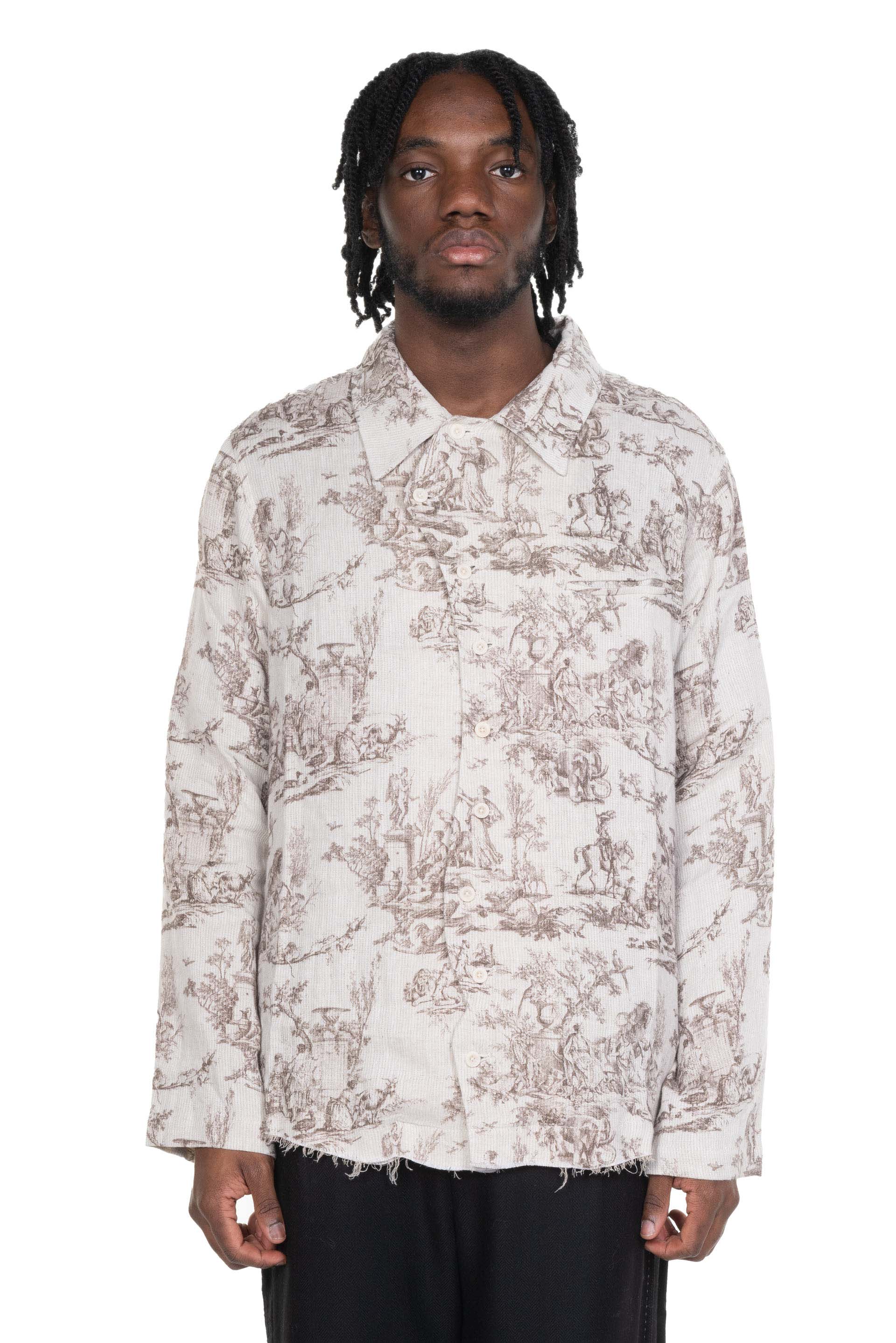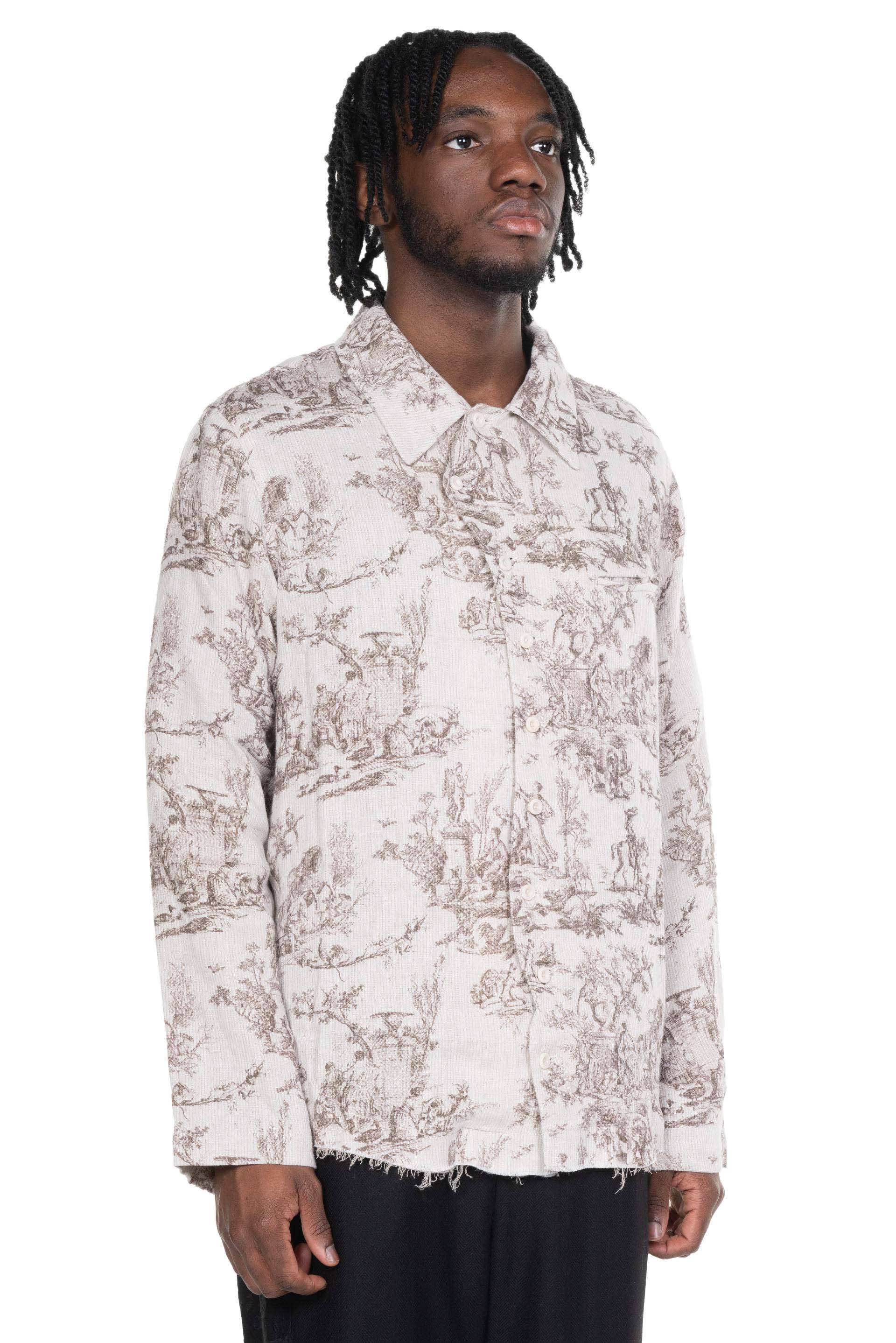 Professor. E understands the time of aesthetics from the use of cotton, hemp and wool. Fabric stitching, patching, designs without edge trimming, deconstruction, and reproduction are all Professor. E's signature elements creating classic immortal designs that can be viewed with the Seasonal Print LS Beige.
