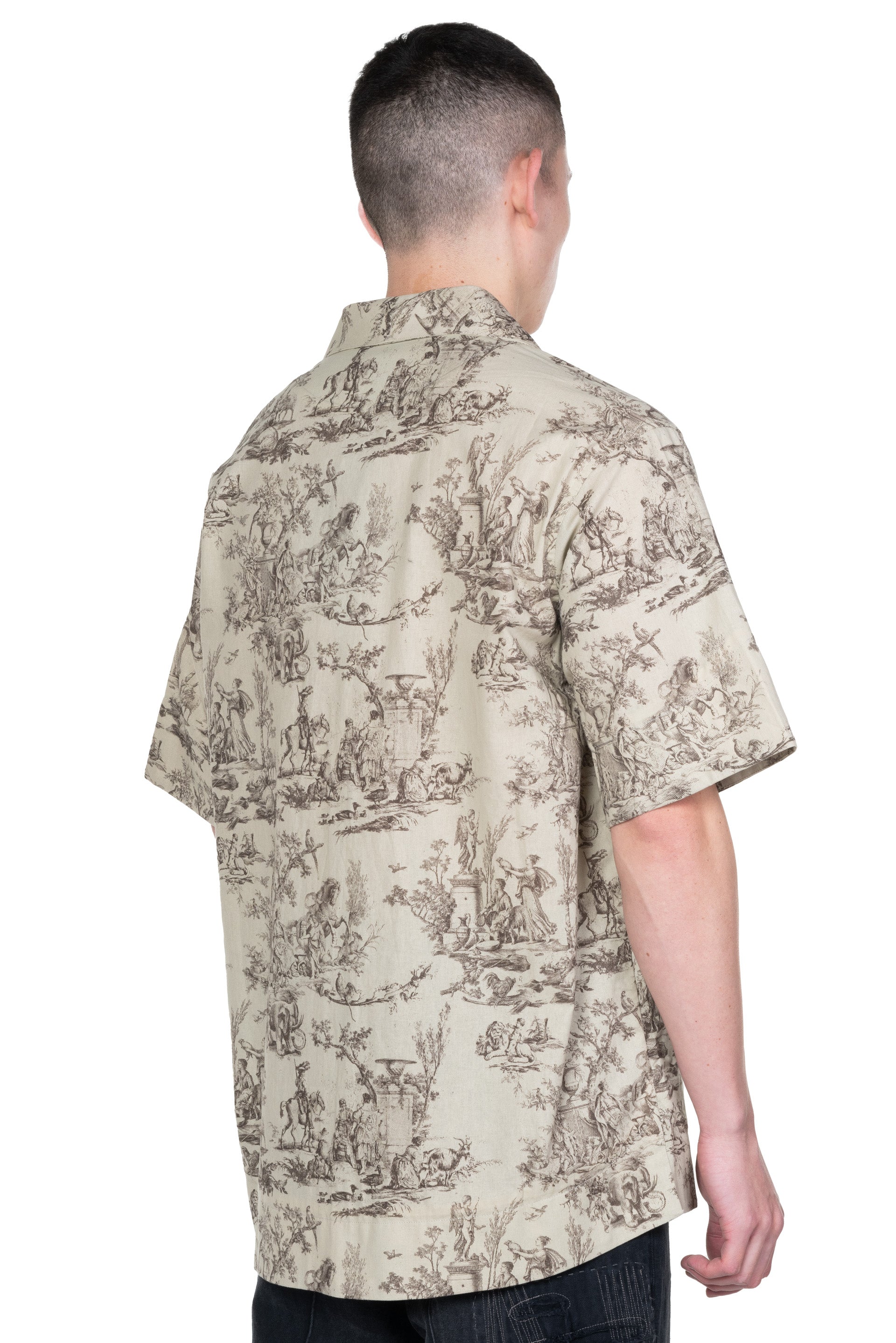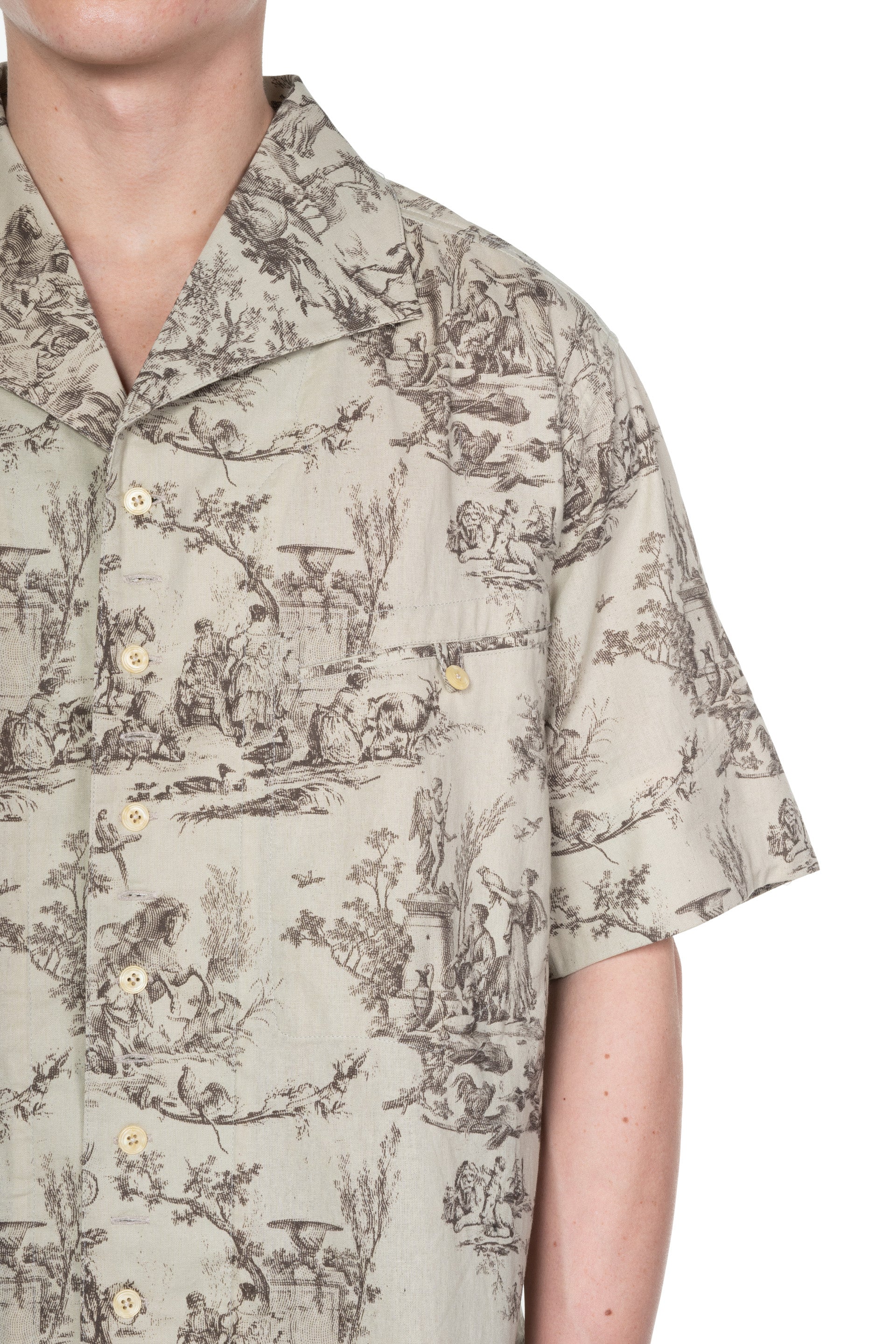 Professor. E Seasonal SS Shirt Khaki Short sleeves. Button closure at front. Open collar. Seasonal print throughout. Boxy cut. Pocket at chest.
