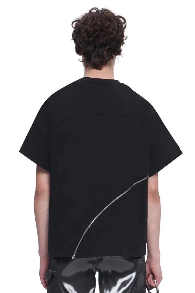 Oversized t-shirt with zip detail wrapping around body. Oversized fit. Plain Cotton jersey. Raglan sleeves with zip detail going around the body. Ribbed collar.