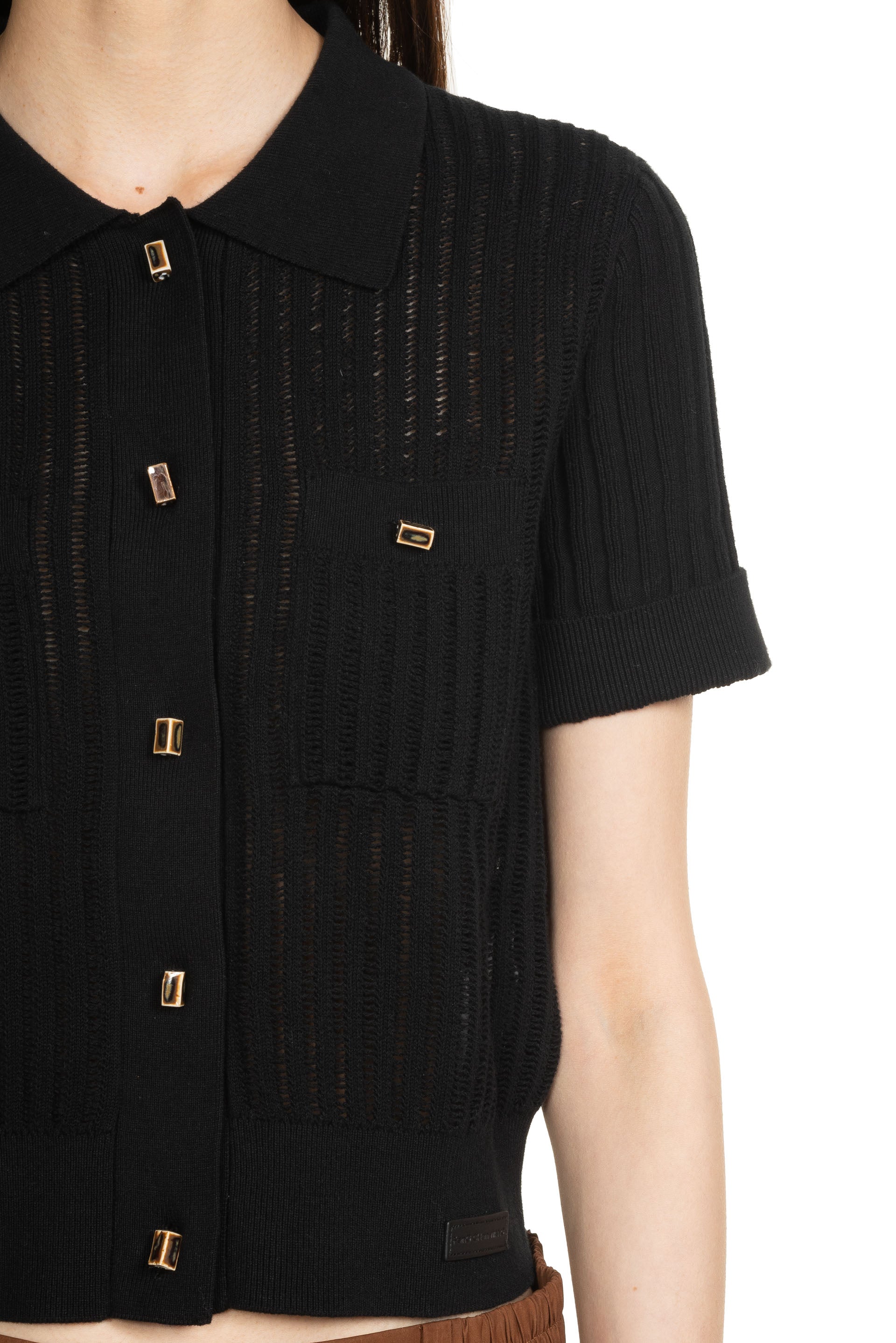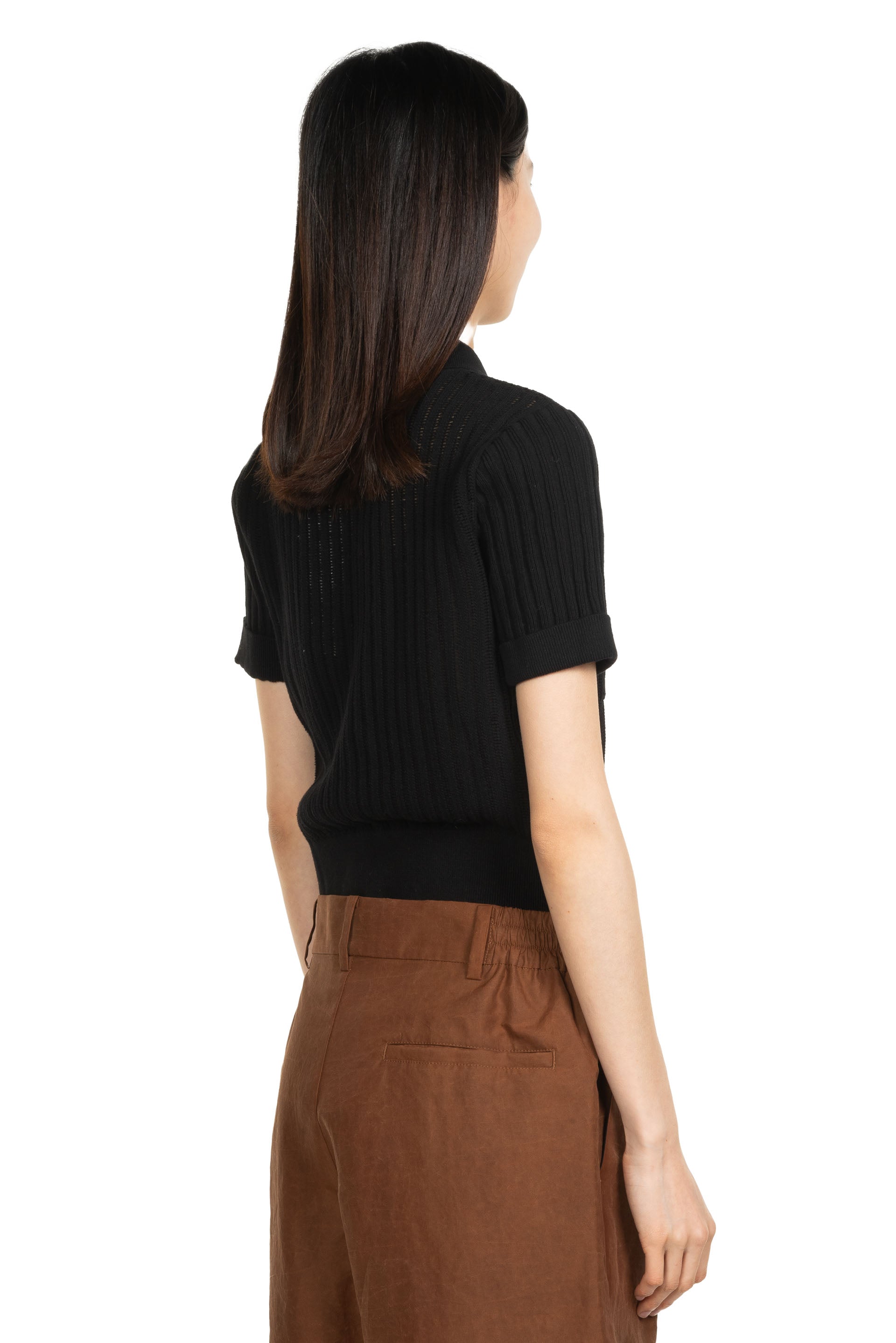 Feng Chen Wang aesthetic is authentic, emotional and multidimensional, drawing on personal life experiences and her Chinese heritage to create products that are functional but at the same time conceptual as seen with the Short Sleeve Pocket Knit Cardigan Black.