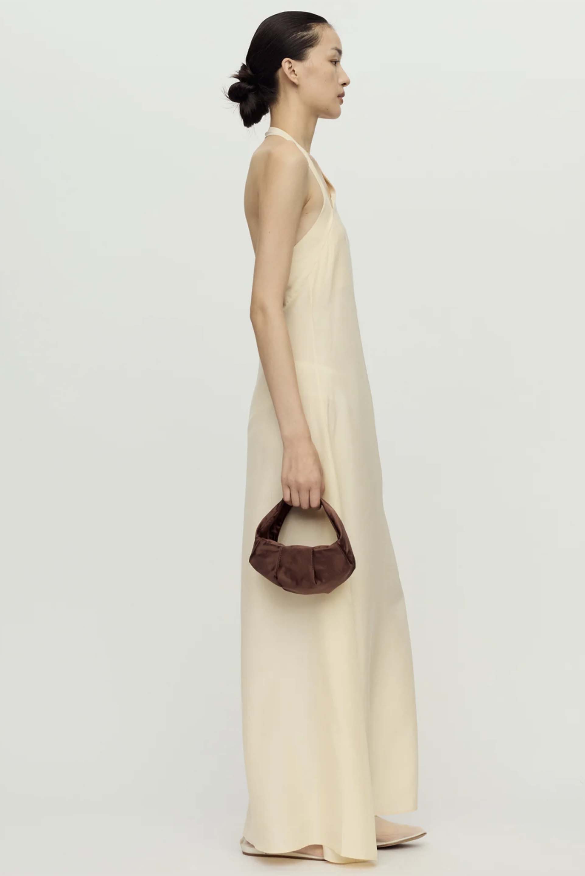 Founded by Ruohan Nie in Shanghai, RUOHAN is a contemporary womenswear label defined by refined minimalism and architectural elegance. Each collection explores the balance between structure and softness, blending Eastern serenity with Western sophistication. Crafted from natural fabrics and tailored with quiet precision, RUOHAN pieces embody timeless design and effortless wearability. The brand’s understated aesthetic celebrates modern femininity through purity of form, texture, and proportion as seen with the Sienna Mini Moon Bag.