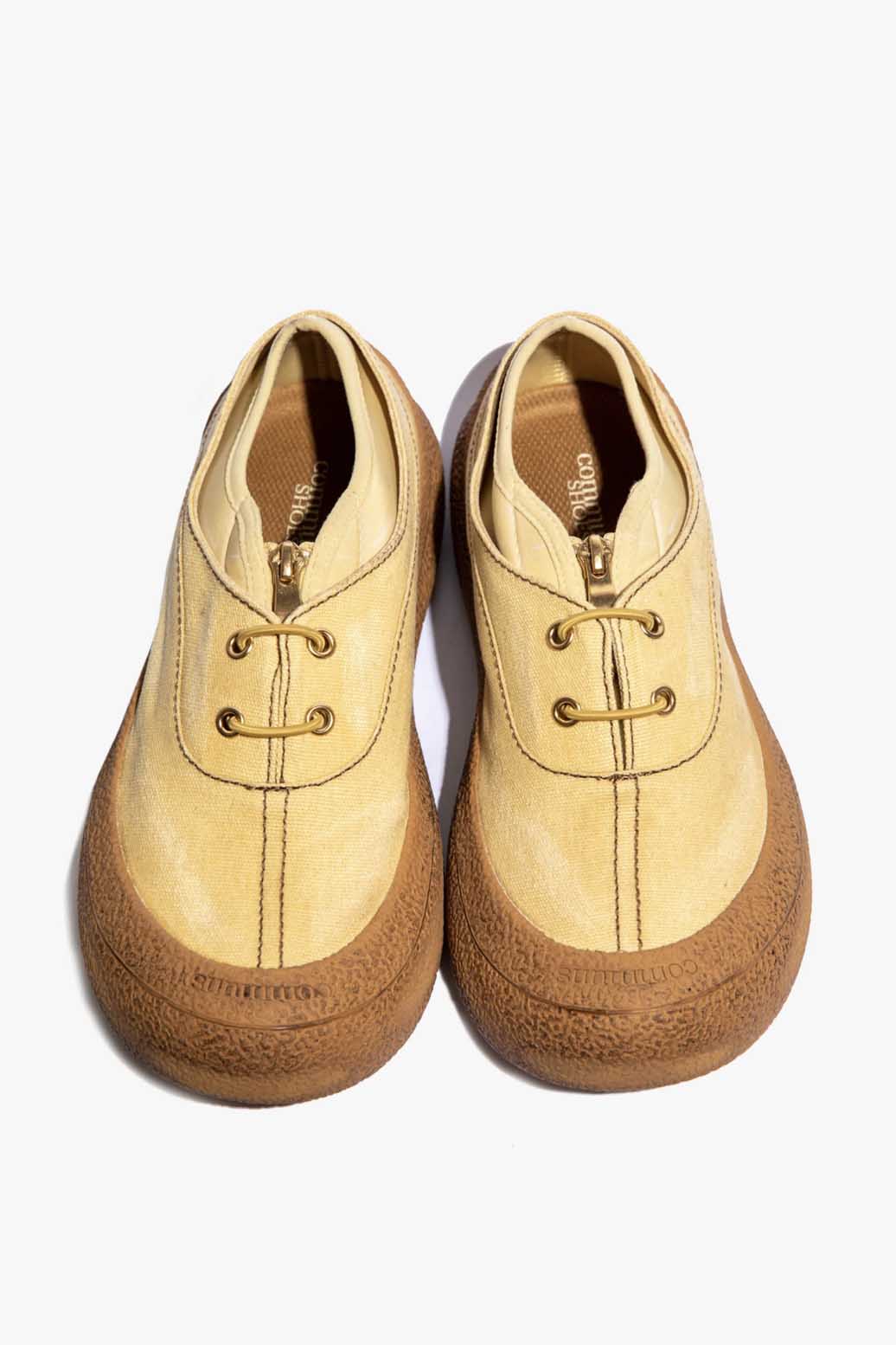 The play of the shades of Brown of these fantasy Gumshoes makes one think of dusty roads explored by the restless traveler. The textured sole with the wide sideboards takes its inspiration from traditional Tibetan shoes and the undersock with the zipper closure brings extra comfort. Contrast Dark Brown Topstitching brings a nice contrast. The main fabric and sole surface were treated in a particular way to create a used Vintage effect.