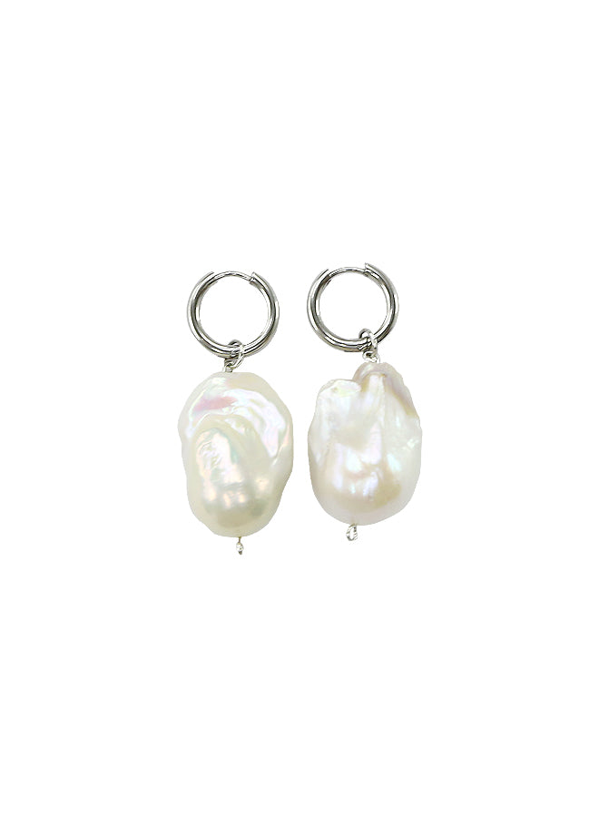 Silver Large Pearl Hoop Earring