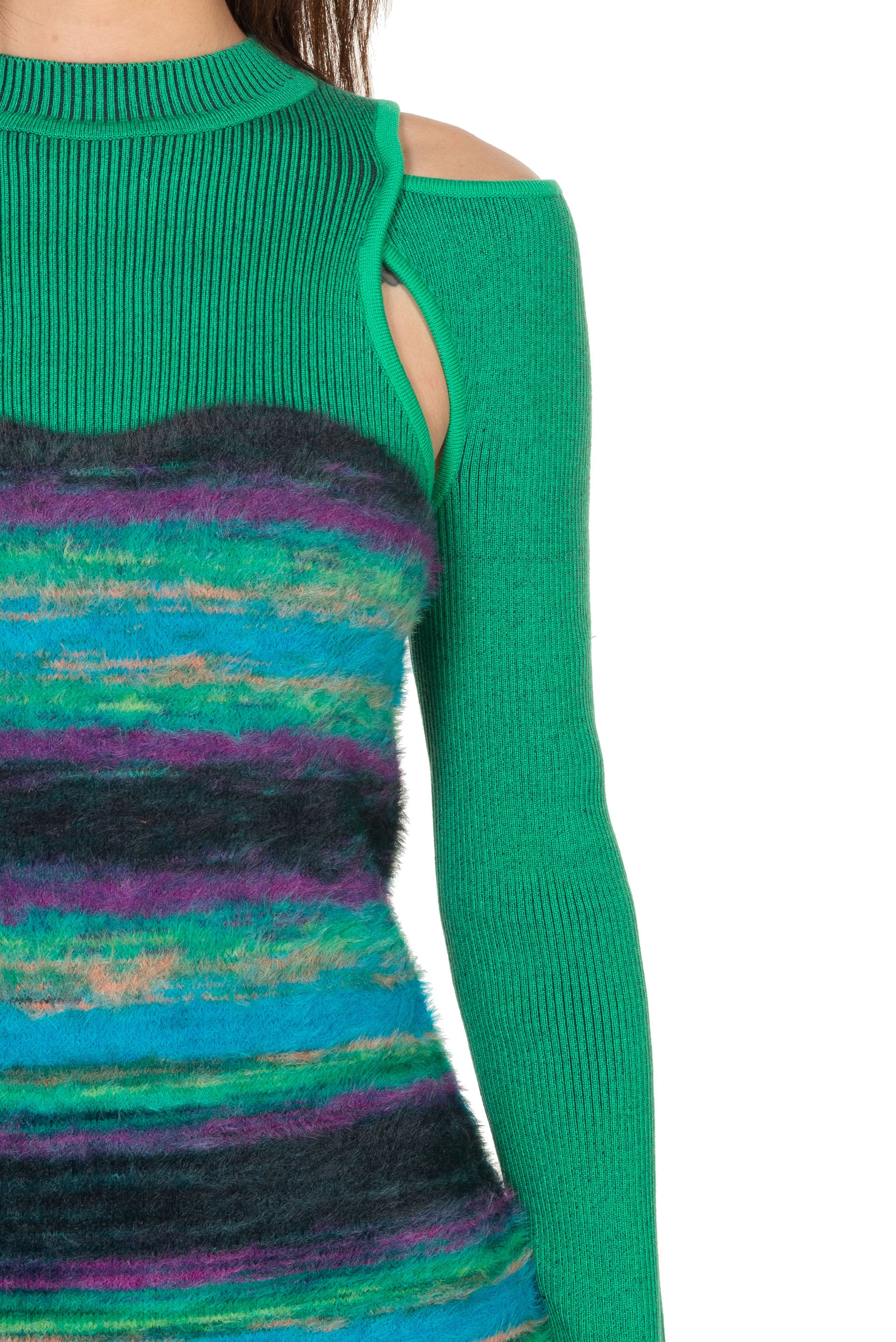 Knitted fabric. Front and back cutout details. Long sleeves. Pattern throughout.