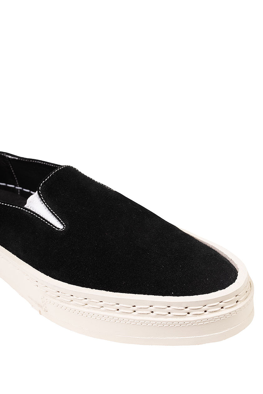 Slip-on silhouette. Suede upper. Japanese plonge lining. Handmade leather cup sole. Eva midsole. Poron insole. Svig italian outsole.