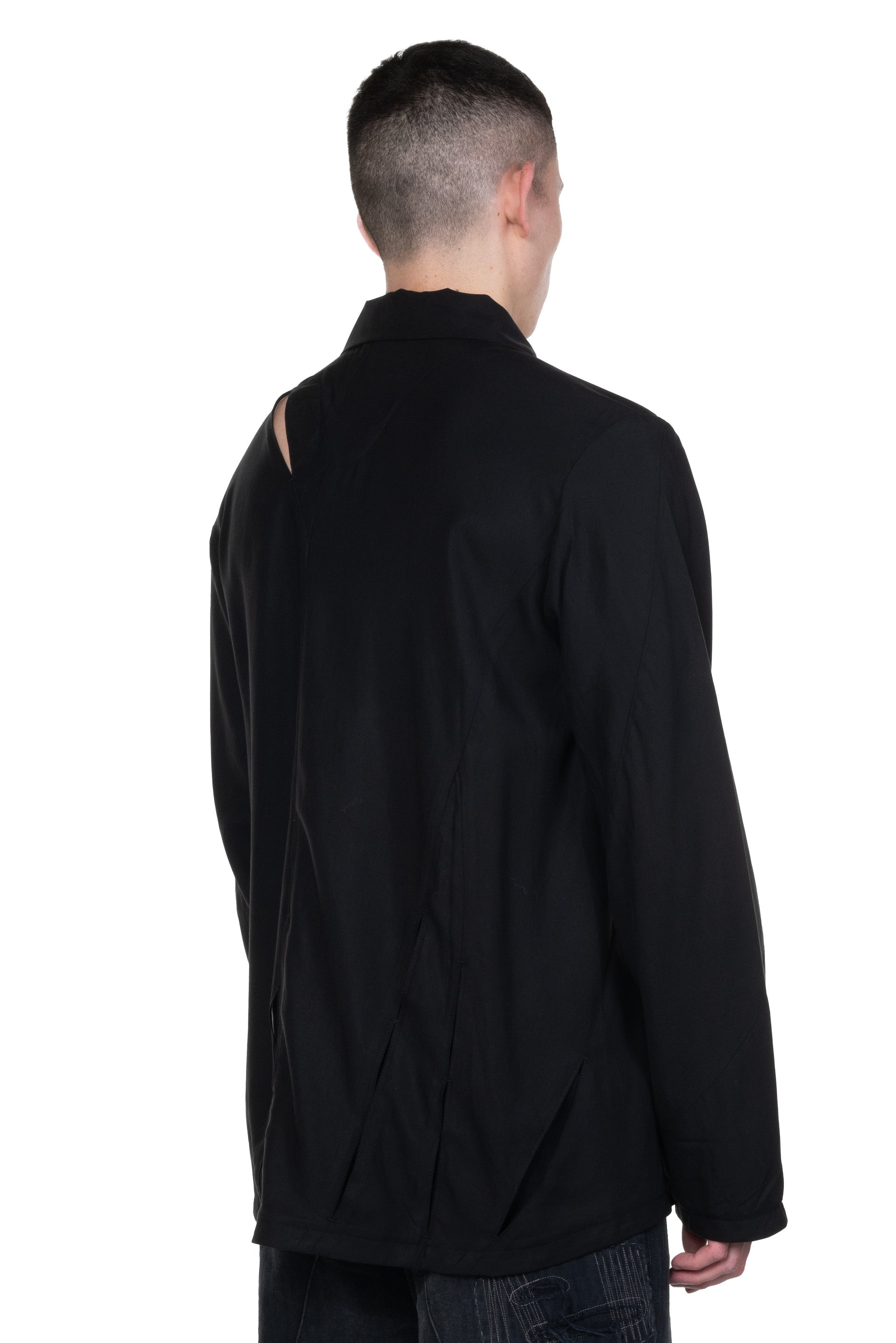 Professor. E understands the time of aesthetics from the use of cotton, hemp and wool. Fabric stitching, patching, designs without edge trimming, deconstruction, and reproduction are all Professor. E's signature elements creating classic immortal designs that can be viewed with the Slit Shirt Black.