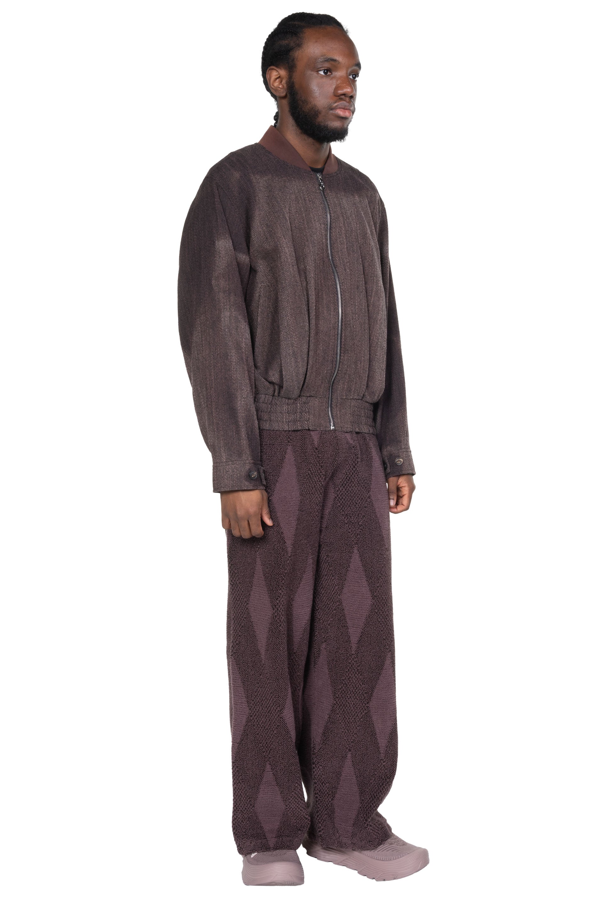 Isa Boulder redefines individuality with artisanal knitwear and ready-to-wear. Based in Bali, the brand working with local artisans and sustainable materials, fuses traditional craftsmanship with experimental design, creating bold pieces that subvert convention and celebrate individuality as seen with the Small Argyle Towel Pants.