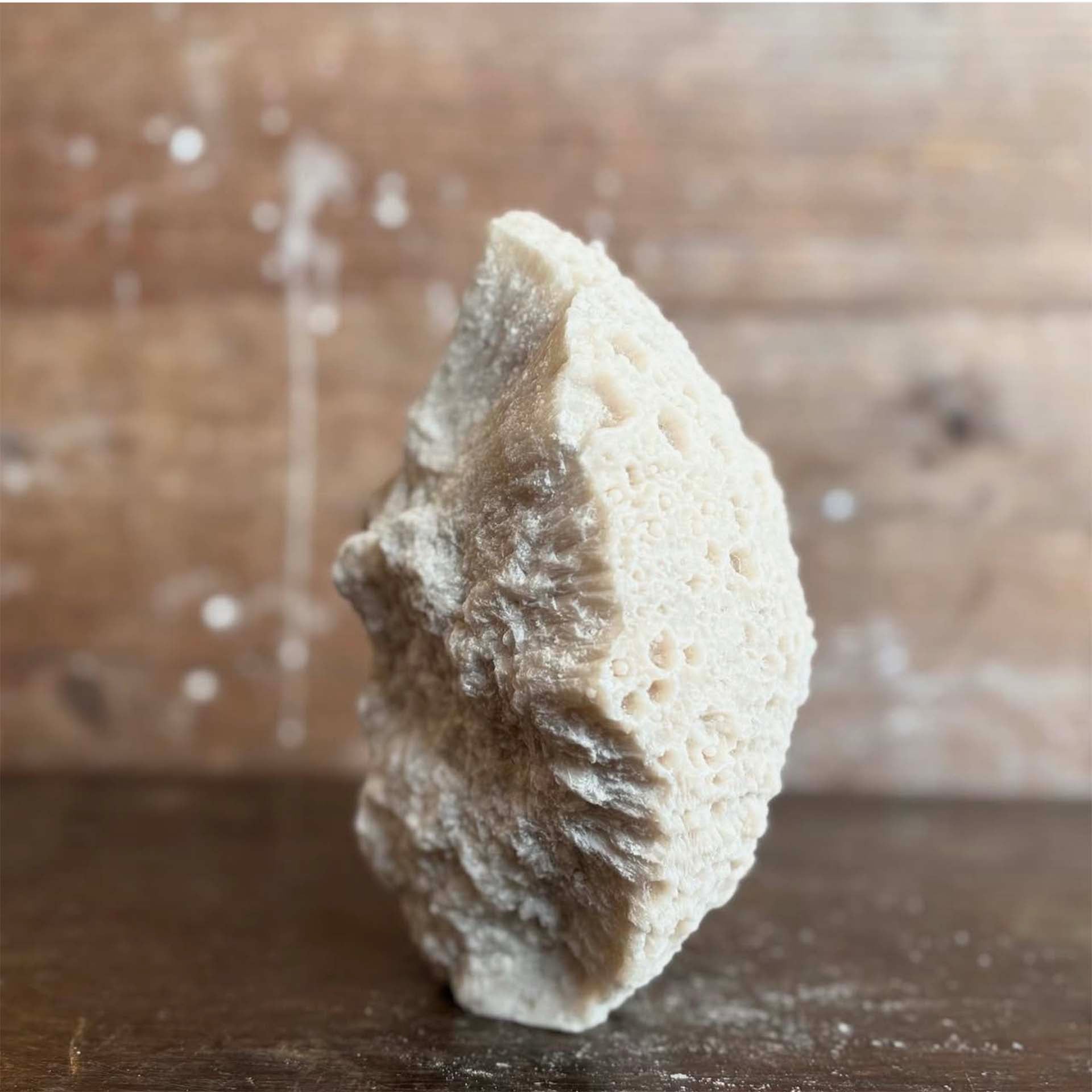 Lau Candle Soil Dye Candle 5 has a purifying effect. It cleans the air and get rid of unpleasant odour as well as preventing from putrefaction. Natural material has a tendency of changing colour and texture easily because of the temperature and the environment. It is necessary to face and observe as if talking to it in order to feel those changes and be able to make the most of the material. It takes approximately 4 days to make one. Using wax made of refined palm leaves. As it hardly contains carbon, it doesn’t produce soot and the flame is small. Carved one by one. each piece is unique.