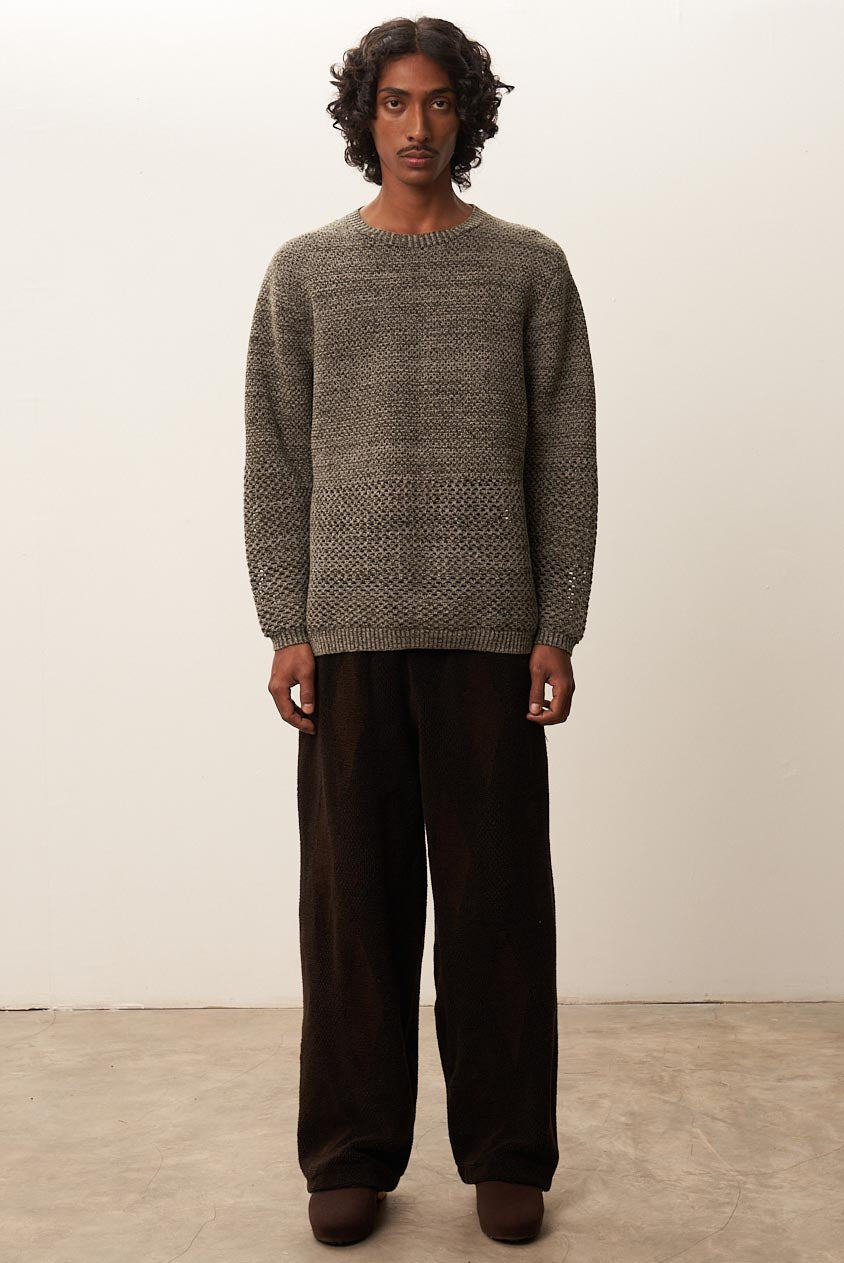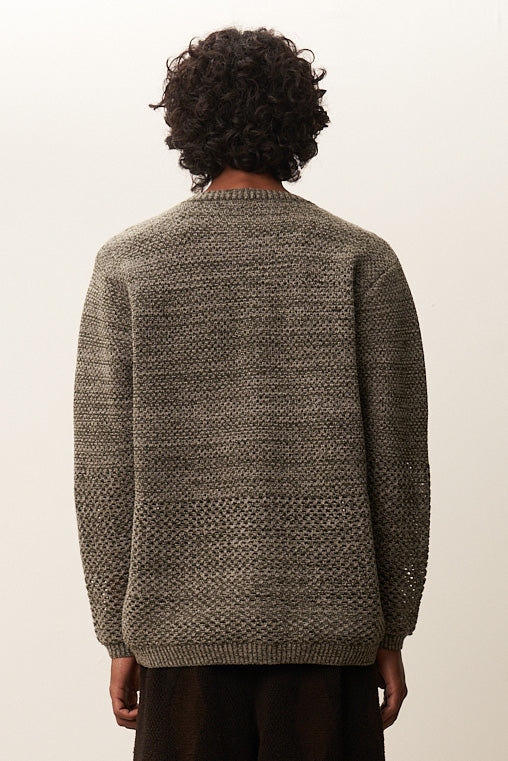 Solid Crochet Crewneck Sweater Moss Grey