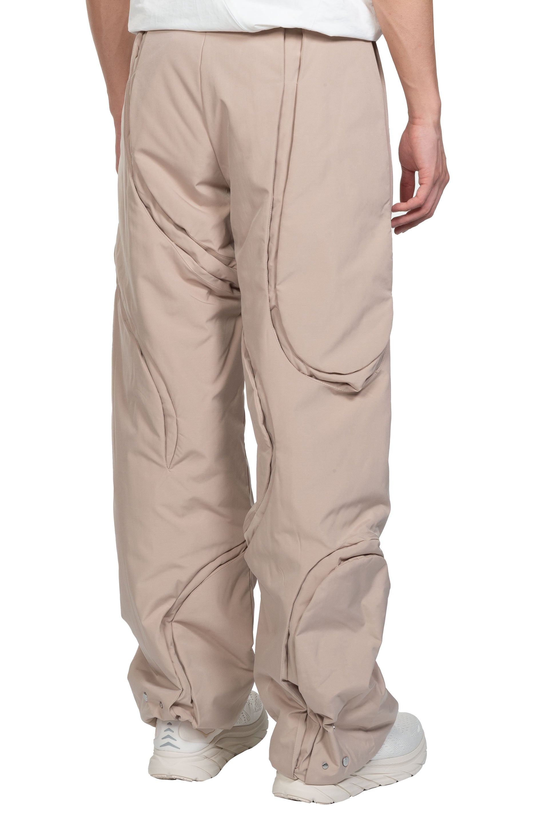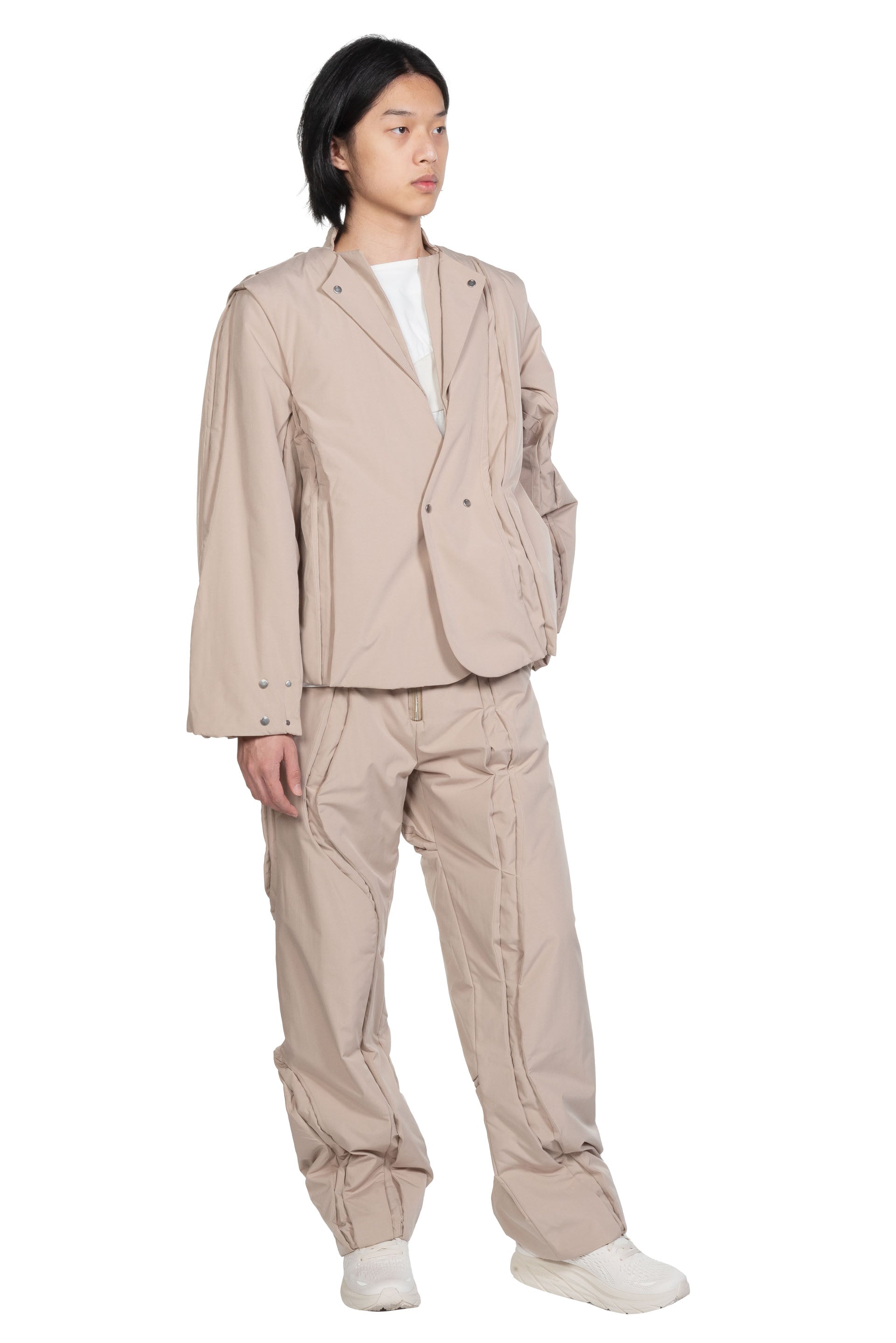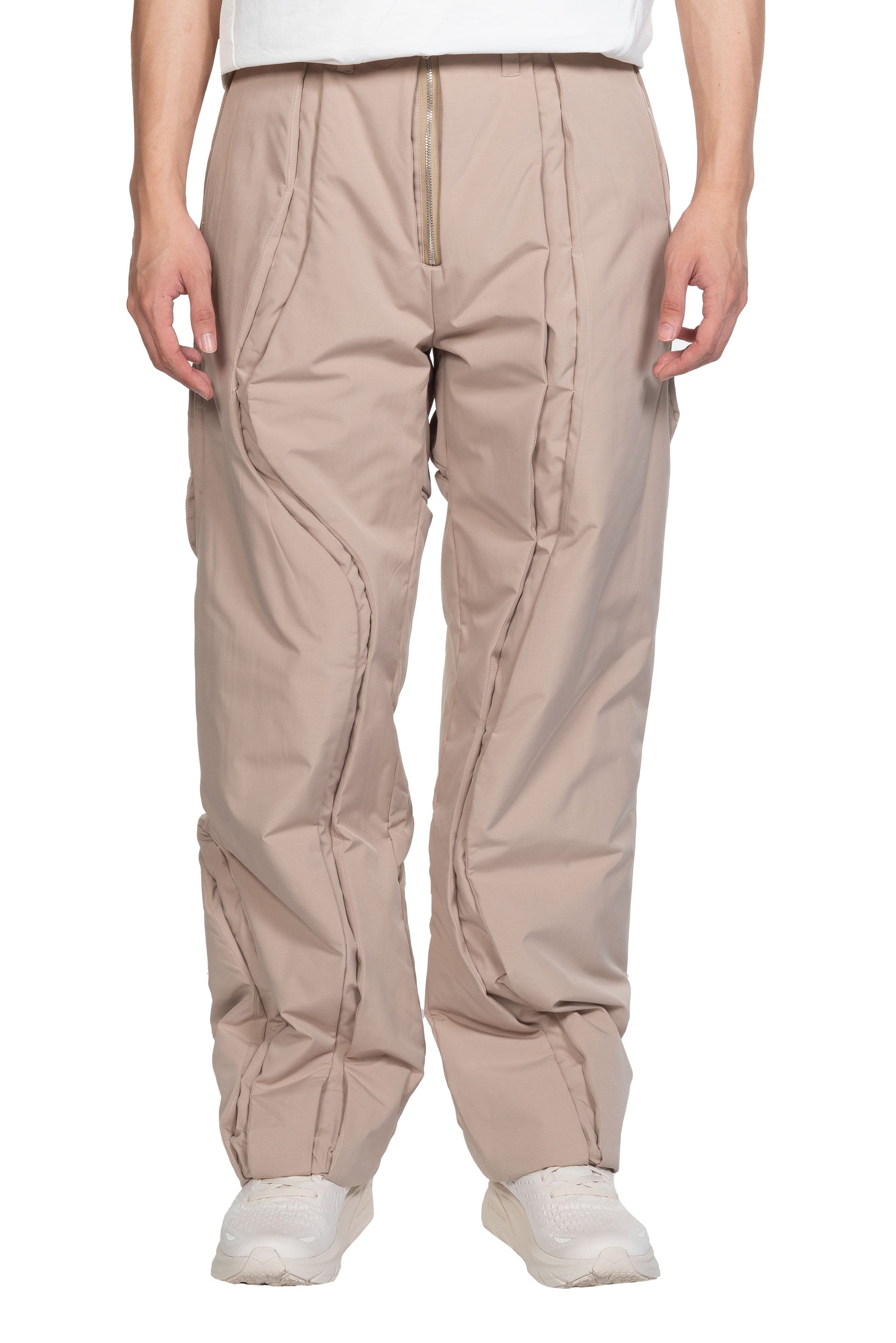 Aenrmous plays heavily with layers, asymmetry, deconstruction of pieces and detachable or adjustable elements. The brand understands trends while building something new and exciting as seen with the Spin Crevice Pants Beige.