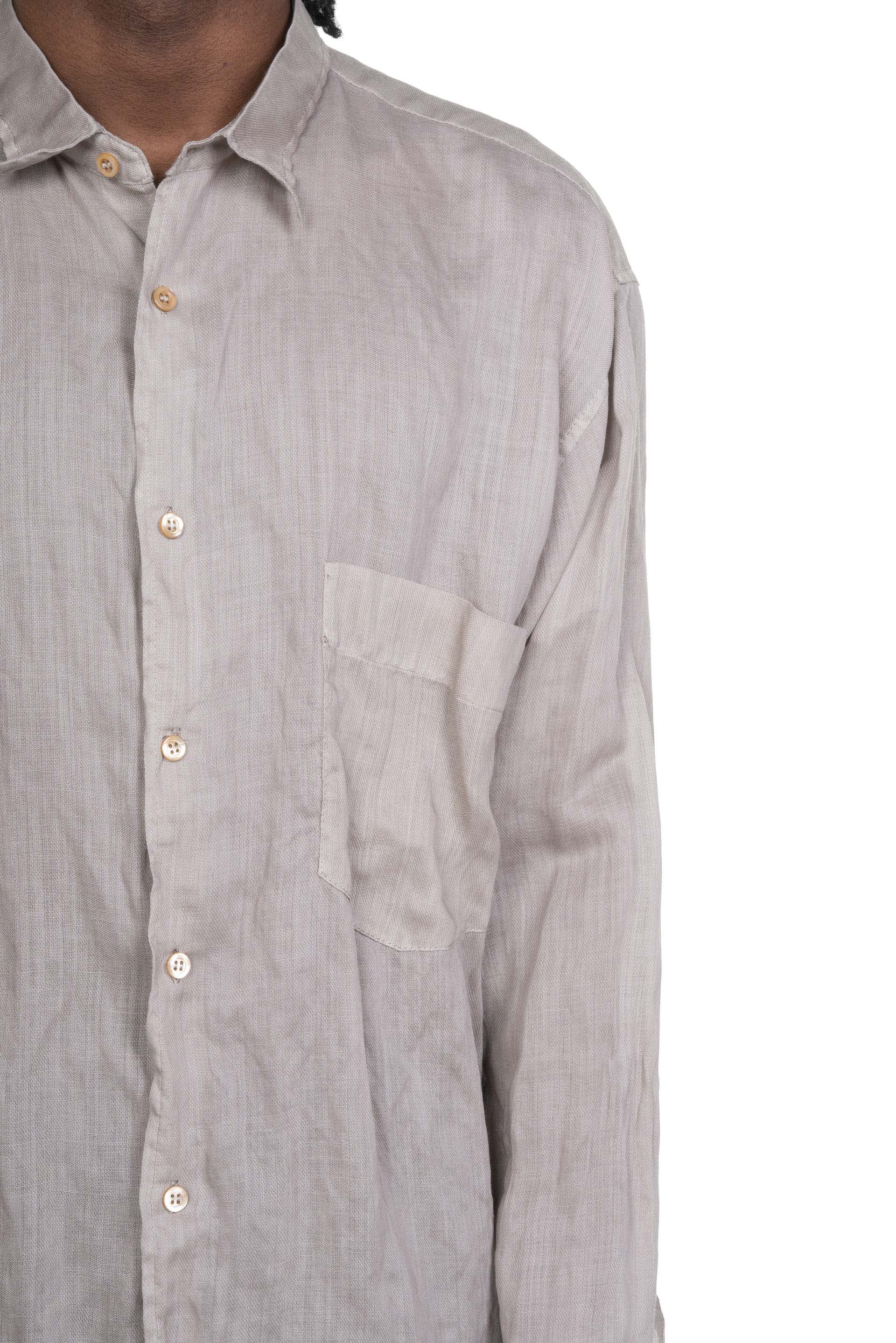 Magliano Spiritualona Shirt. Button closure at front and cuff. Pocket at chest. Long sleeves. Crinkle effect throughout. Soft and light fabric with metallic blend. Regular Fit.