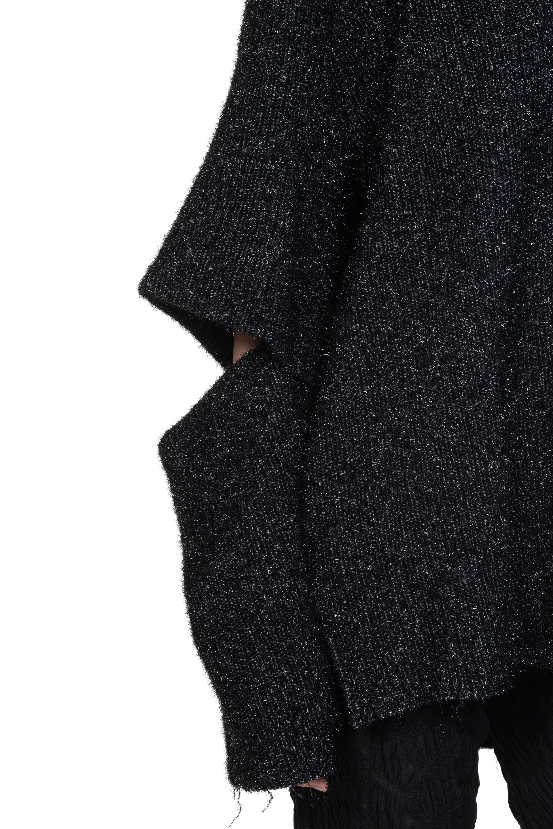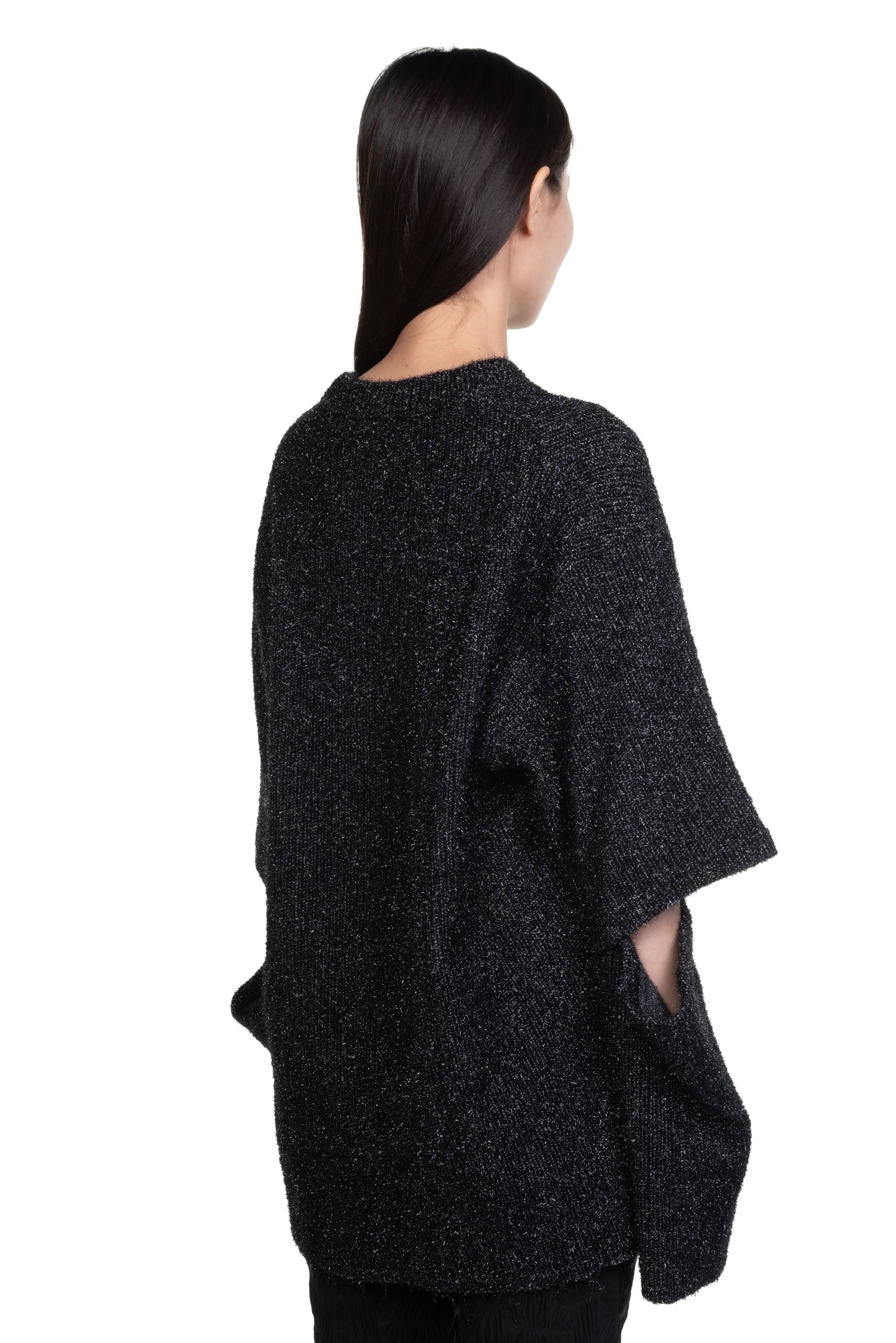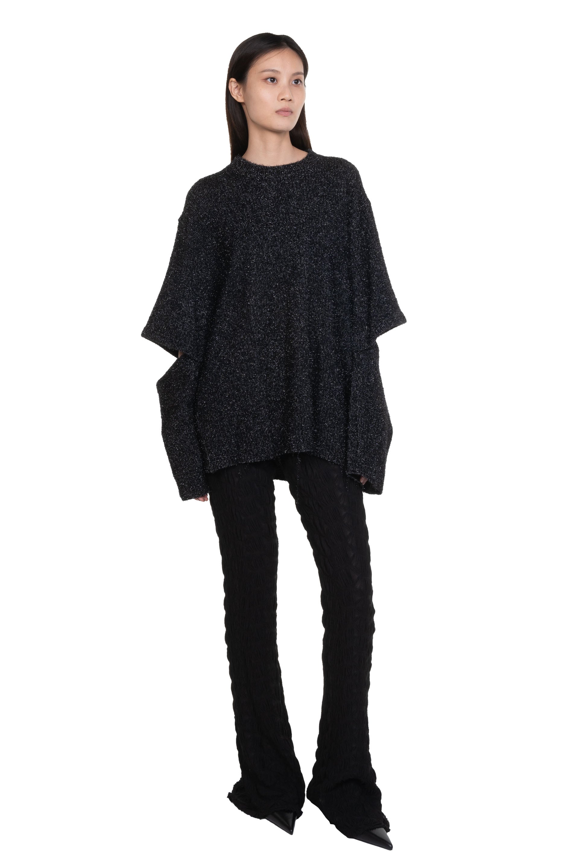 Song for the Mute oversized pullover in a speckled poly wool. Crew neck collar and split sleeve at elbow.