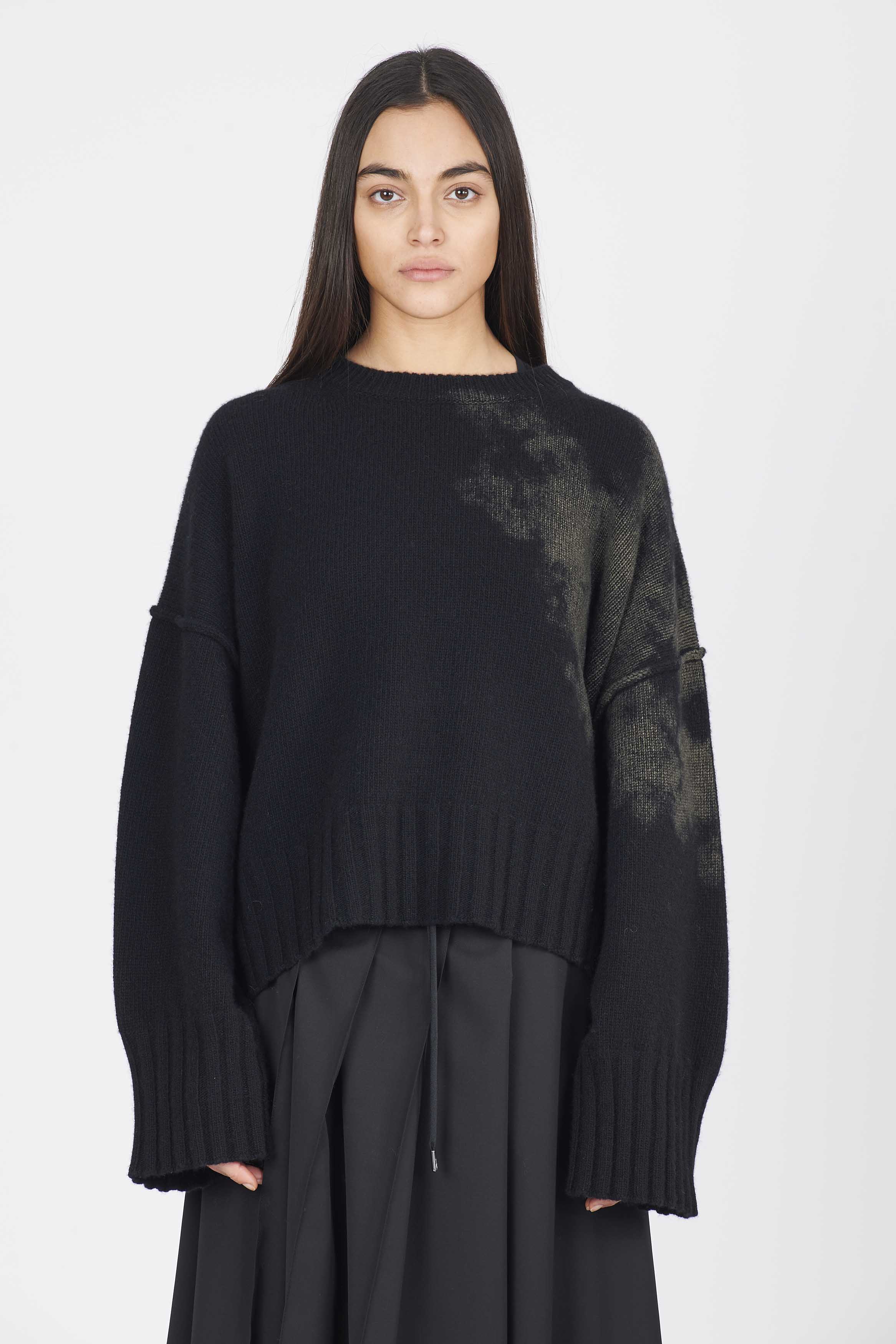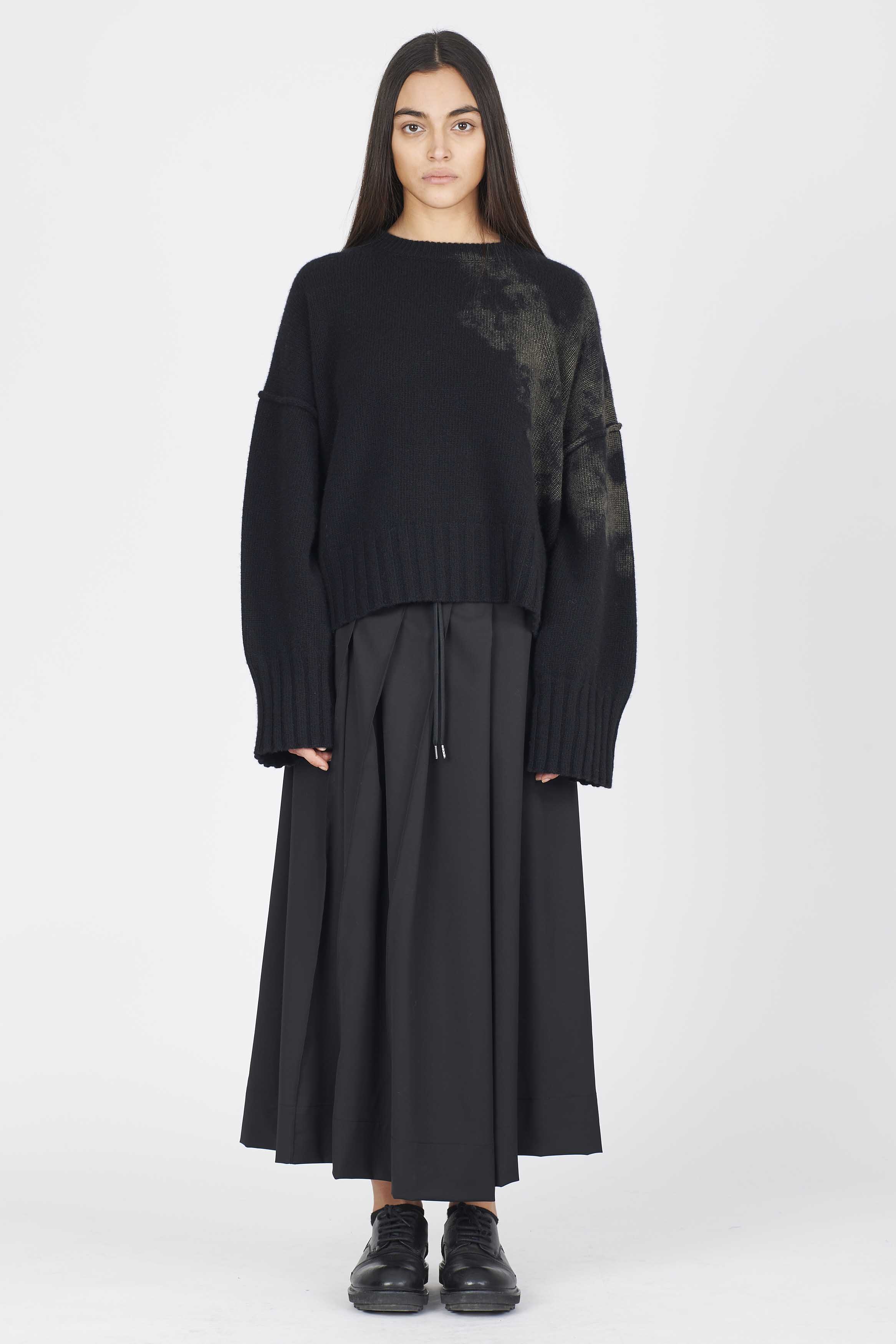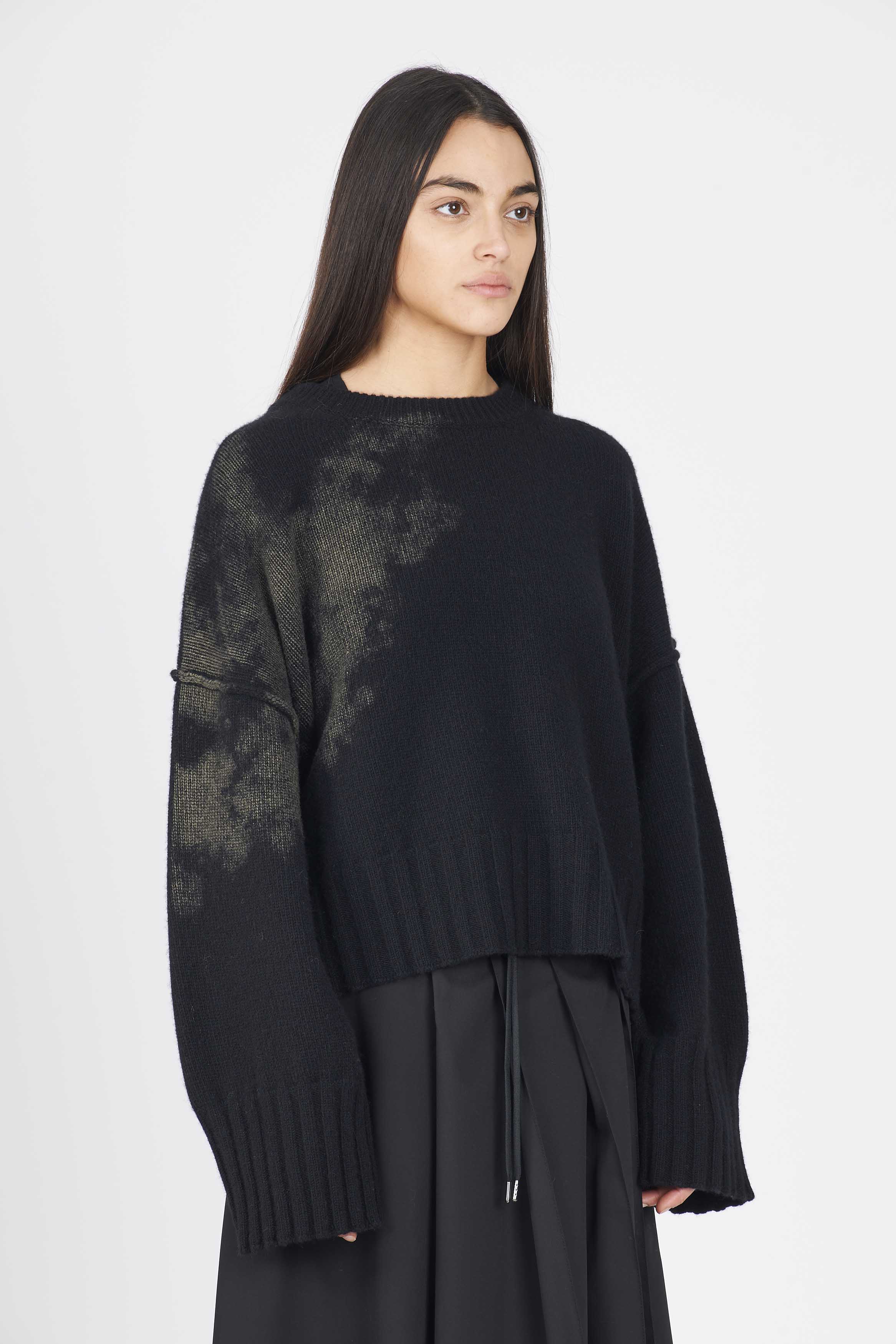 Eco cashmere boxy knit with laminated print detail on the side. Regular fitColour: Black. Composition: 50% Cashmere 50% wool.
