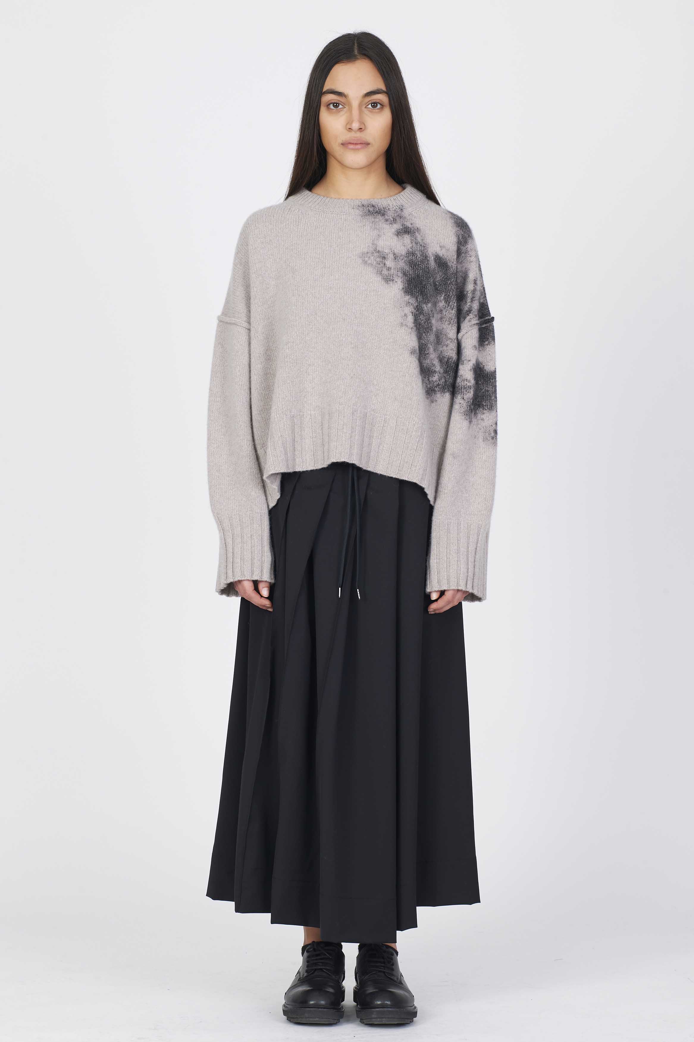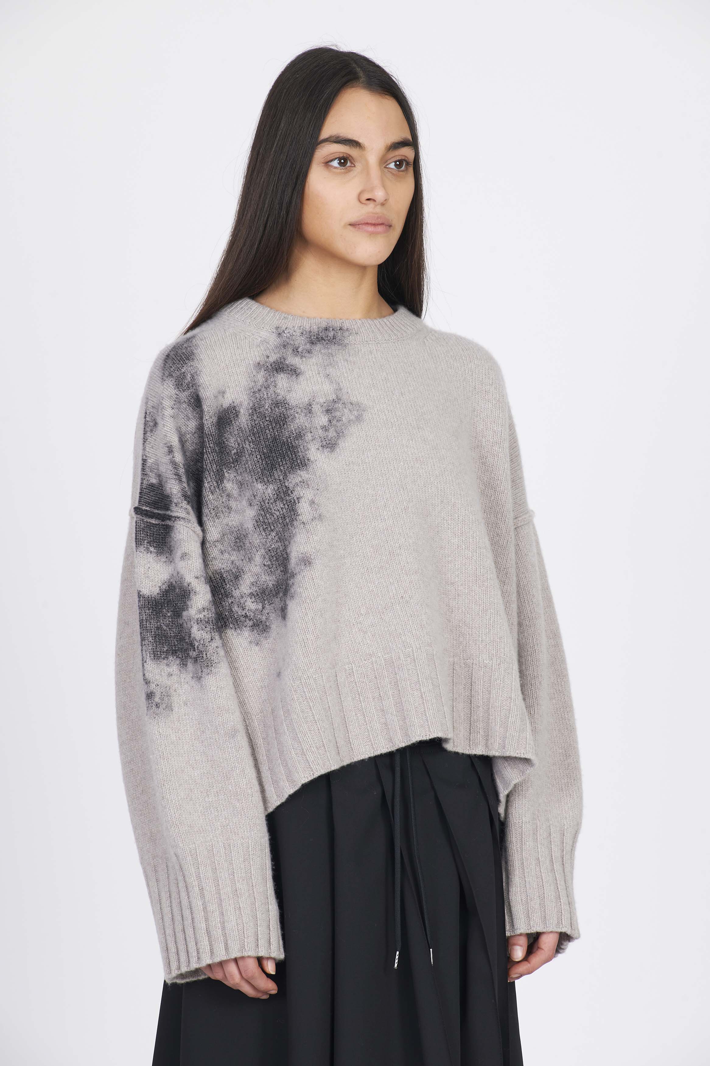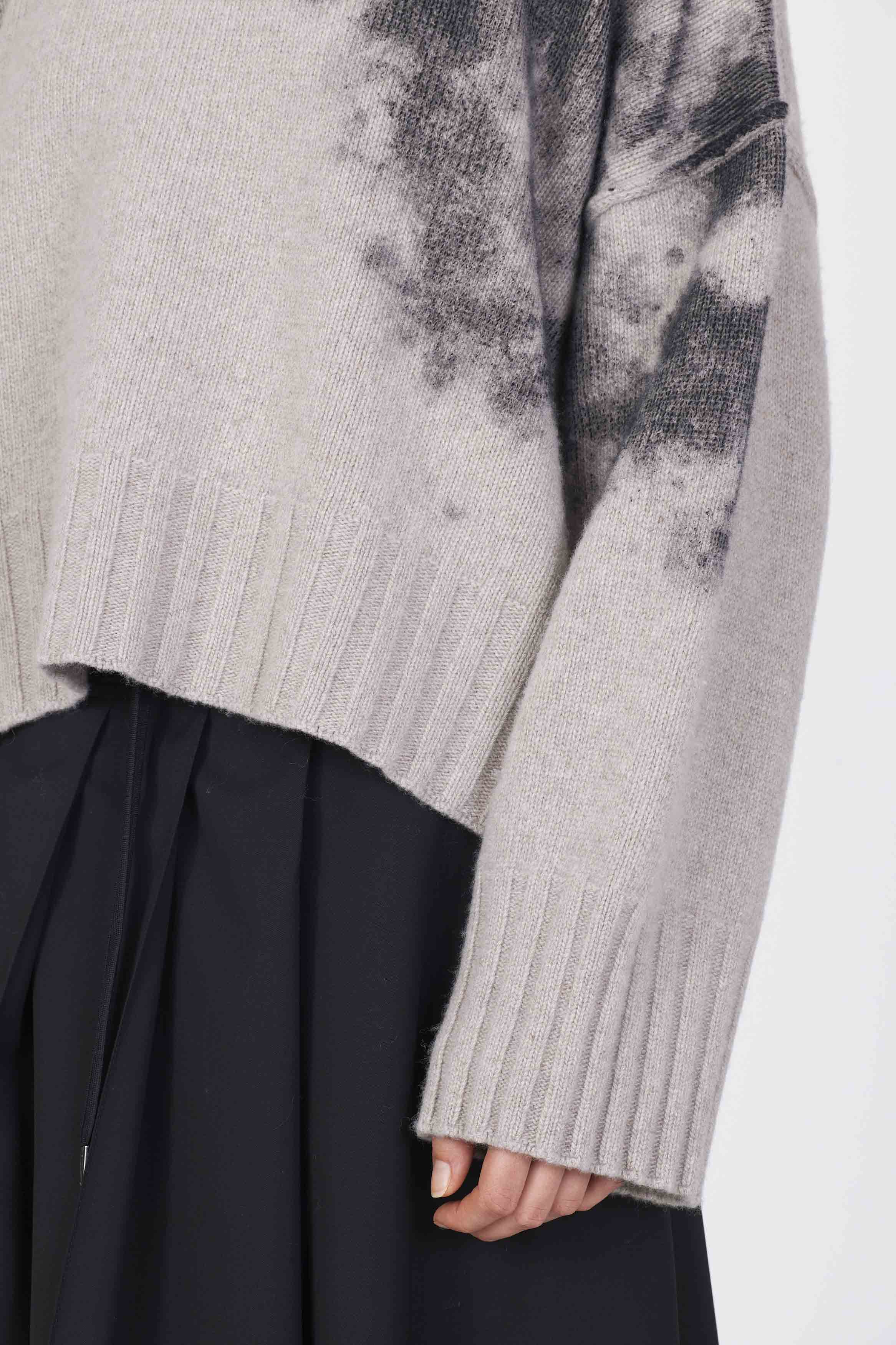 Eco cashmere boxy knit with laminated print detail on the side. Regular fitColour: Taupe. Composition: 50% Cashmere 50% wool.