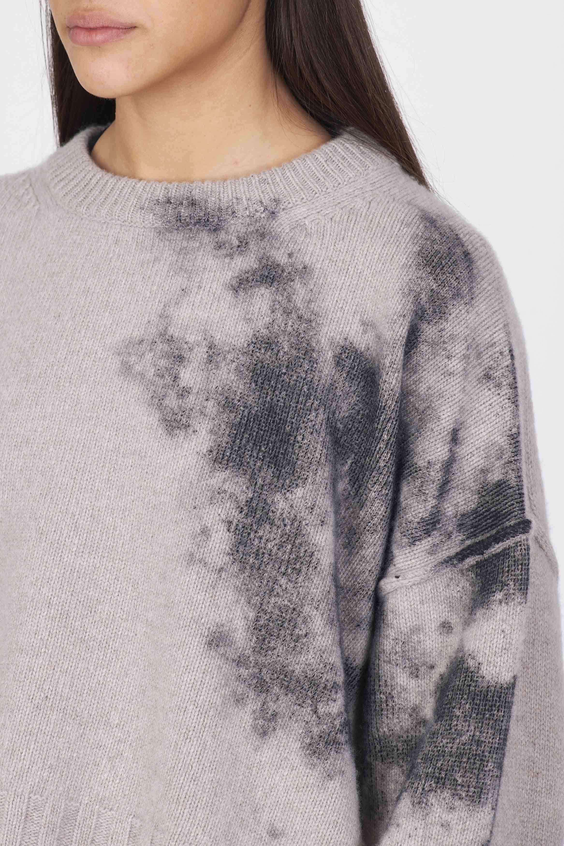 Stain Print Crewneck Jumper Taupe