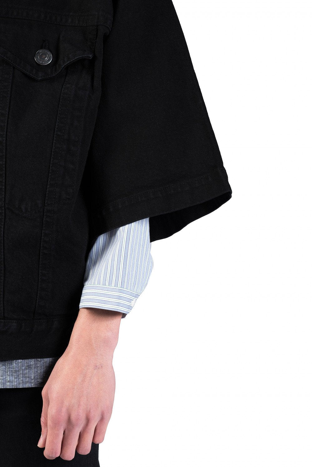 Oversized short sleeves. Two front pockets. Button closure. Tonal stitching