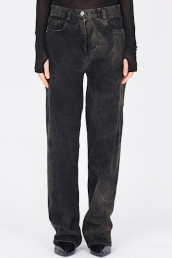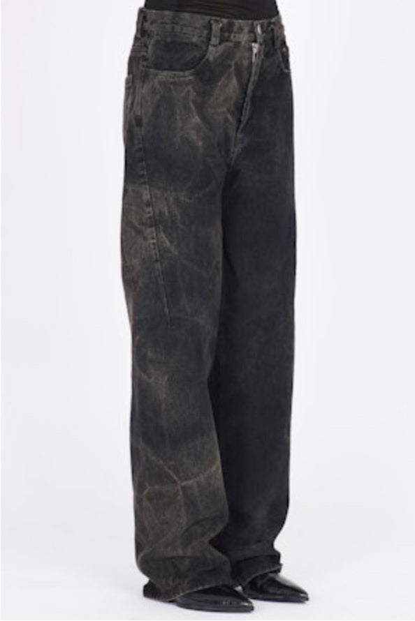 Isabel Benenato is committed to sustainability and makes every effort to minimise its environmental footprint. All of the collection are manufactured in Italy with the intention to save and support her local community. Her design is based on an imperfect perfection that encompasses the human being itself as seen with Straight Batik Wash Denim Pants Black.
