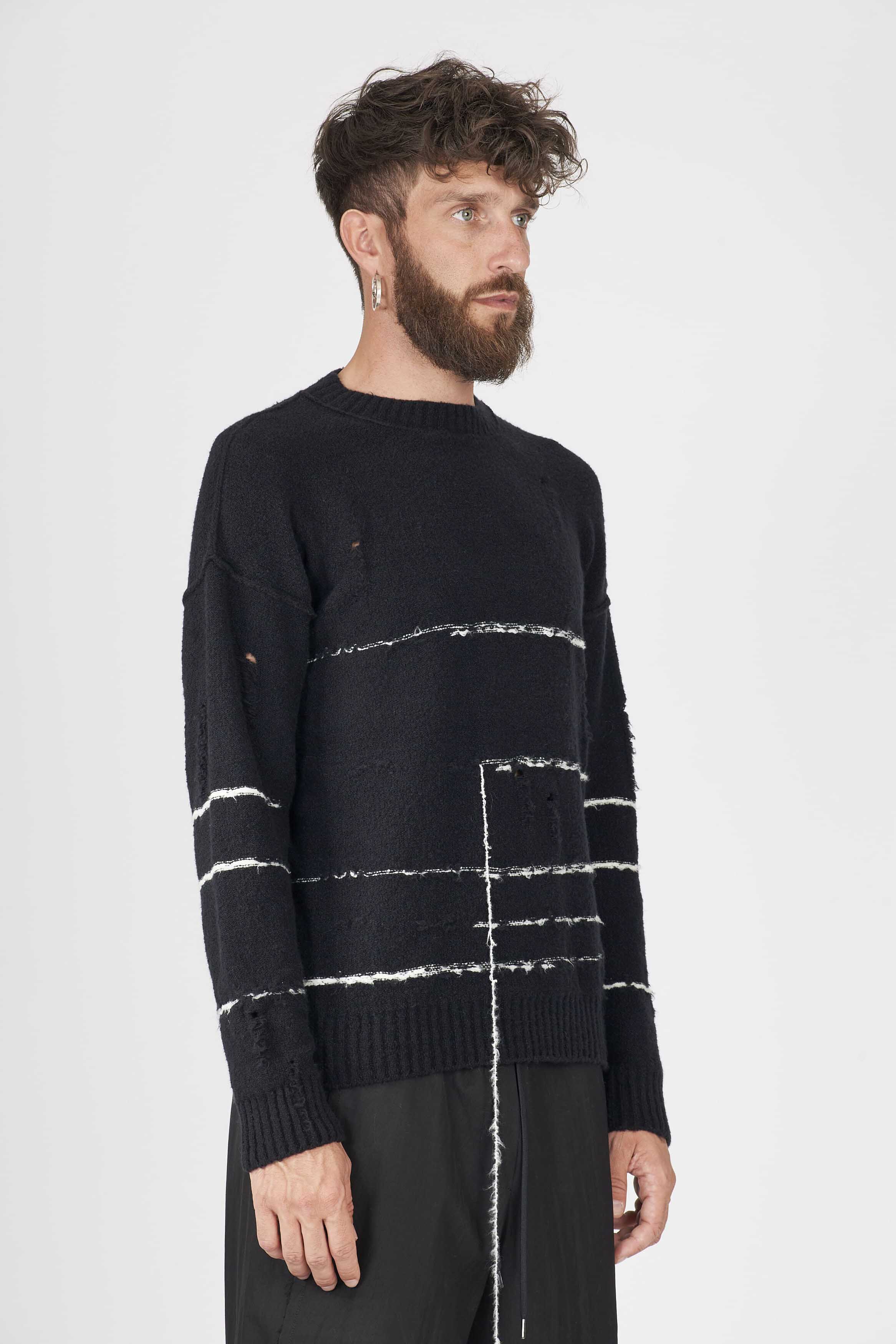 Crew neck. Striped organic cotton jumper with floating thread detail. Soft touch. Regular fit.